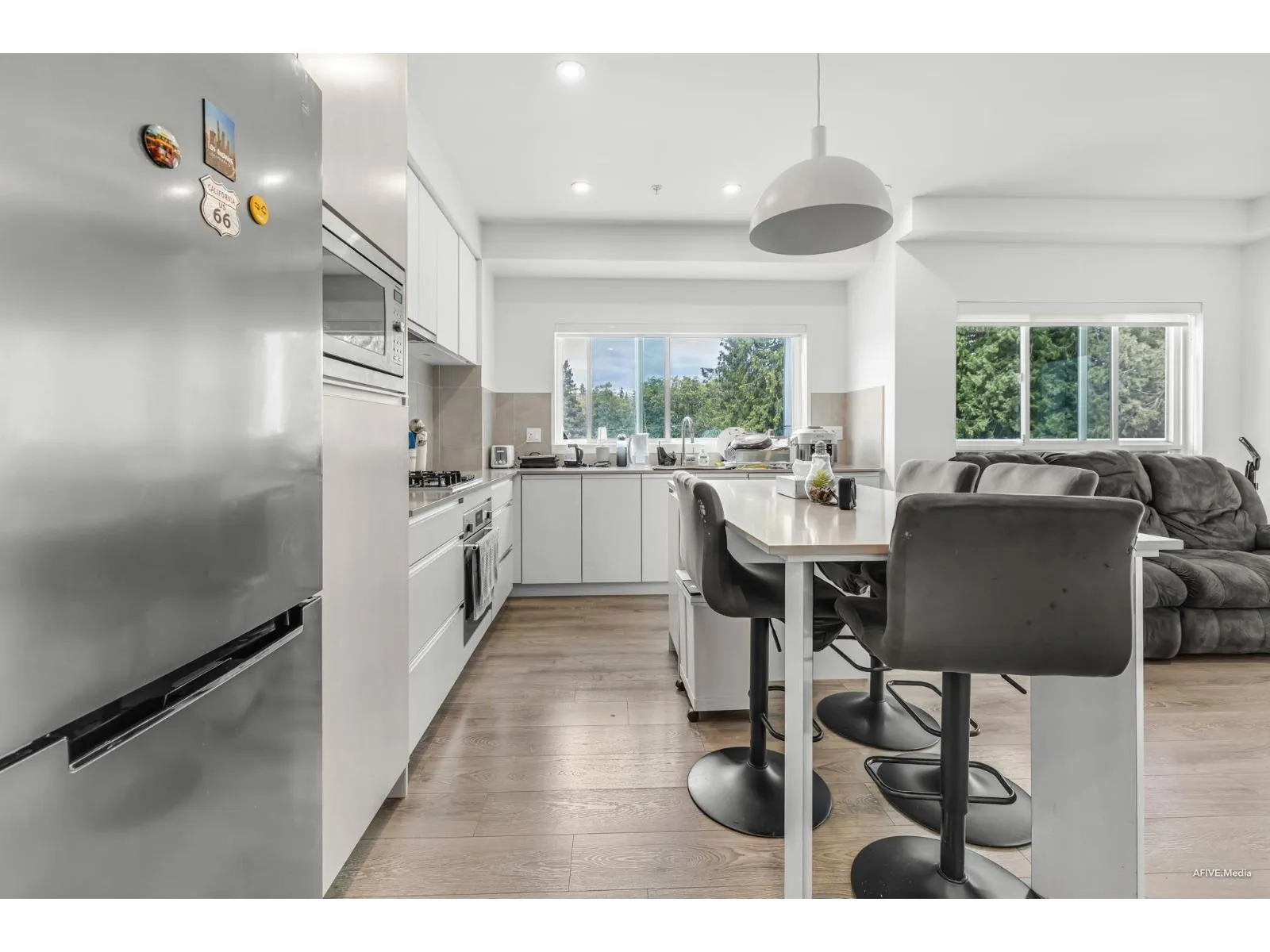 Welcome to this beautifully maintained, 2-bed and 2-bath corner condo with TWO PARKING STALLS offering spacious, contemporary living in a prime location. Built just two years ago, this unit features a thoughtfully designed open-concept layout and a wrap-around balcony perfect for both relaxing and entertaining. The kitchen is equipped with sleek quartz countertops, solid maple cabinetry, and stainless steel appliances, combining style and functionality. Located close to schools, Guildford Town Centre & Surrey Central Mall, very frequent public transit, SFU, and the local community center, this condo offers unmatched accessibility and urban convenience. An ideal choice for professionals, small families, or investors seeking comfort and value in a rapidly growing area. (id:27476)