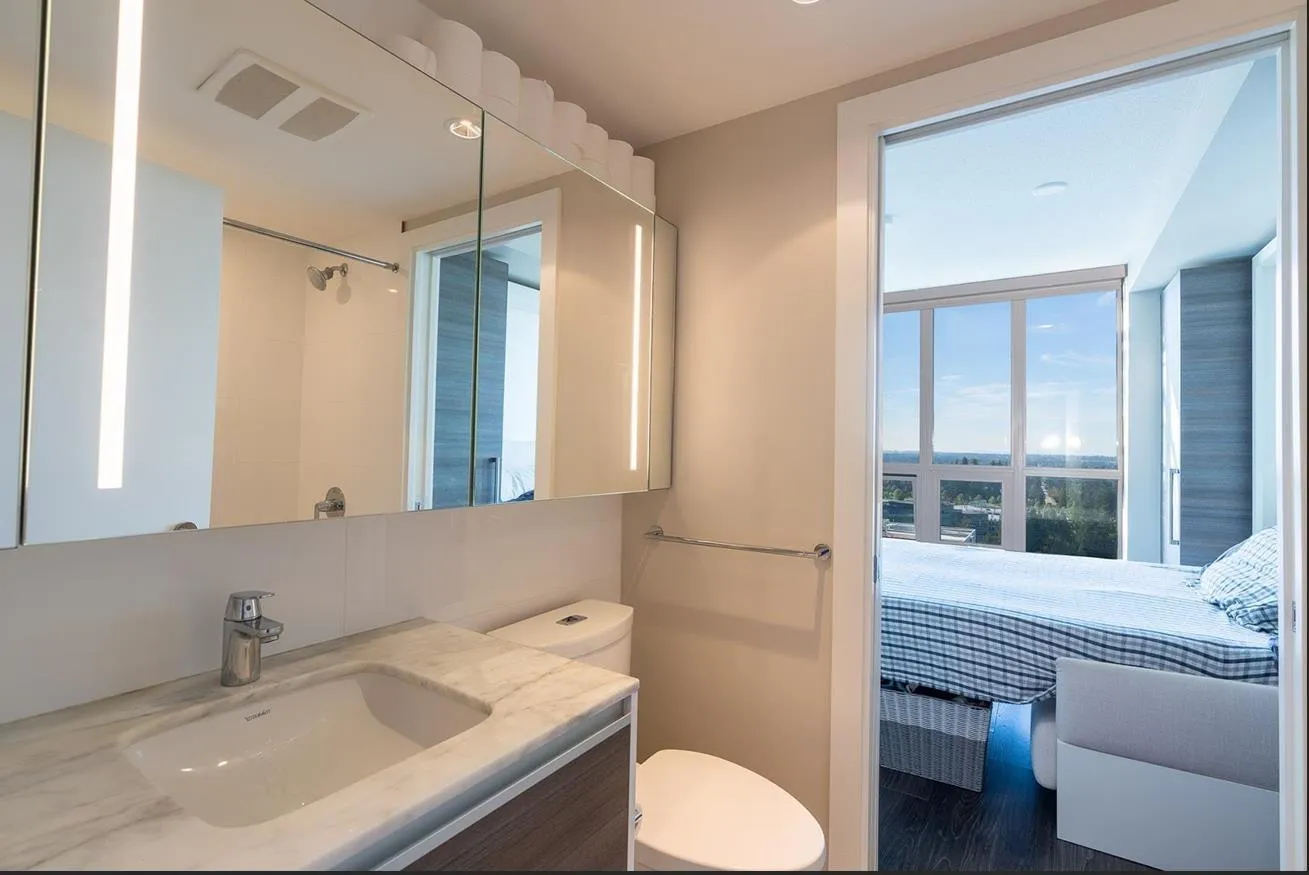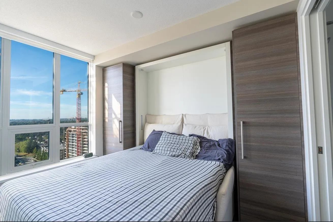 Prime Downtown Surrey! This well-maintained 1 BED+1 DEN unit in ALUMNI built by BOSA offers a south-facing view & balcony. The open layout features versatile built-in furniture, including a queen-size wall bed transforming into a couch, hidden foldable bed behind a movable floating TV wall, & a flexible den for a office. The kitchen island has an extendable dining table, perfect for entertaining up to 8 people. Stainless steel appliances, laminate flooring, and high-end bathroom fixtures add a touch of luxury. Enjoy amenities like a gym, lounge, party room, and rooftop garden. Steps from Skytrain, Central City Mall, SFU Surrey, and more. Includes 1 locker and 1 parking. Elevate your urban living in Surrey's vibrant downtown! (id:27476)