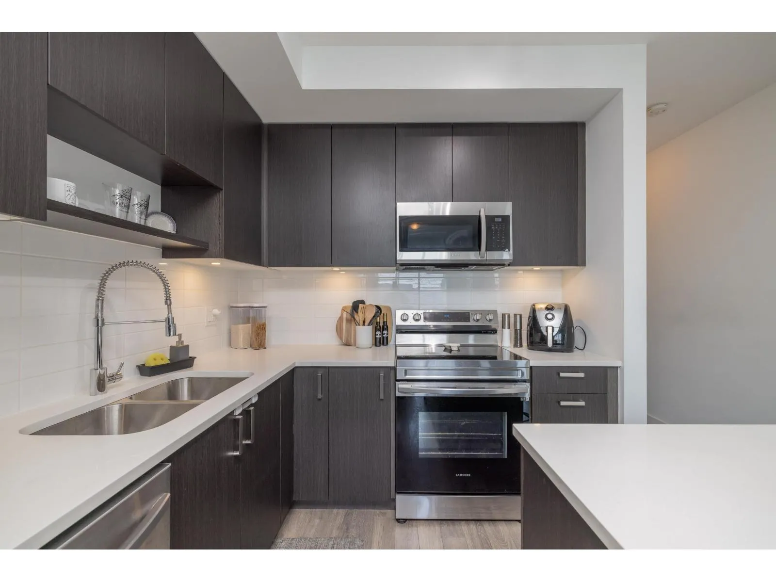 Welcome to Kings Landing 2 by Dawson + Sawyer! This stunning 2 bed, 2 bath + FLEX room boasts 9' ceilings and a functional living area with a contemporary feel. Kitchen is equipped with stainless steel appliances, a large kitchen island, white quartz countertops and undermount lighting. Primary bedroom has its own balcony and double vanity in the ensuite. 2nd bed is generously sized as is the flex space that would make a excellent home office (or other?). Building amenities include a bicycle room, gym, play area, board room, study room, club house with a full kitchen that opens to an outdoor patio with a community garden. Everything you need & a central location with Transit is at your doorstep, Close to Bear Creek Park, shopping, schools and more. Call today! (id:27476)