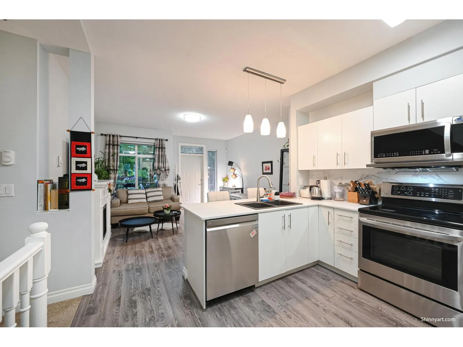 Warm & inviting 2bedroom & 2.5Bath updated Fleetwood townhome. Modern, laminate flooring in Living room and kitchen on main floor. Just passed the convenient powder room is your spacious family room with large size windows bringing in lots of nature light. Updated kitchen featuring beautiful countertops & stainless steel appliances leading to your patio & fenced yard. Upper level has two good sized bedrooms with master boasting a tranquil ensuite with sizable walk in shower. Fleetwood Green is a family-friendly community & is steps to all urban conveniences: bus stops, restaurants & grocery store. (id:27476)