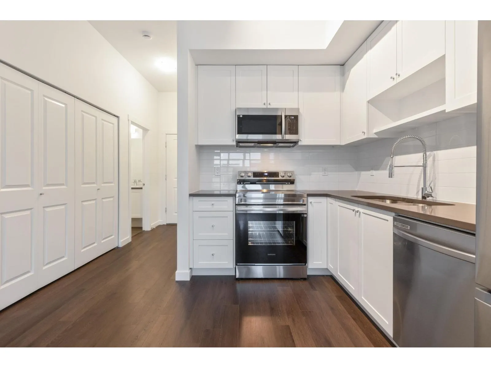 Welcome to Fleetwood Village Condos 2, a modern community in central Fleetwood near parks, shops, restaurants, and schools. Steps to Fleetwood Park Village for groceries and dining, with easy access to the community centre, nearby parks, transit, and the upcoming SkyTrain. Enjoy amenities including a fitness centre, yoga studio, coworking lounge, billiards, arts & crafts room, kids' play area, rooftop lounge, and gardens. This brand-new penthouse 1 bed + den, 1 bath (663 sq. ft.) features an open layout, private balcony, stainless-steel kitchen appliances, in-suite laundry, 1 parking, 1 locker, visitor parking, and small pets allowed. (id:27476)