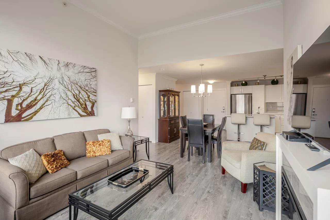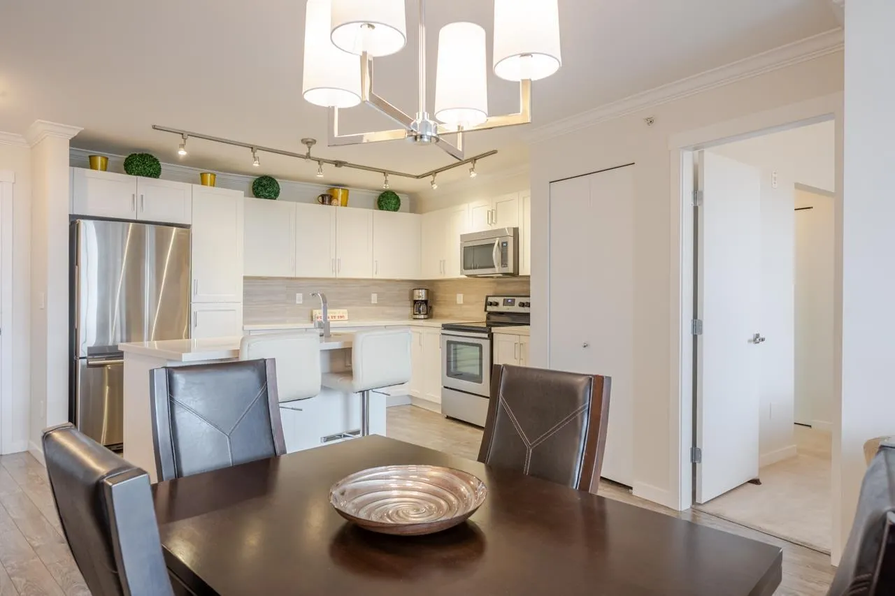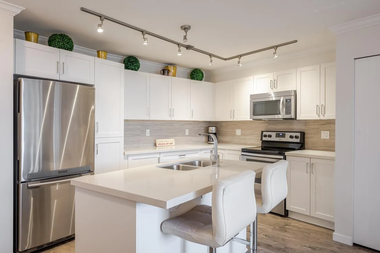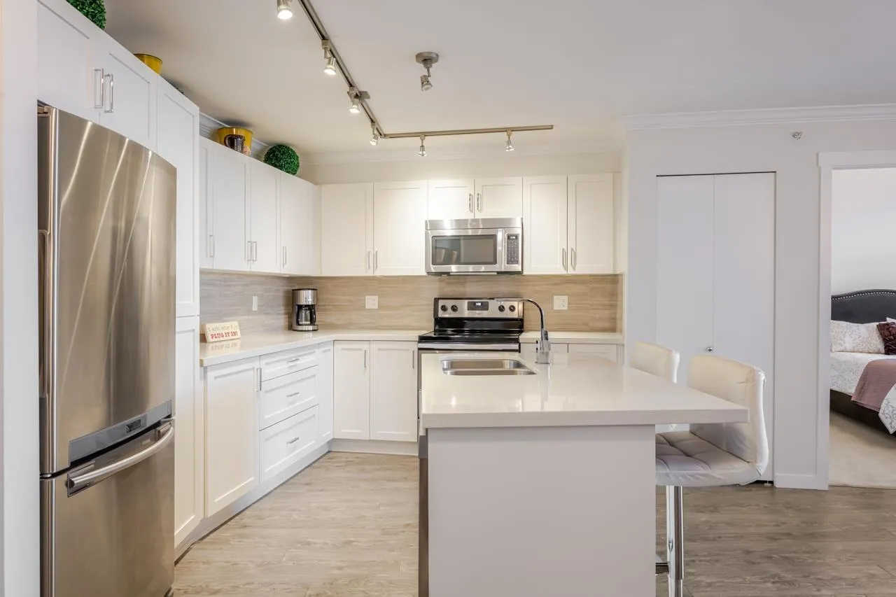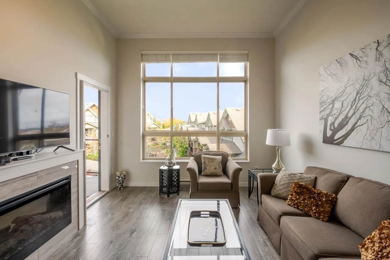 Welcome to ONE92 in the heart of Clayton Heights! This stunning top-floor end unit offers 2 bedrooms, 2 bathrooms, and over 1,000 sq ft of bright, open living space. Soaring 11' ceilings and oversized windows fill the home with natural light, while the private balcony captures peaceful mountain views. The modern kitchen is beautifully finished with quartz countertops, stainless steel appliances, and a large island ideal for casual dining or entertaining. The spacious primary bedroom features a full ensuite with double sinks, soaker tub and separate shower. You'll love the convenient tech nook, perfect for a home office or study area. Quality-built, well-managed building with secure underground parking, storage, and pet-friendly bylaws. Excellent location close to parks, schools, shops, restaurants, and transit. Move-in ready, beautifully maintained, and offering comfort, style, and convenience in one of Clayton's most sought-after communities! *Quick Possession* (id:27476)
