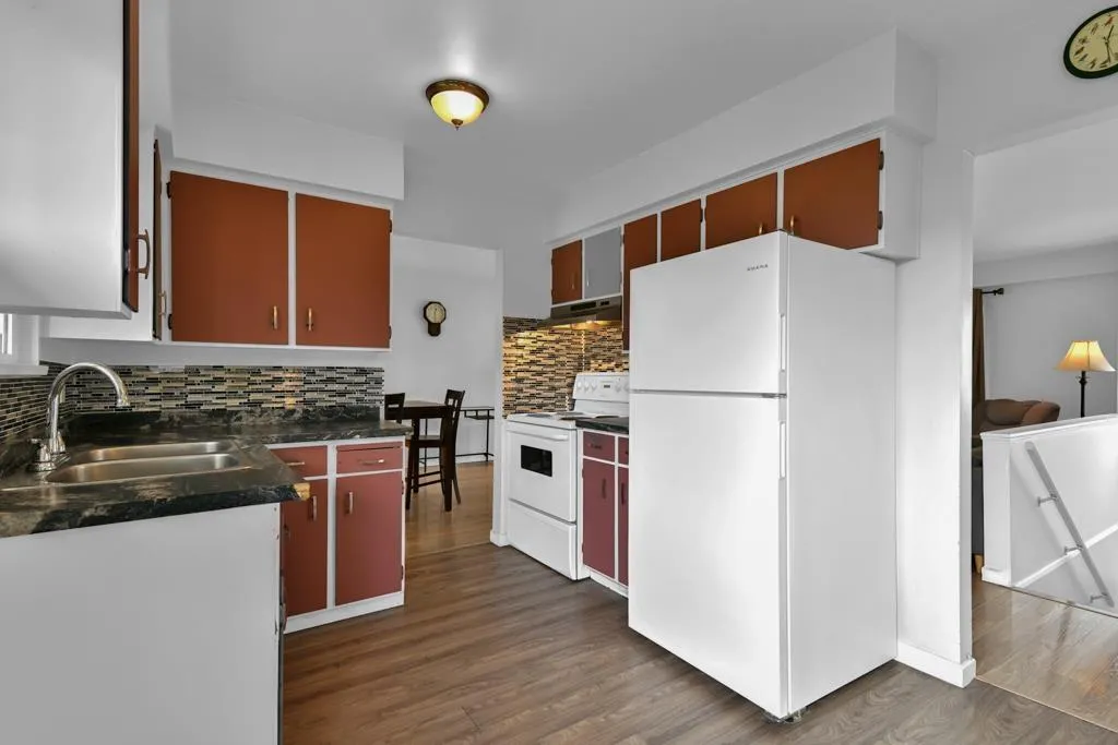 WELCOME HOME TO BOLIVAR HEIGHTS! This lovely +2,000sf family home is situated in a quiet area close to all amenities, on a private flat rectangular fully fenced SOUTH FACING +7200sf lot w/REAR YARD ACCESS, under 10 minutes walking distance to both elementary and secondary schools. 3 spacious bedrooms upstairs incl a large master bedroom with ensuite plus a 1-bedroom suite below with separate entry offering extra space for family or additional rental income. Large living areas up and down feature cozy fireplaces and flexible dining/eating areas. This home has been well maintained by the owner for +19 years including NEW ROOF, WINDOWS & HOT WATER TANK in the last 3 years, plus laminate flooring and upgraded pot lights throughout and enclosed single garage. (id:27476)