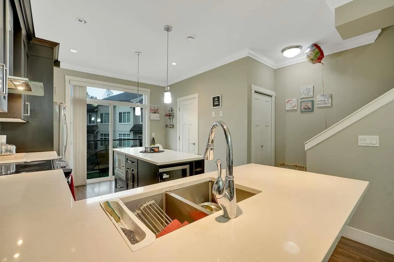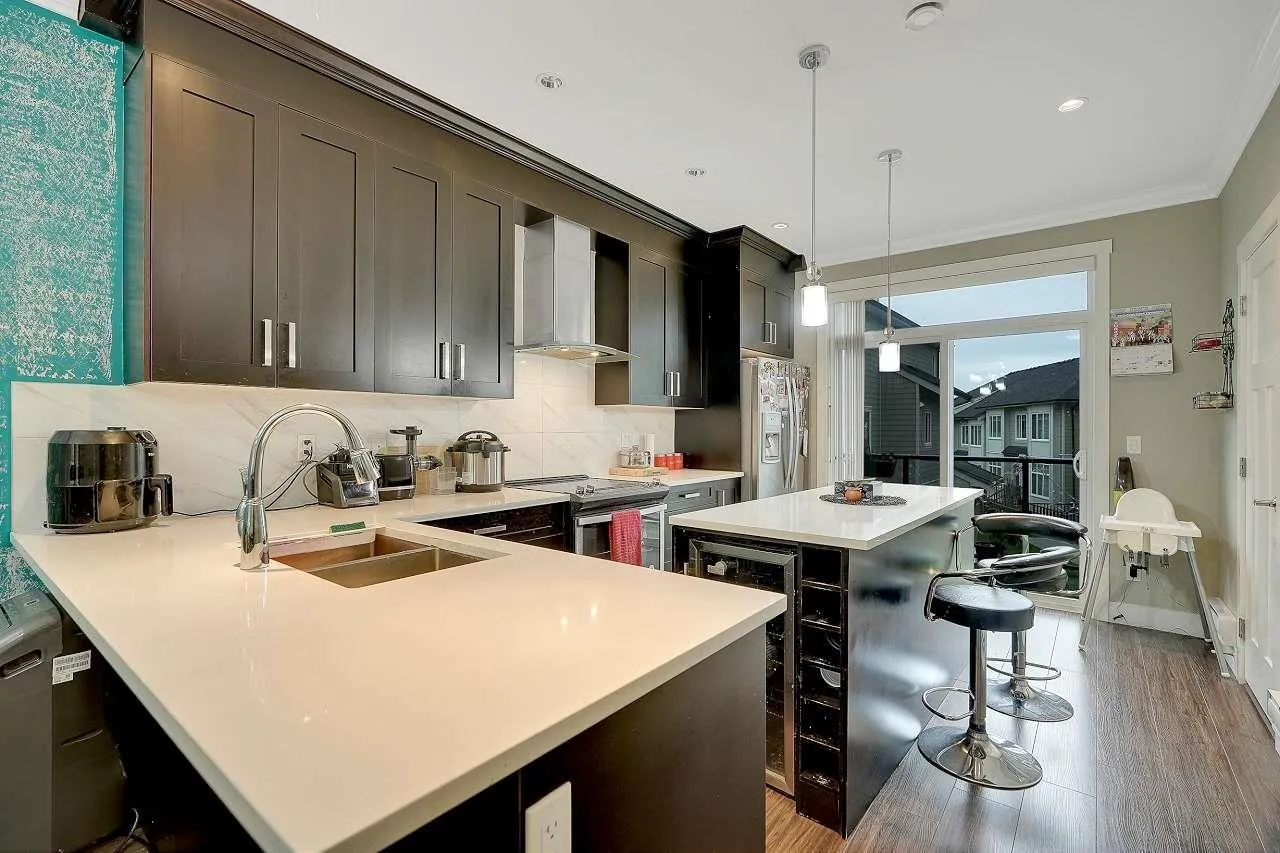Beautiful 3+ bedroom, 4 bath townhouse. Den could be 4th bedroom. 9' ceiling on the main level. Bedroom w/ full washroom downstairs for perfect family living. Main level has huge family room and big bright kitchen that offers lots of cabinets w/ a large kitchen island, built-in wine fridge, quartz counter-top & stainless steel appliances. Upgraded bigger size laundry pair. Sliding patio glass door to balcony allows lots of natural light. Spacious, private backyard is perfect for kids. Great location. Near North Ridge Elementary & Ãcole Panorama Ridge Secondary, shopping & transit. Quick access to Hwy. 10, 64 Avenue & King George Boulevard. (id:27476)