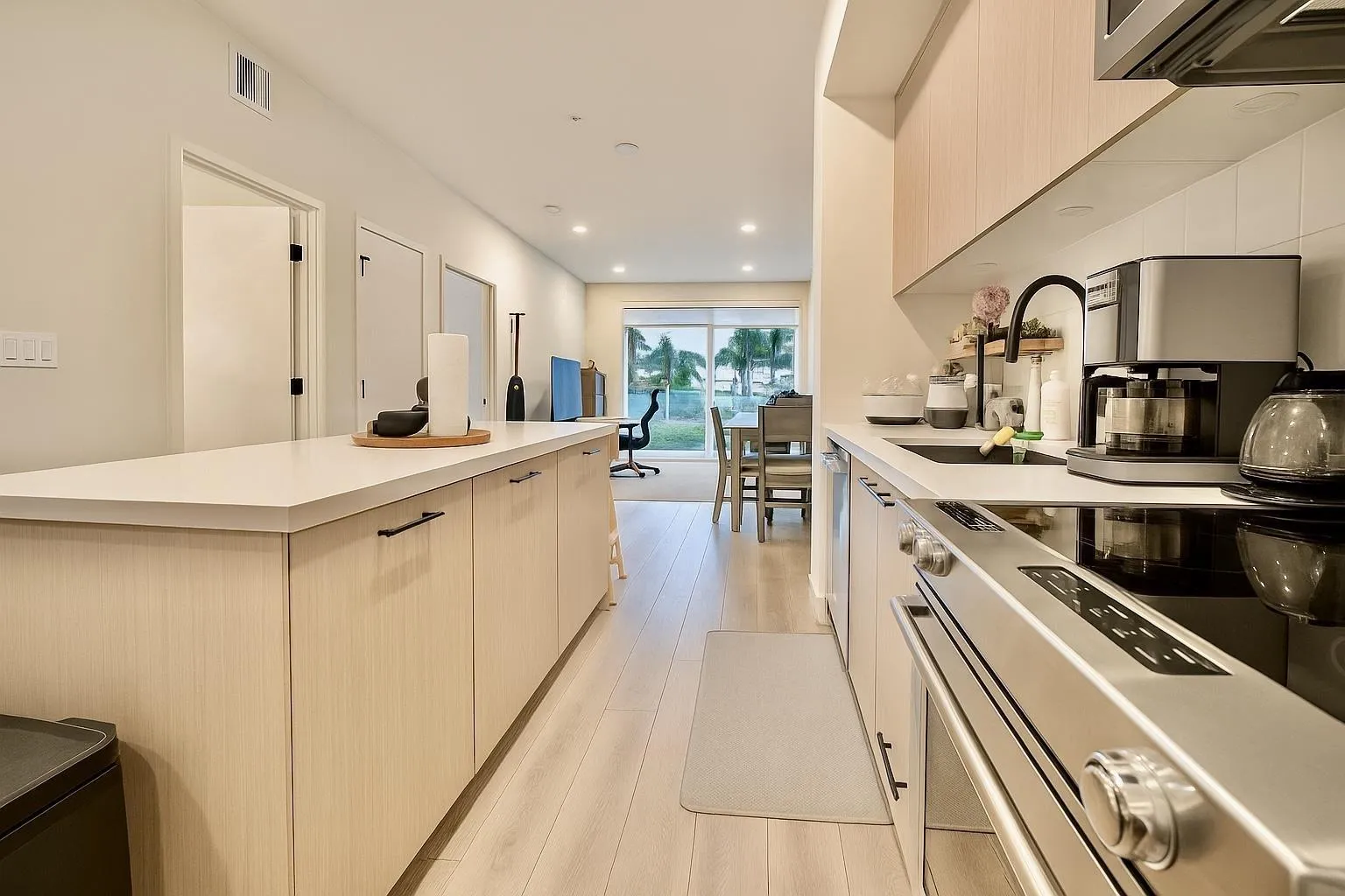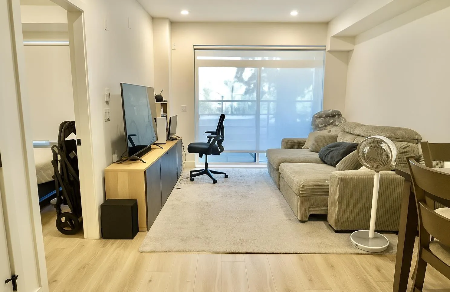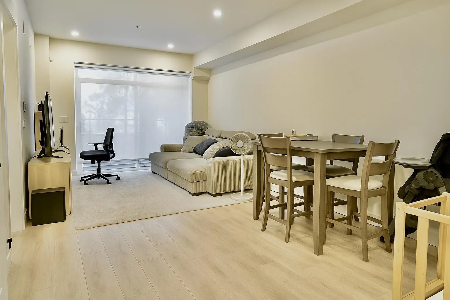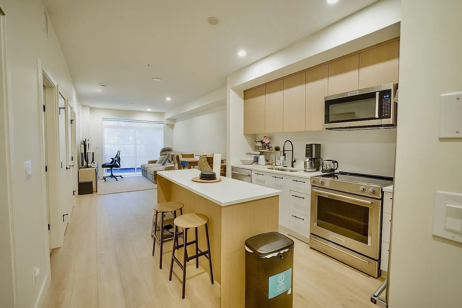 **Must See Listing**Welcome to Odyssey, a 160-unit condo development by award-winning Forge Properties! This stunning 2 bedroom home features an open-concept layout with full-sized stainless steel appliances, sleek black matte plumbing fixtures, elegant white quartz countertops, and a white tile backsplash. Enjoy the privacy of your own balcony and the warmth of wide-plank wood-grain laminate flooring. Residents also have access to a state-of-the-art Health & Fitness Centre with a sauna and fully equipped lounges. Ideally situated just off King George Blvd and 152nd St, this home offers convenience with nearby amenities, transit, highways, parks, schools, and a short drive to the beach!! (id:27476)