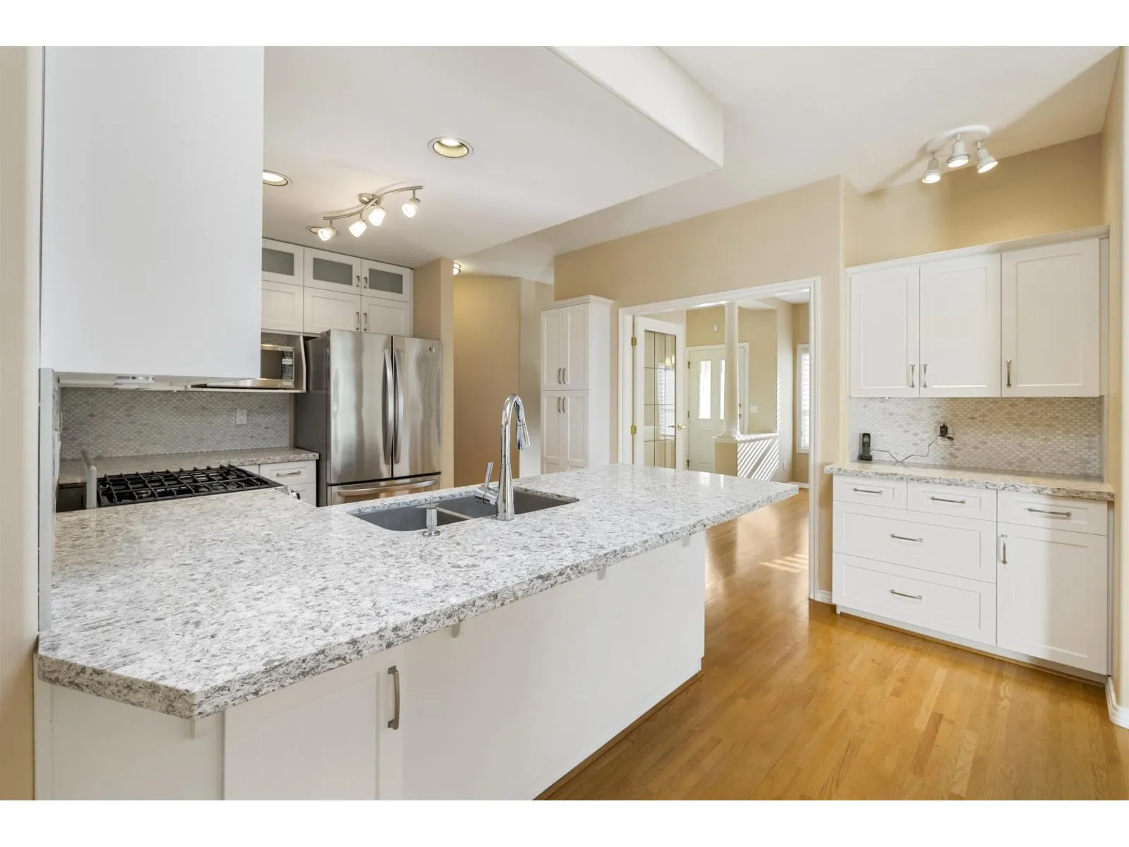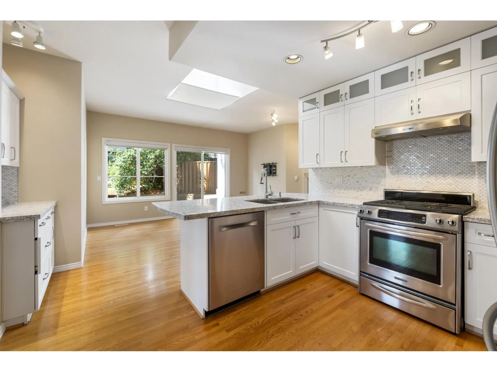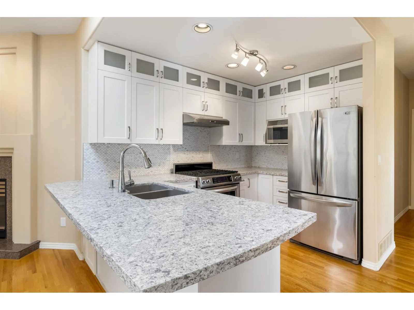 Superb 55+ half-duplex style end unit in a private, friendly 16-unit complex surrounded by majestic trees. 2281 sqft. bright, open layout with vaulted ceilings & skylights, ¾" hardwood, upgraded kitchen w/ Caesarstone & marble backsplash, gas stove, dream ensuite, hot water on demand & A/C. West-facing cedar deck & gardens. 2 bedrooms on & den on main + huge flex room upstairs & double car garage. You won't be disappointed! OPEN HOUSE SUN NOV 16TH 12-2PM (id:27476)