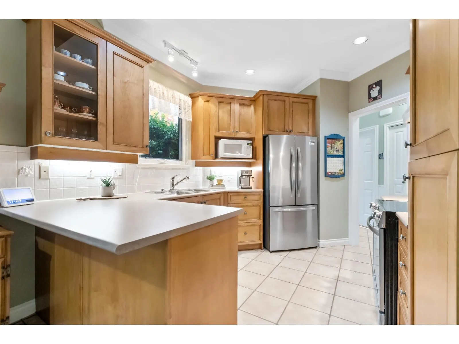 Welcome to Highgrove II, a highly sought-after 55+ community featuring this stunning semi-detached townhome that feels just like a single-family home. Beautifully finished with hardwood and ceramic floors, crown moulding, high ceilings, and large windows offering a serene treed view. The spacious layout includes a large den perfect for a guest bedroom or home office. Enjoy an extra-large, private south-facing backyard and plenty of visitor parking nearby. Ideally located steps from shopping, recreation, library, medical offices, trails, and transit. Immaculately maintained with many newer updates-move right in and enjoy! OPEN HOUSE - SAT, NOV 1, 2-4 PM (id:27476)