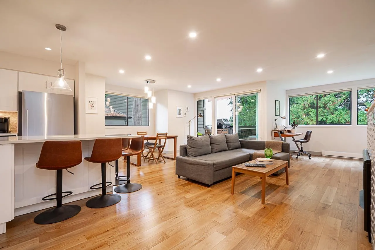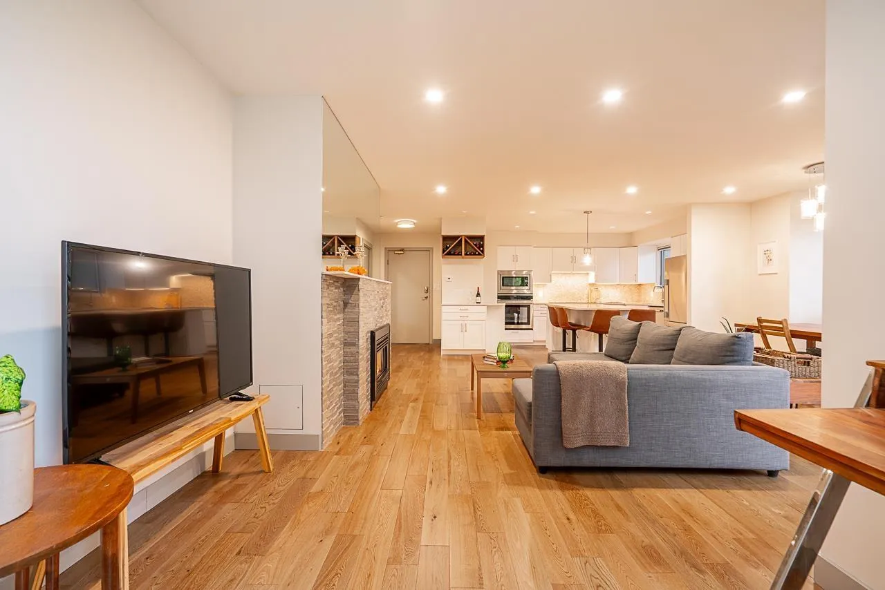 Welcome to Nico Wynd Estates, where 76 acres of resort style living blends with modern sophistication! This beautifully renovated 948sqft one bedroom plus flex upper floor end unit offers exceptional privacy, abundant natural light and tranquil views. The custom kitchen showcases quartz counters, white shaker cabinets, engineered oak floors throughout, premium induction cooktop, built-in convection oven and microwave. Enjoy the inviting gas fireplace or unwind on your west facing balcony with gas bbq hookup and scenic ocean view. The spa inspired bathroom features an oversized walk-in shower & elegant vanity. Ownership includes two golf memberships plus exclusive access to indoor pool, hot tub, tennis, pickleball, scenic trails, private marina and more-an active, carefree lifestyle awaits! (id:27476)
