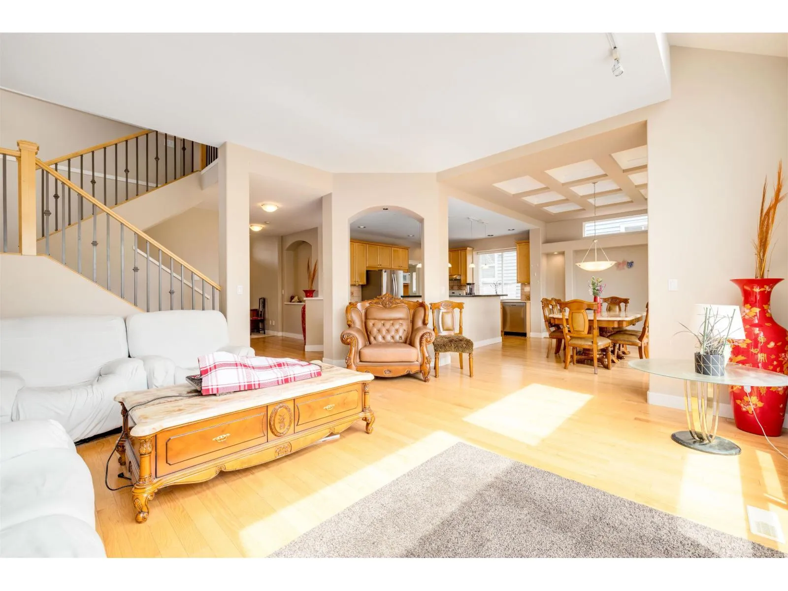 Beautiful SOUTH-facing Rosemary Heights home on a large 6,028 sq.ft. lot backing onto a permanent greenbelt! Proudly owned and meticulously maintained by the original owner, this bright and sunny home features a maple kitchen with granite breakfast bar, open concept dining area with coffered ceiling, and a great room with custom built-ins. The upper level offers a spacious loft (ideal as a 4th bedroom or office) and three generous bedrooms. Enjoy relaxing on the front porch or entertaining in the fenced backyard with fruit trees. Basement has a separate entrance 2 bedroom in-law suite /mortgage helper for your extended needs. Quiet cul-de-sac location close to schools, shopping, and transit. (id:27476)
