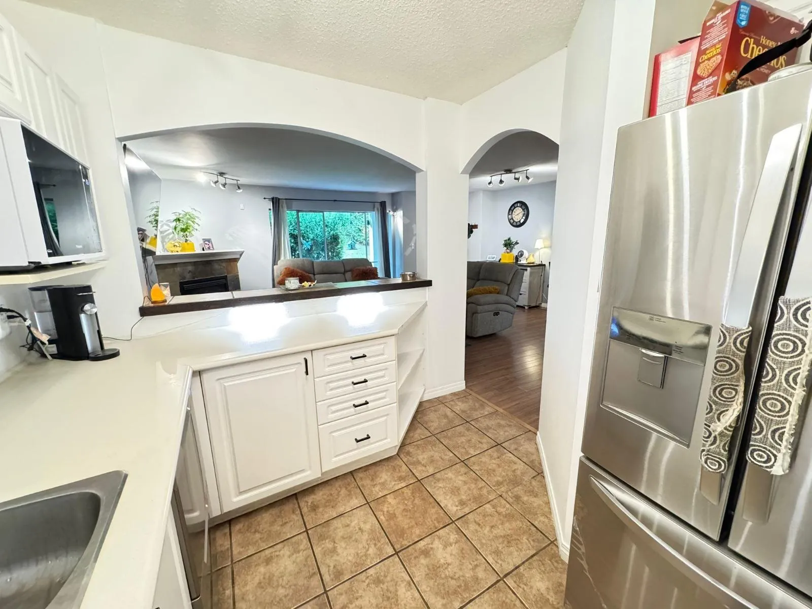 RARELY available ONE LEVEL Ground floor TOWNHOME in Bear Creek Park, this is recently renovated unit and ready for you to move in! This PRIME LOCATION 2 bdrm (1bed+huge Den) townhouse, w/ GAS FIREPLACE (included in fees) and spacious master bdrm is warm & inviting. UPDATES throughout with newer appliances includes ENSUITE LNDRY (w/ tons of storage). Enjoy a NICE BACKYARD that's perfect for entertaining, or walk out to the large grass field for your kids to play in and park right next to your home with no elevator needed as parking is right out the back door. Centrally located with Guildford Mall, Walmart and much more located within a 10 minute drive. Safe and GATED complex with Bearcreek Park steps away. Pet-friendly. Hot water tank 2021. Fisher & Paykal Dishwasher & LG Stove. 2 Parking! (id:27476)