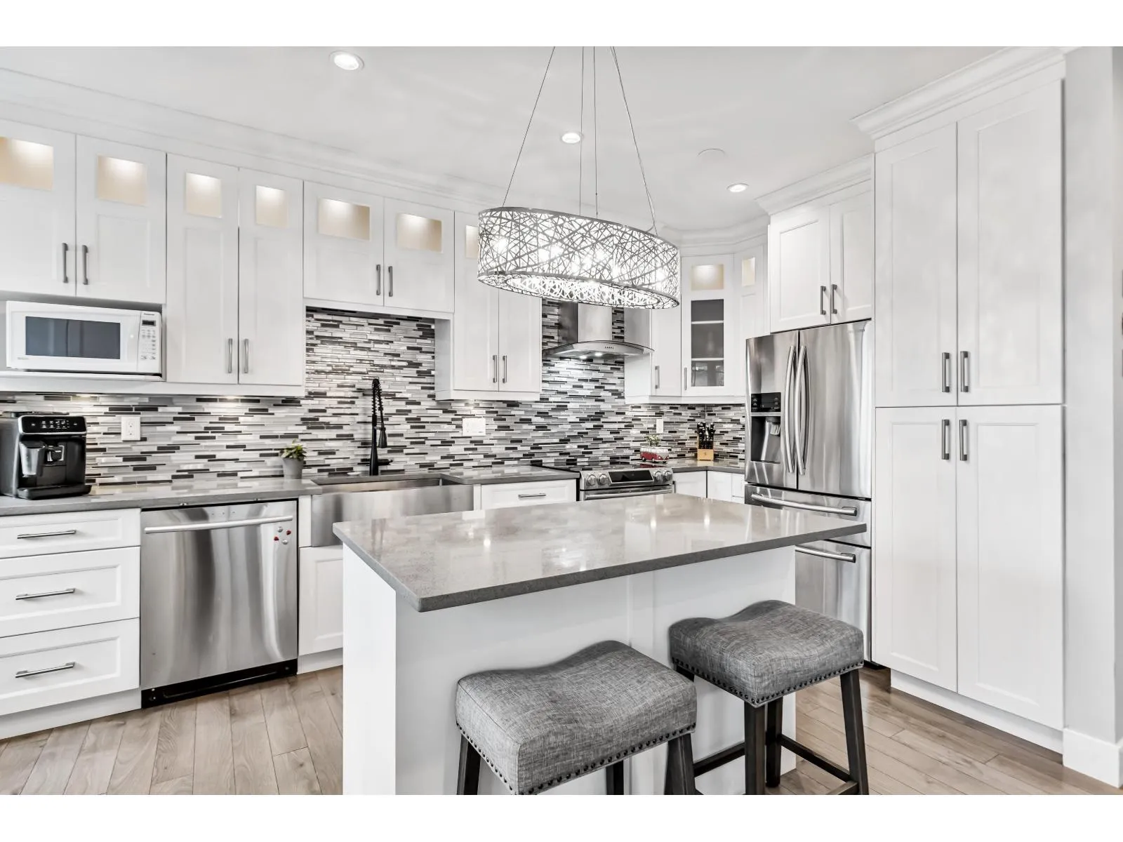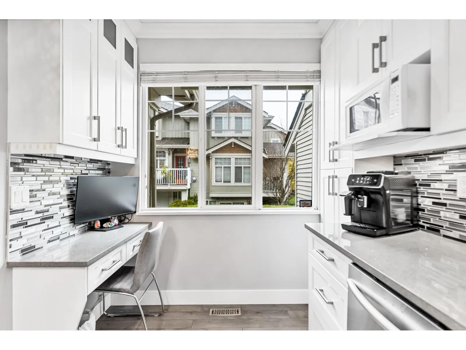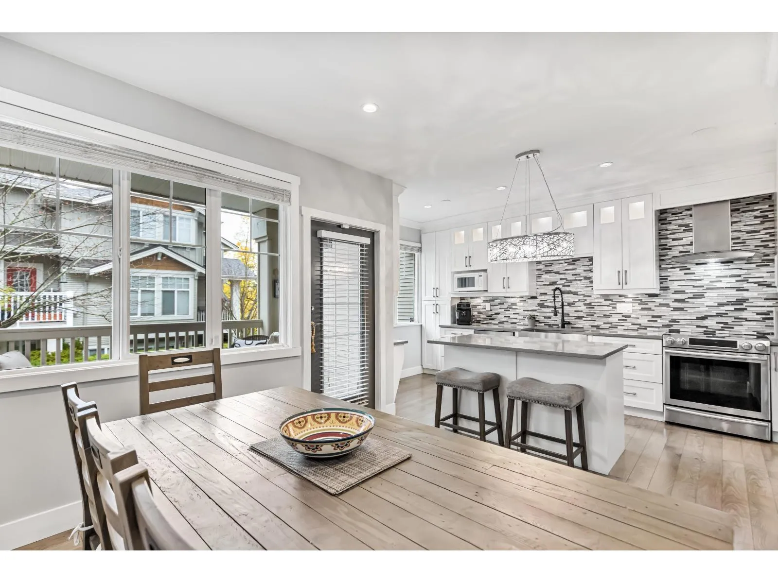 Welcome to Redmill by Dawson Developments. This spacious & elegant 4 bedroom, 3 bathroom end unit is flooded with natural light and is adorned by a large, south facing yard. This home has been fully updated with a completely reconfigured kitchen and dining area, updated flooring, fixtures, appliances and bathrooms. Other features include 9' ceilings, a large living room with custom stone gas fireplace, a double side by side garage, a large balcony off of the dining room and a covered porch off of the main living room that is perfect for entertaining. Ideal Panorama location that is close to transit, YMCA, Fresh Street, Cambridge Elementary, Panorama Village Park, medical services, shopping, restaurants, coffee shops, and banks. Enjoy direct access to all major commuter routes all while still feeling tucked away on a quiet, tree-lined suburban street. 1/2 block away from the brand new Snokomish Elementary (May 2026). Bonus street parking off of the front yard and visitor parking right beside the unit! (id:27476)