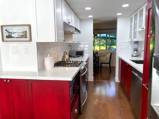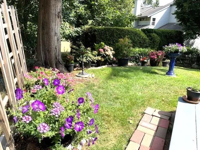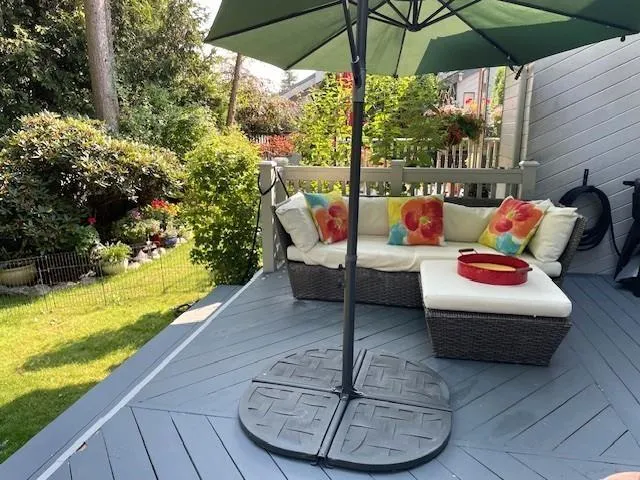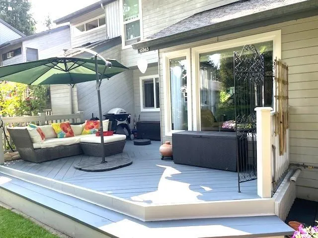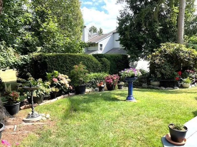 Nestled within the woods of Alder park - 3 ponds, tennis, basket ball courts, playground + walking paths. Beautiful update 3 bdrm. home. Kitch (Maple cabinets, pantry pull outs, finger joint drawers, quartz counters, ss icemaker fridge, 5 burner gas stove, pot Lites, wood ceiling above nook) 2 Bathrooms redone, basement bath rough in, engineered wood flrs through out+ Media rm in bsmt (custom cherry walls, white washed pine ceiling, pot lites, sound proofing in walls & ceiling). All inside doors update, moldings on ceilings, flr & walls. Incredible views of greenery from every window. Deck at back + off Primary Bdrm. EV CHARGER. New windows & sliding drs. Tankless hot water + gas BBQ hook up. Custom internet cabling. RV parking. Complex backs onto Earl Marriot Secondary. Few blocks to Peace Arch elementary. OPEN SUN NOV. 9, 2 - 4. (id:27476)
