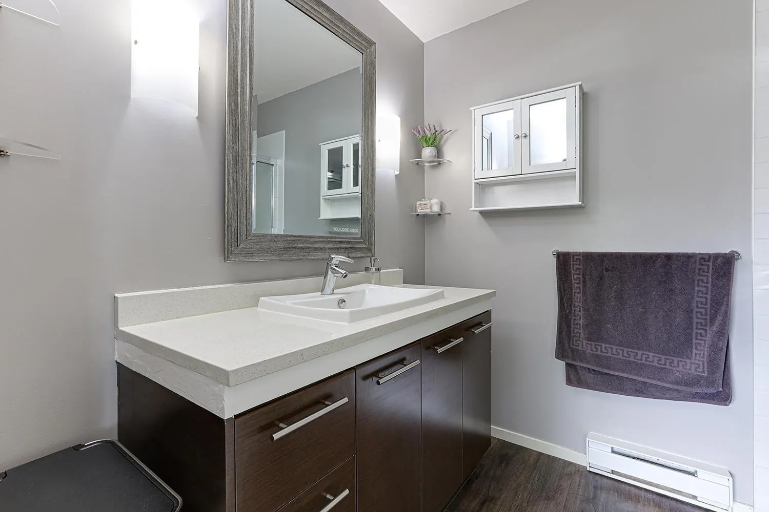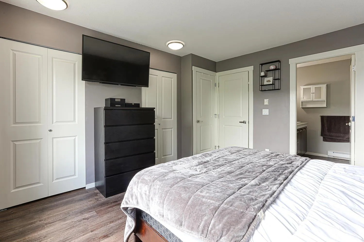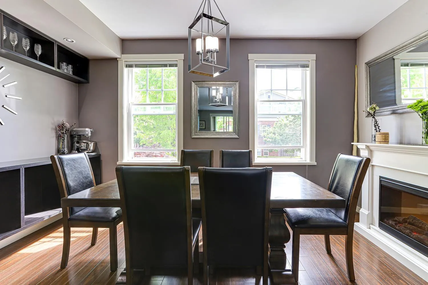 Welcome to Kew, built by MOSAIC! This well taken care of 2bed, 2bath and den townhome boasts modern features including quartz countertops, new stainless steel appliances/WD, hardwood floors. The open floor plan on the 2nd level is perfect for entertaining featuring a good sized deck, living room with an ashler fireplace and built in cabinetry, a large island leading to the dining room that can sit 8. Upstairs there is new vinyl flooring, 2 bathrooms updated with new countertops, the primary bedroom offering an ensuite with plenty of closet space and separated from the primary, the second bedroom is a functional size. On the main floor, there is a den with a window and a closet that has the potential to be a 3rd bedroom. Outside epoxied garage is room for 2nd car. Open House Nov. 8, 1-3. (id:27476)