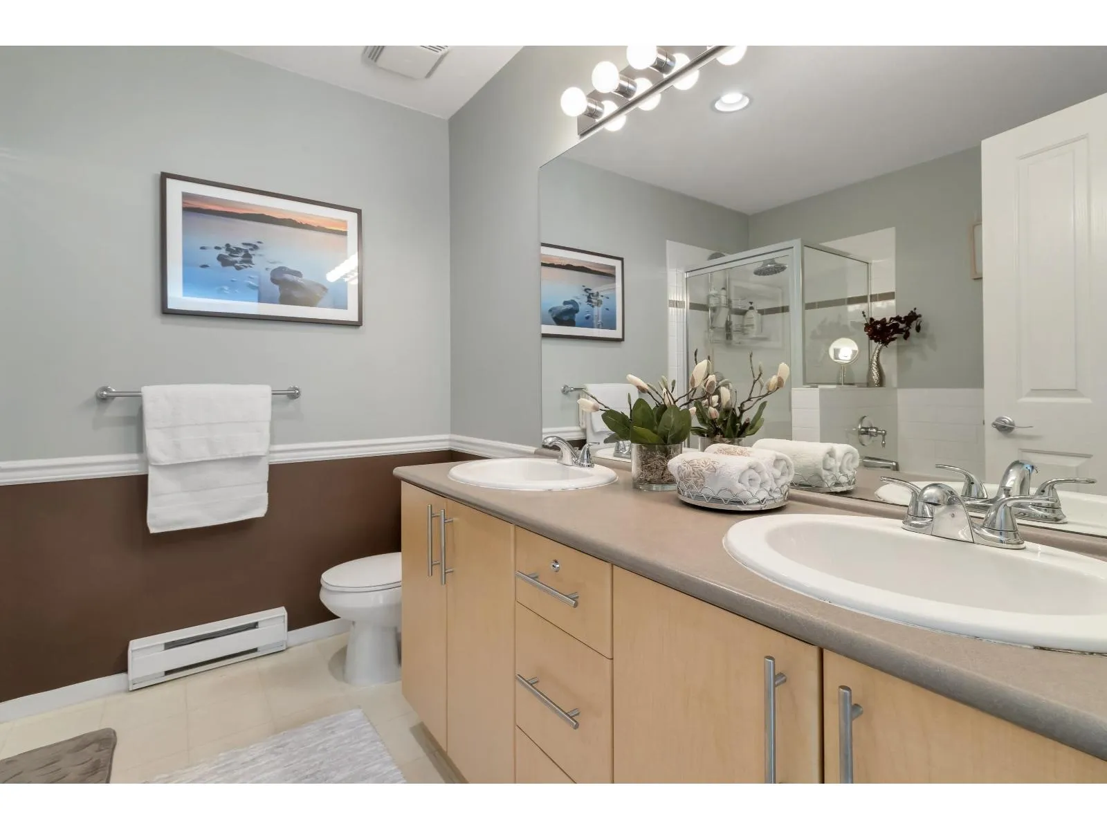 *********Enjoy RESORT-STYLE living with mountain VIEWS! This beautifully maintained 3 bed, 2.5 bath townhome has a PRIVATE fenced yard and unobstructed views of the Golden Ears Mountains from balcony+bedroom. 10,000+ sq ft amenities building featuring outdoor swimming POOL, hot tub, indoor hockey rink, gym. Find quality kitchen appliances with a gas F/P and POWDER on MAIN floor. 3 spacious bedrooms upstairs, double tandem garage parking, and quieter location within the FAMILY-ORIENTED complex. PRIME-LOCATION: YMCA, schools, shops, parks, and US border, highways to Van/Richmond/Langley! ********** (id:27476)