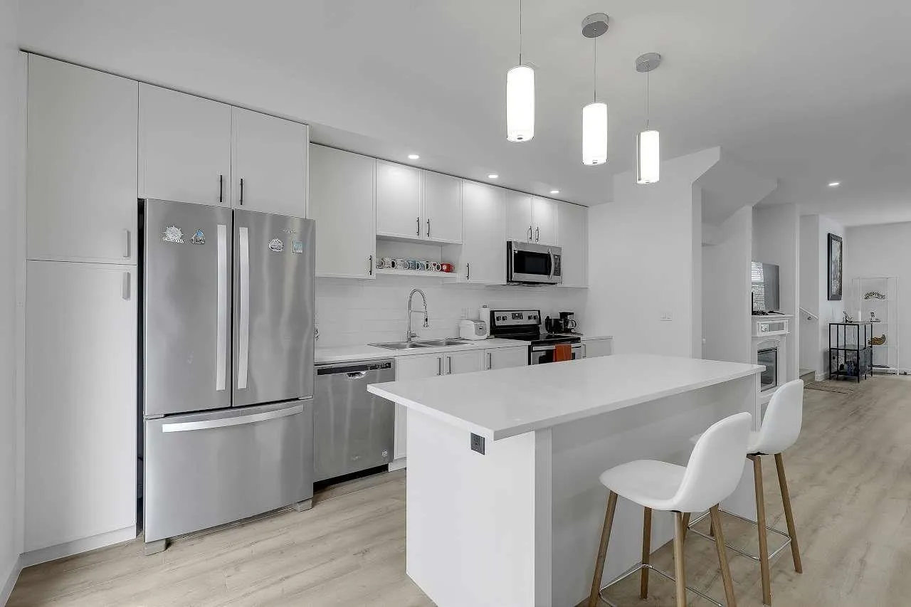 Welcome to Guildford The Great II by award-winning Dawson & Sawyer. Tastefully UPDATED 4bed, 4 bath & spacious DOUBLE side by side garage TOWNHOUSE. Brand NEW updates include; Modern SHAKER Style kitchen & bathroom CABINETS, AUSTRIAN OAK laminate FLOORS on all levels, LED Pot lights, Home Depot installed bathroom PORCELAIN tiles, microwave & exhaust combo, & EPOXY garage, fresh paint throughout & more. BONUS, below a LARGE bedroom w/ ENSUITE perfect for mortgage helper, guests, or in-laws. Enjoy a 2-level clubhouse, PERFECT walkability Steps to Guildford Village, schools / transit, & seconds to Hwy 1 exit. First Open House Sat & Sun November 8/9 2-4PM. (id:27476)