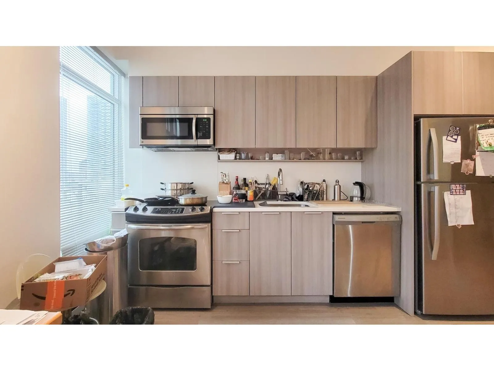 Welcome to EVOLVE by Westone Group! This luxurious tower in West Village is sure to impress with a great functional floor plan! Only 6 years young this unit is great for first time buyers or investors or for a retired person looking to pare down! Granite counters in the kitchen and bathroom, modern cabinets, s/steel appliances and laminate floors make this home easy to care for! Currently rented to a great tenant who loves the unit and building and would love to stay! Evolve has resort style amenities with a fully equipped gym, a theatre room, a concierge (no more worries for amazon deliveries), and 3 elevators to wisk you up to your new home! Easy walk to SFU, the skytrain, Surrey City Hall and Library, Central City Mall, and T & T market. (id:27476)