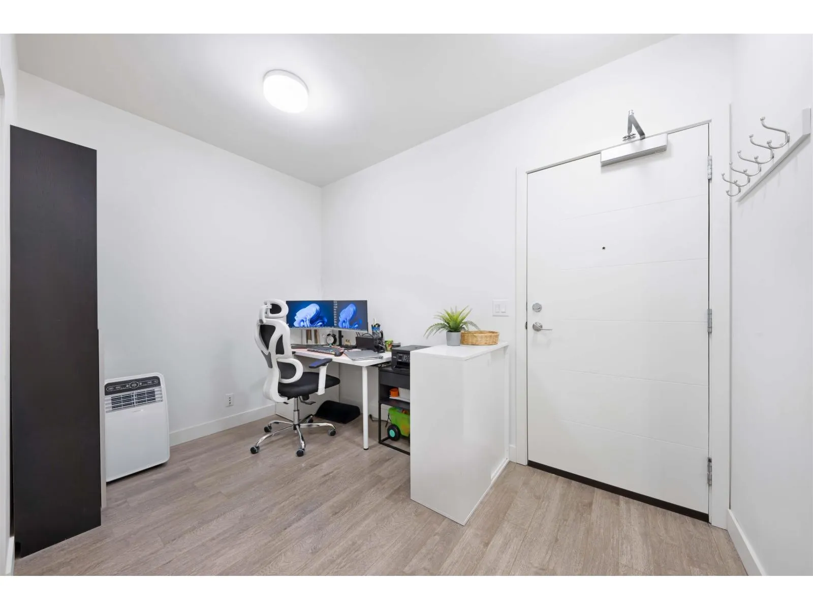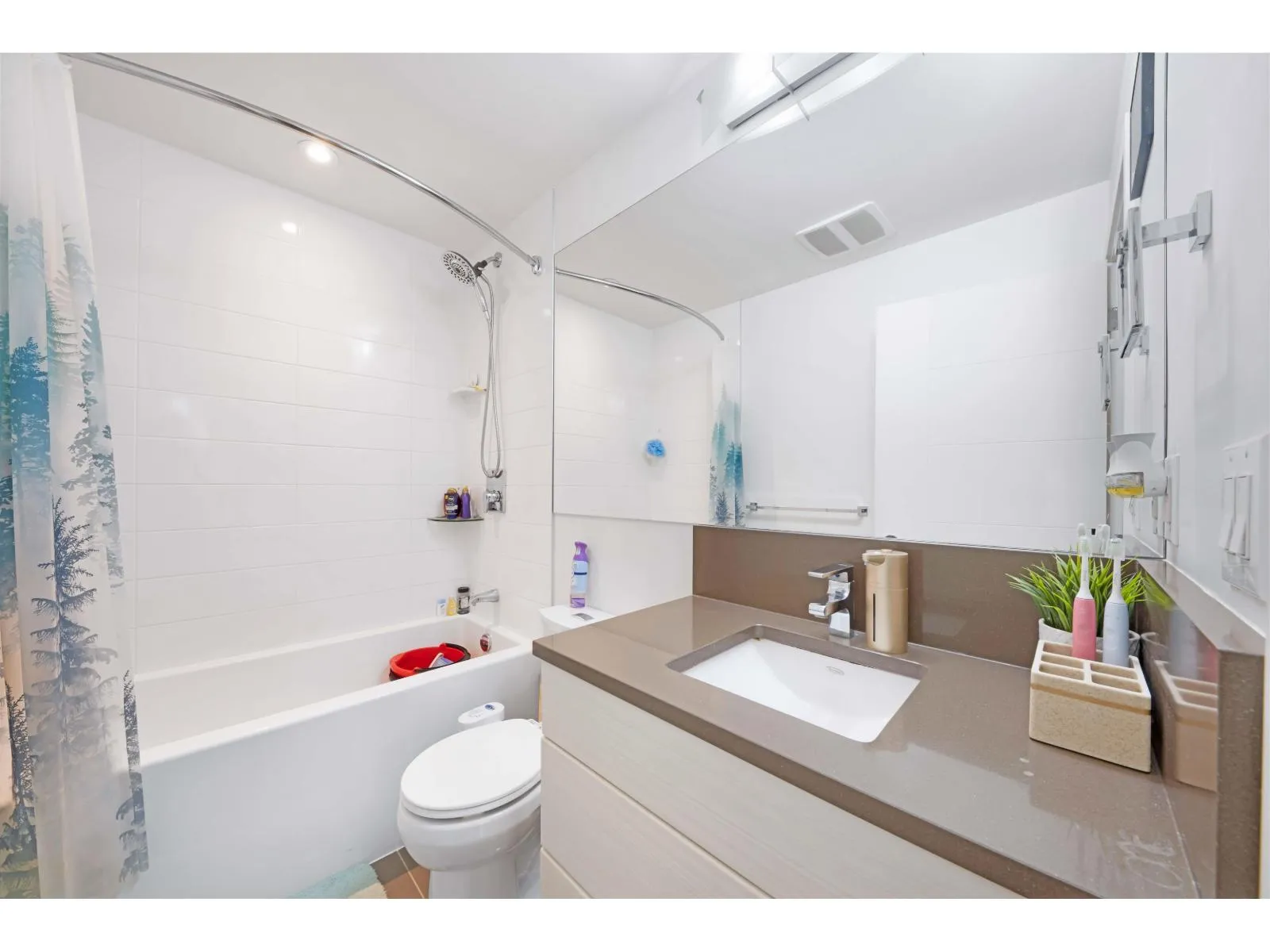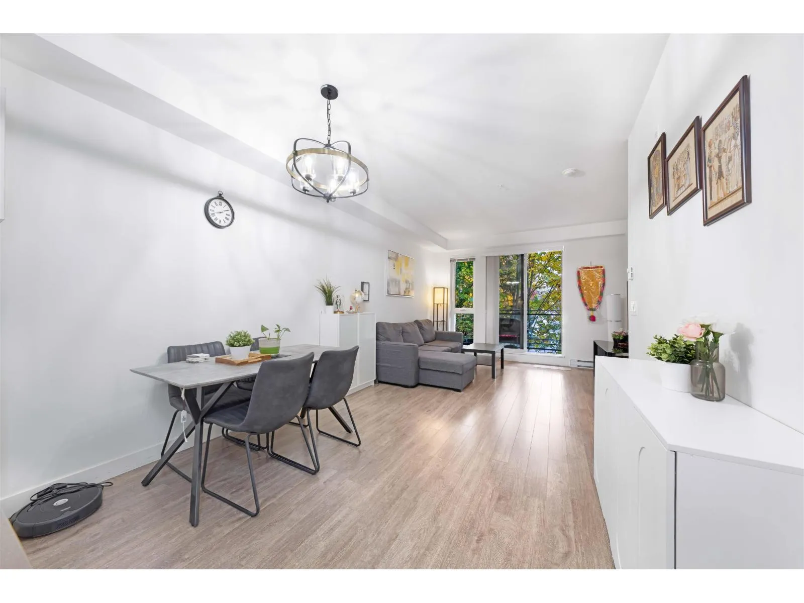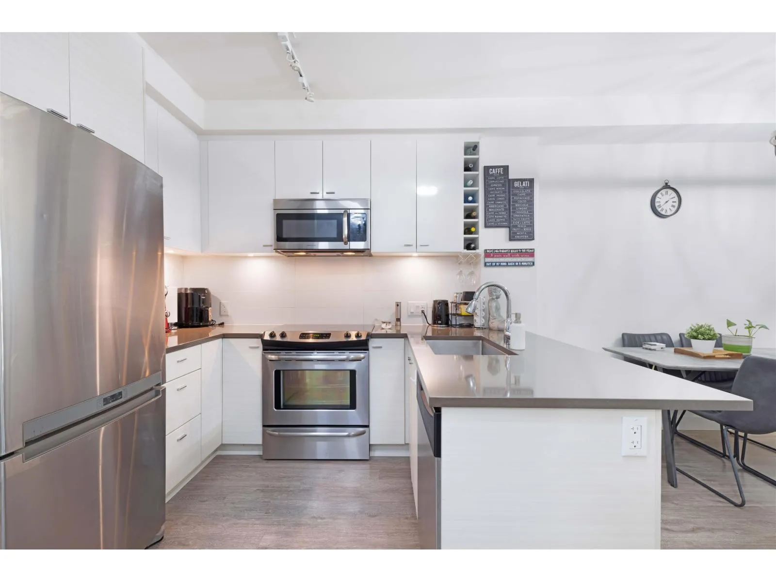 Welcome to VERVE by PORTE! Just minutes from King George Skytrain, King George HUB, Central City Mall, SFU, Future UBC & Surrey Memorial Hospital. This Quiet and Bright 1 Bedroom + Large Den home features 9' ceilings, quartz counter top, stainless steel appliances, soft-close cabinets & a spacious breakfast bar. The den is large enough for an office or guest room. Enjoy a private balcony with a peaceful treed outlook, offering excellent privacy. Includes 1 EV Ready Parking & 1 Locker. Amenities include gym, yoga studio, clubhouse & guest suite. Recently updated laminate flooring in the Primary Bedroom. Rentals & pets allowed-ideal for first-time buyers or investors! A rare opportunity, don't miss out. Open House on November 15th & 16th (Sat & Sun) from 2:00pm to 4:00pm. (id:27476)