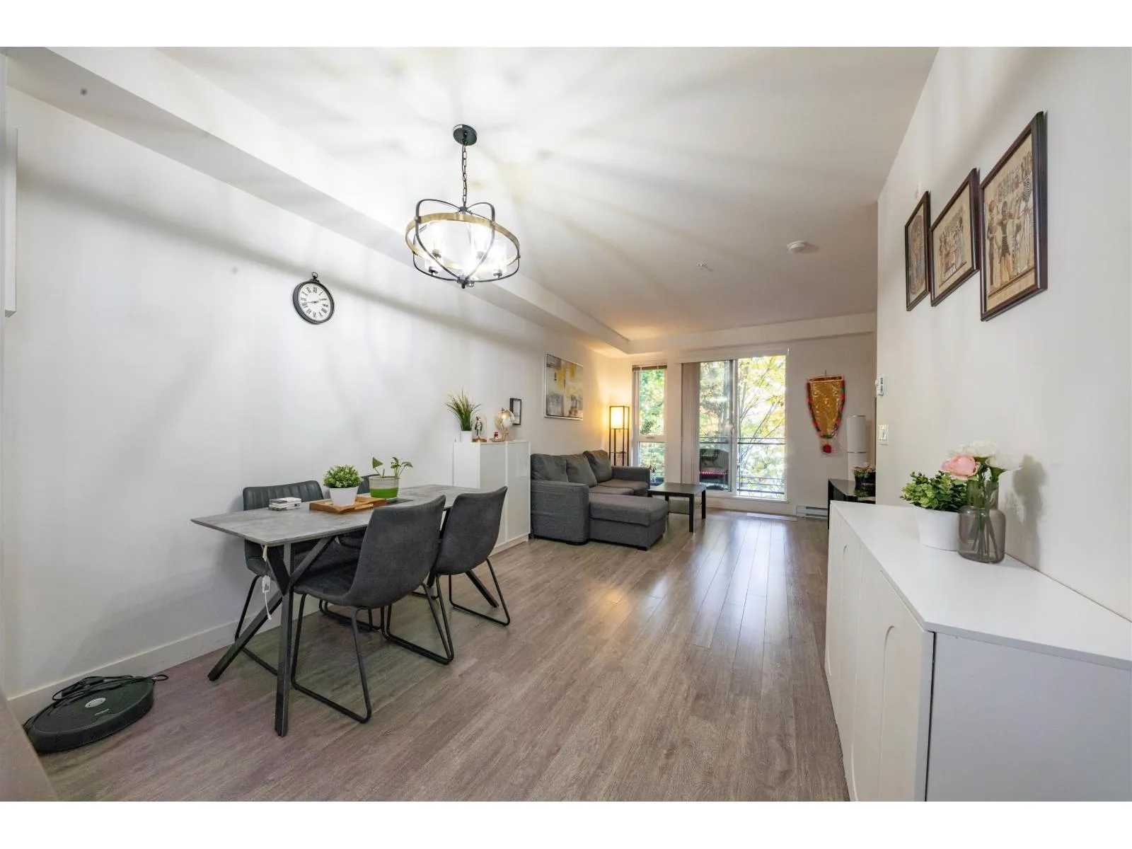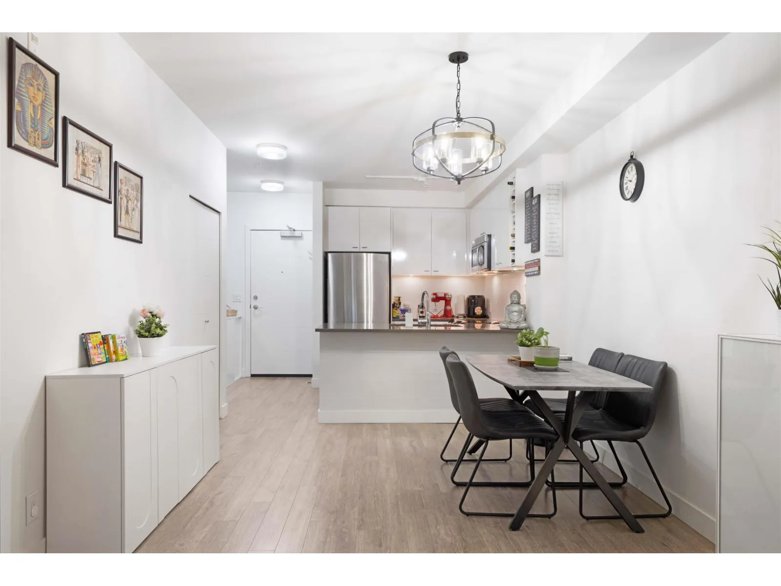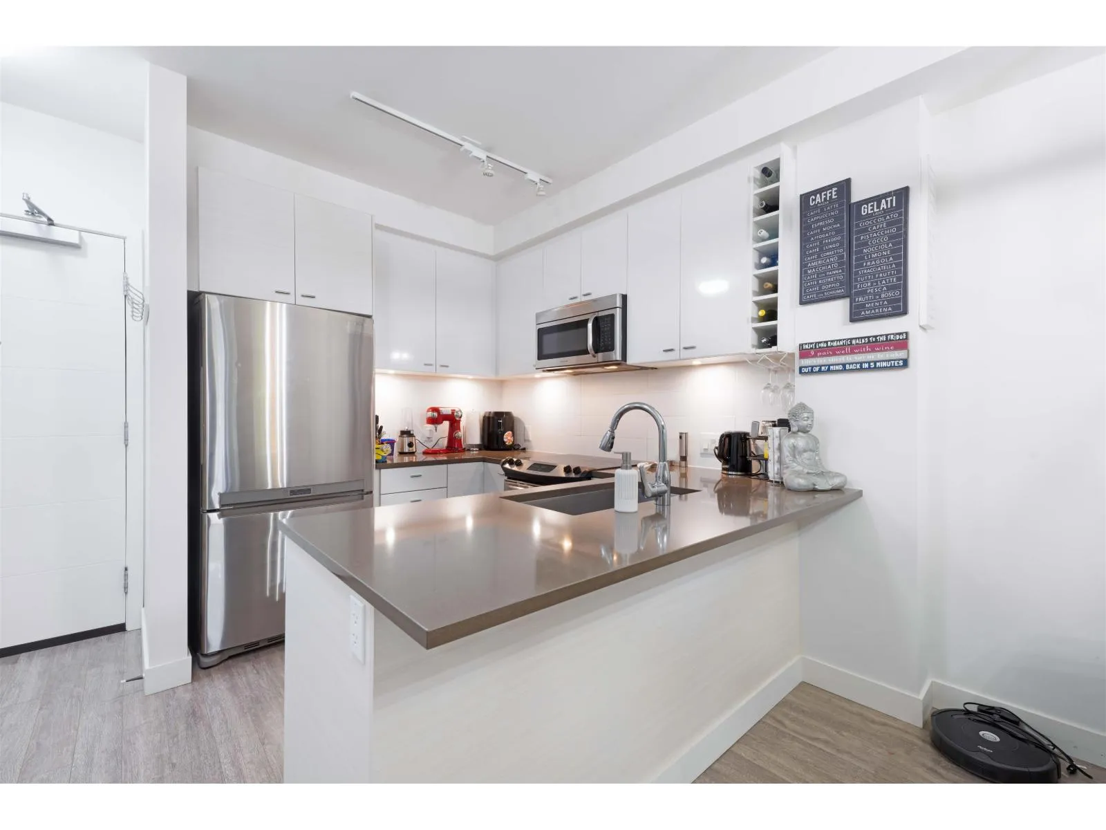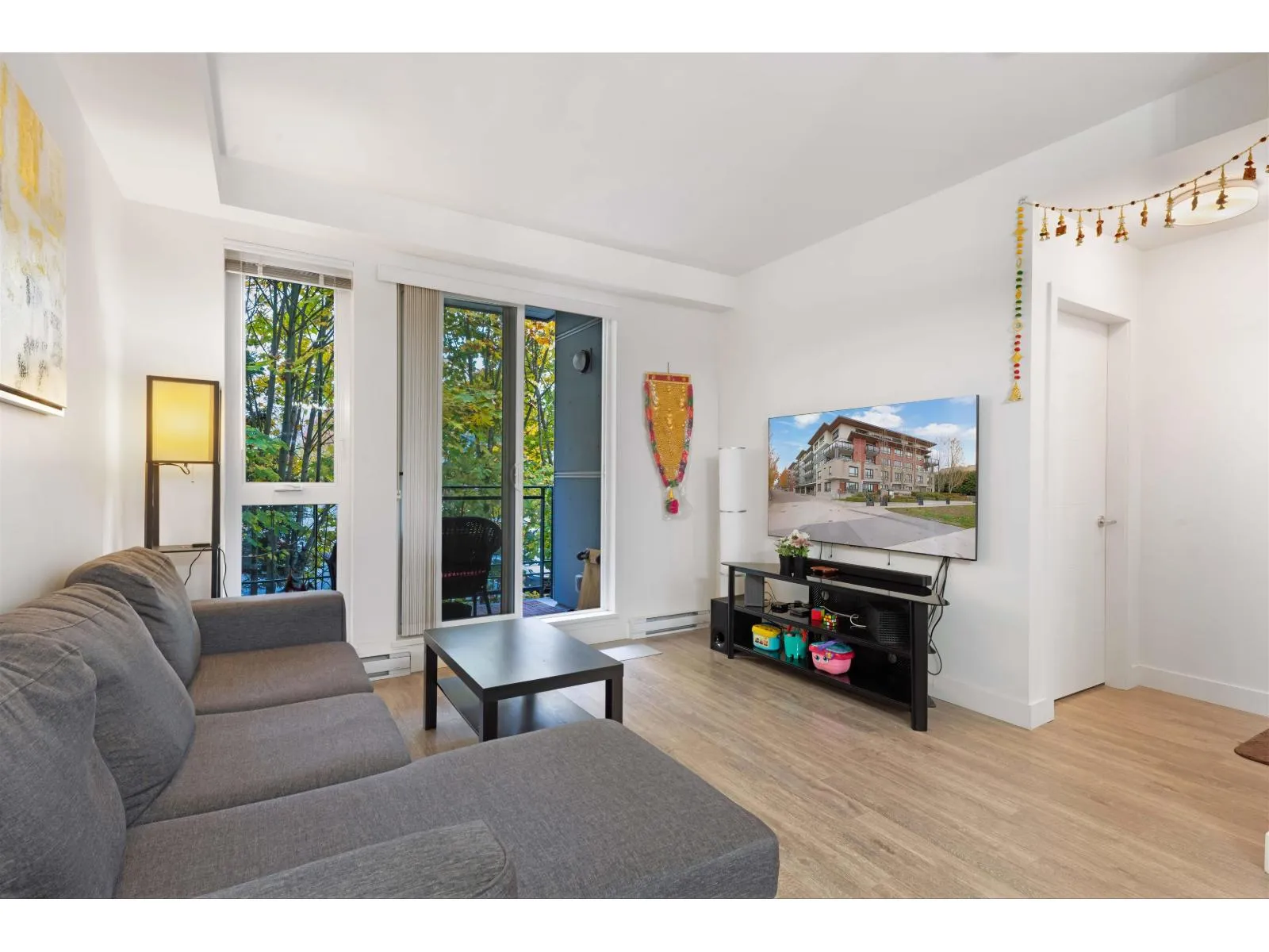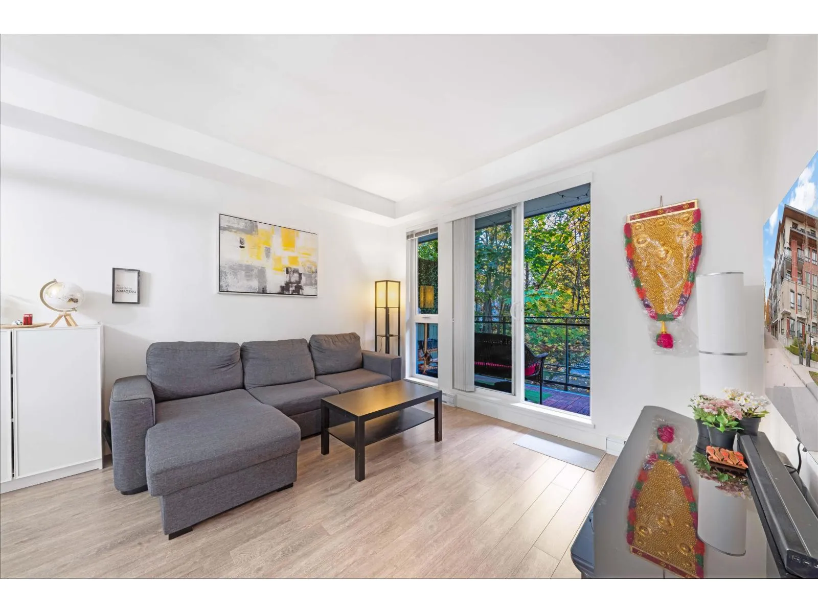 Welcome to VERVE by PORTE! Just minutes from King George Skytrain, King George HUB, Central City Mall, SFU, Future UBC & Surrey Memorial Hospital. This Quiet and Bright 1 Bedroom + Large Den home features 9' ceilings, quartz counter top, stainless steel appliances, soft-close cabinets & a spacious breakfast bar. The den is large enough for an office or guest room. Enjoy a private balcony with a peaceful treed outlook, offering excellent privacy. Includes 1 EV Ready Parking & 1 Locker. Amenities include gym, yoga studio, clubhouse & guest suite. Recently updated laminate flooring in the Primary Bedroom. Rentals & pets allowed-ideal for first-time buyers or investors! A rare opportunity, don't miss out. Open House on November 15th & 16th (Sat & Sun) from 2:00pm to 4:00pm. (id:27476)