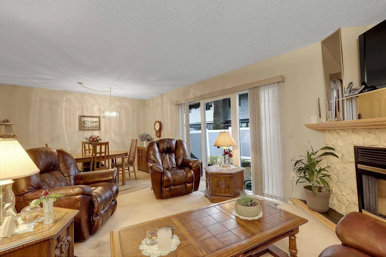 Welcome to Woodbridge, Nearly 1700 Sq ft 3 bdrm 3 bath 2 level plus bsmt style home in well managed family oriented town-home complex. The main floor features new flooring throughout, a lrg kitchen. Lvgrm/dining room open thru patio doors to a large fenced yard. Ideal for family gatherings and a play area for children. Upstairs, 3 bdrm large master with 2 pc ensuite, Bsmt mostly used for storage but easily converted to family room for kids to play. Complex features indoor pool, playground, sauna, small basketball area and green space to stroll through. Close to all amenities, Guildford Mall, Port Mann Bridge/Hwy #1, grocery stores and more. Perfect for any family as well as pet friendly. (id:27476)