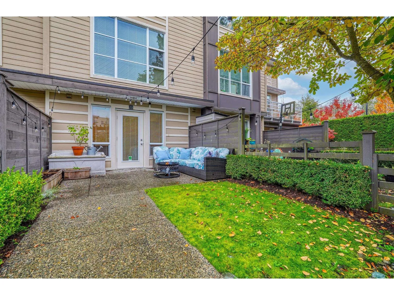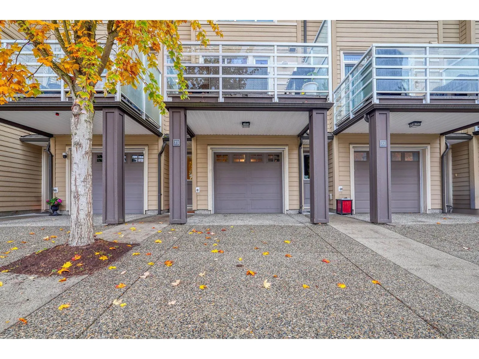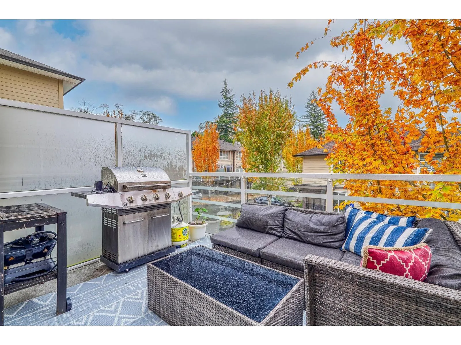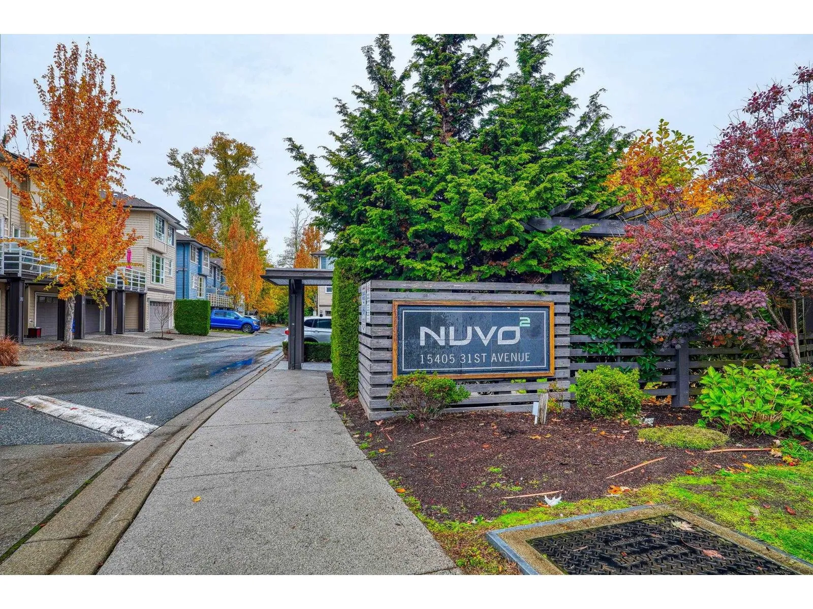 Welcome to a beautiful townhome at Nuvo II! Stylish 2-3 bedroom home with a private treed outlook. The entry level offers a flexible bedroom or office (zoned for work), full bath, and access to a fenced yard. The bright main floor features an open-concept layout with a chef's kitchen - rich wood cabinets, granite counters, stainless steel appliances, and a large pantry. Enjoy an oversized, private balcony perfect for relaxing or entertaining. Upstairs boasts two spacious bedrooms, each with its own ensuite. Single garage with extended covered driveway for extra parking. Excellent outdoor areas on the deck and downstairs patio. Central location close to shopping and quick Highway 99. School catchment is Rosemary Heights. A short walk to Morgan Crossing. (id:27476)