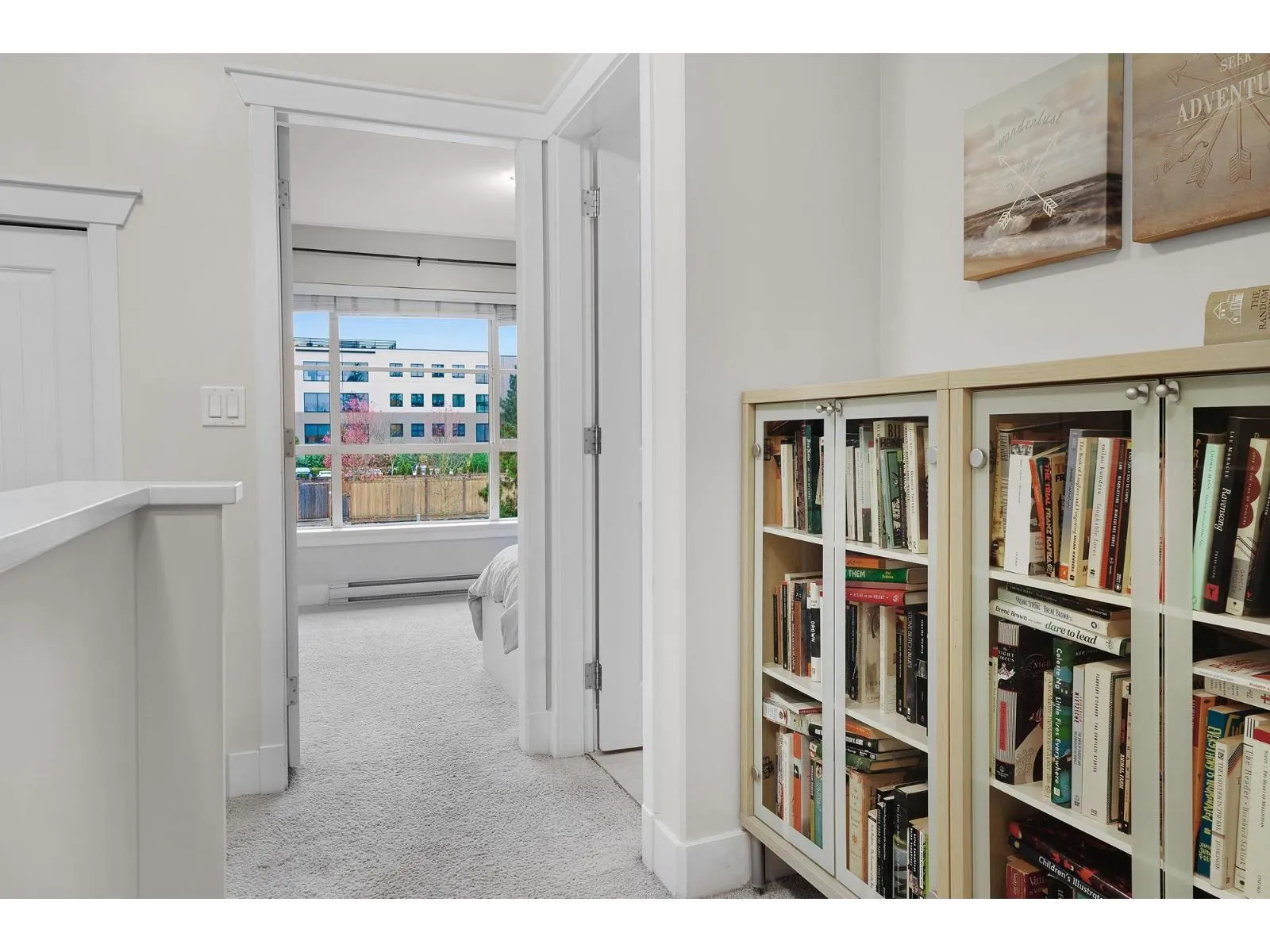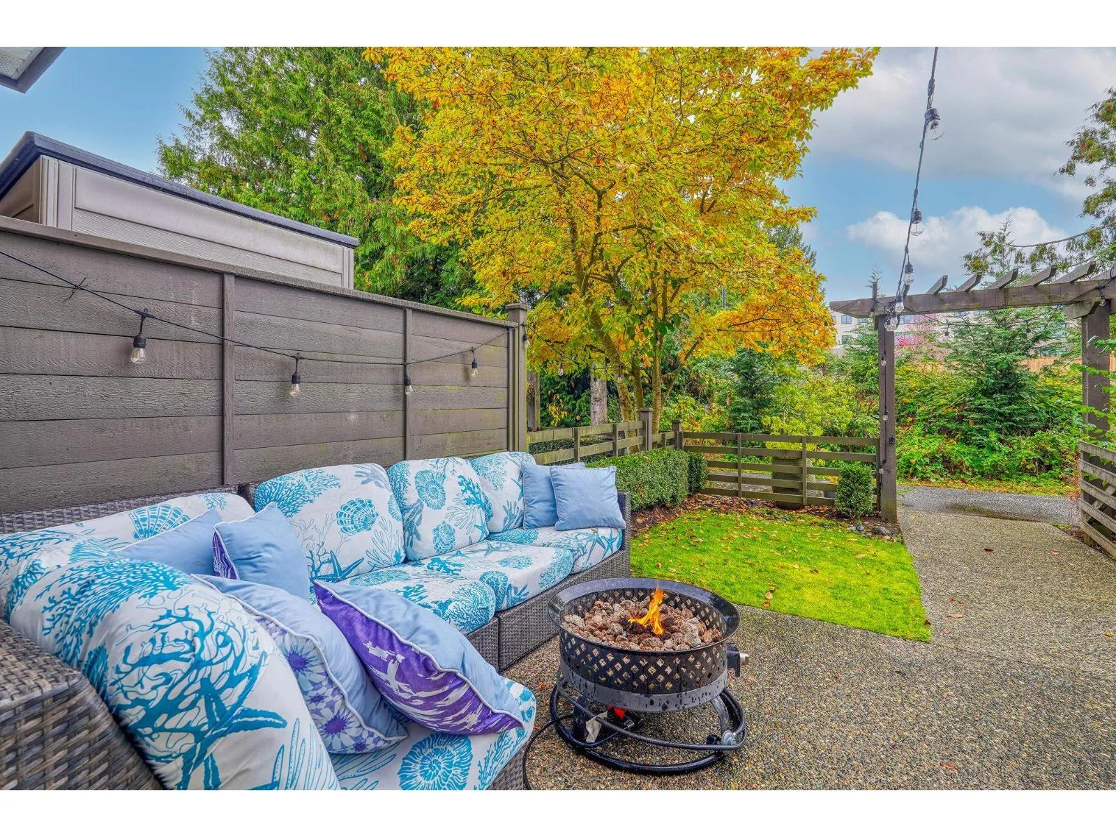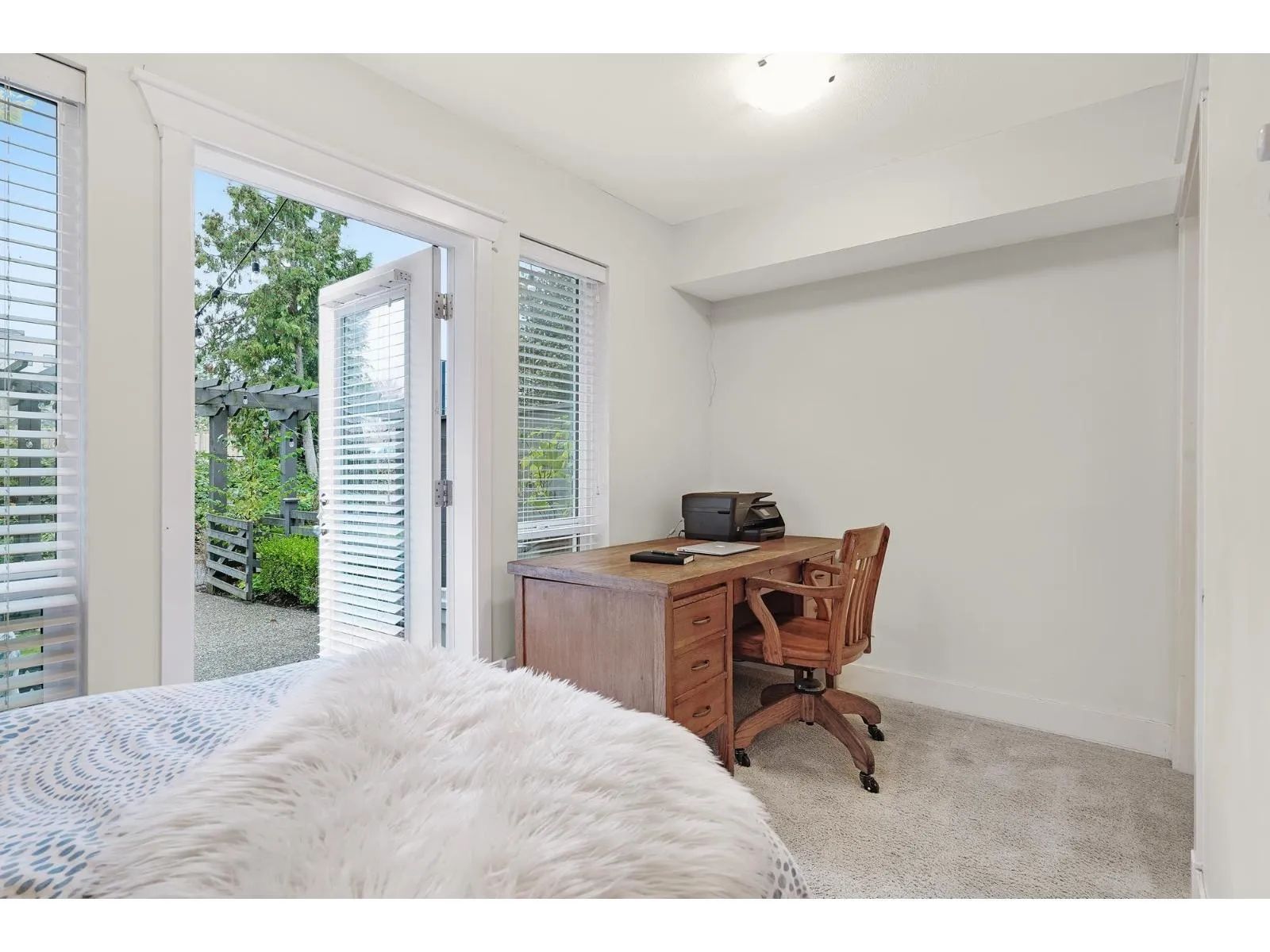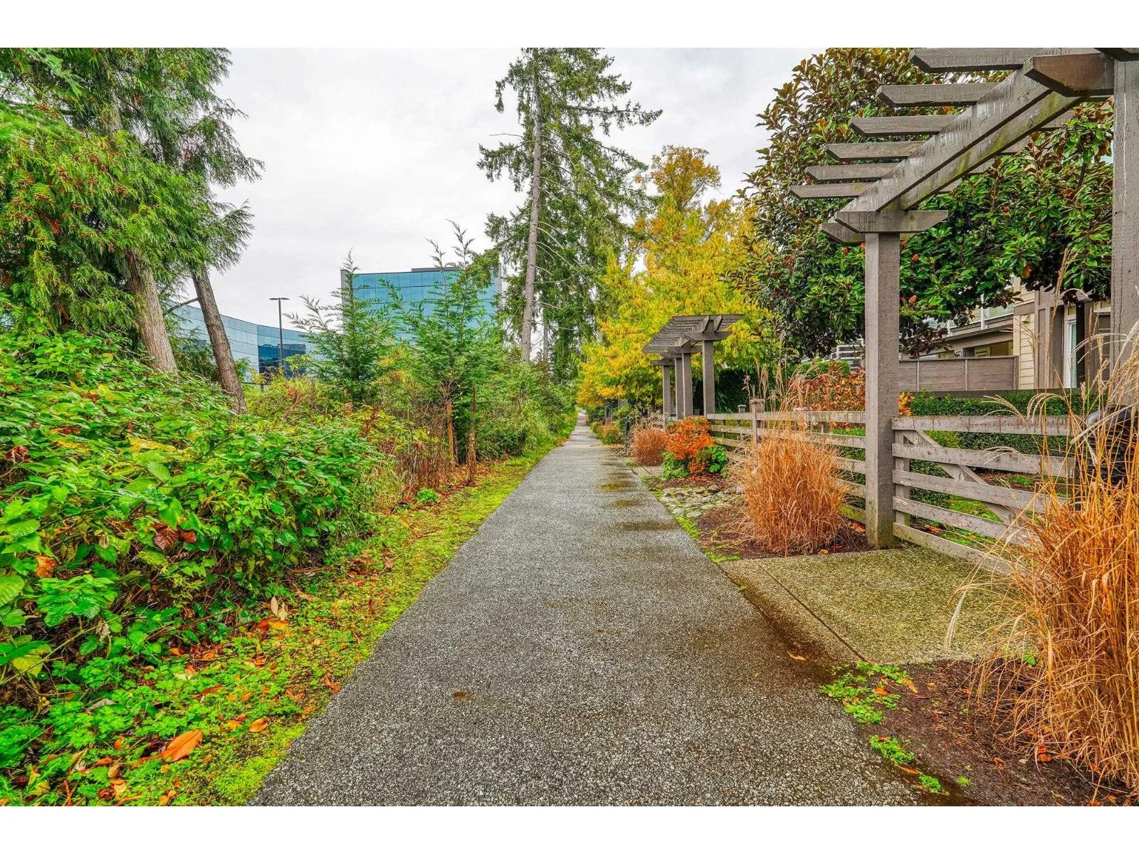 Welcome to a beautiful townhome at Nuvo II! Stylish 2-3 bedroom home with a private treed outlook. The entry level offers a flexible bedroom or office (zoned for work), full bath, and access to a fenced yard. The bright main floor features an open-concept layout with a chef's kitchen - rich wood cabinets, granite counters, stainless steel appliances, and a large pantry. Enjoy an oversized, private balcony perfect for relaxing or entertaining. Upstairs boasts two spacious bedrooms, each with its own ensuite. Single garage with extended covered driveway for extra parking. Excellent outdoor areas on the deck and downstairs patio. Central location close to shopping and quick Highway 99. School catchment is Rosemary Heights. A short walk to Morgan Crossing. (id:27476)