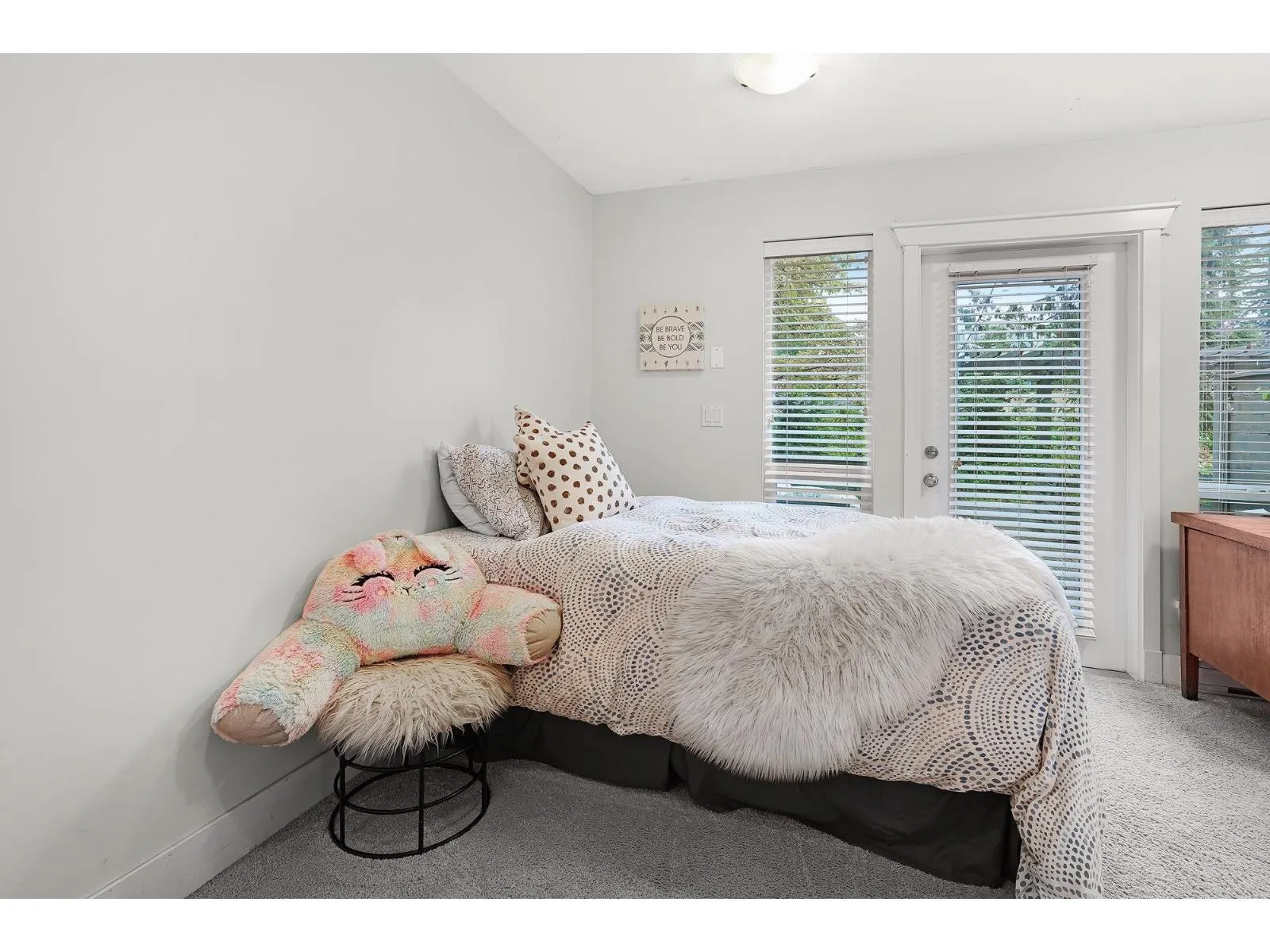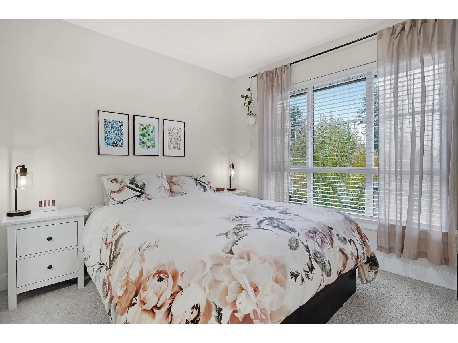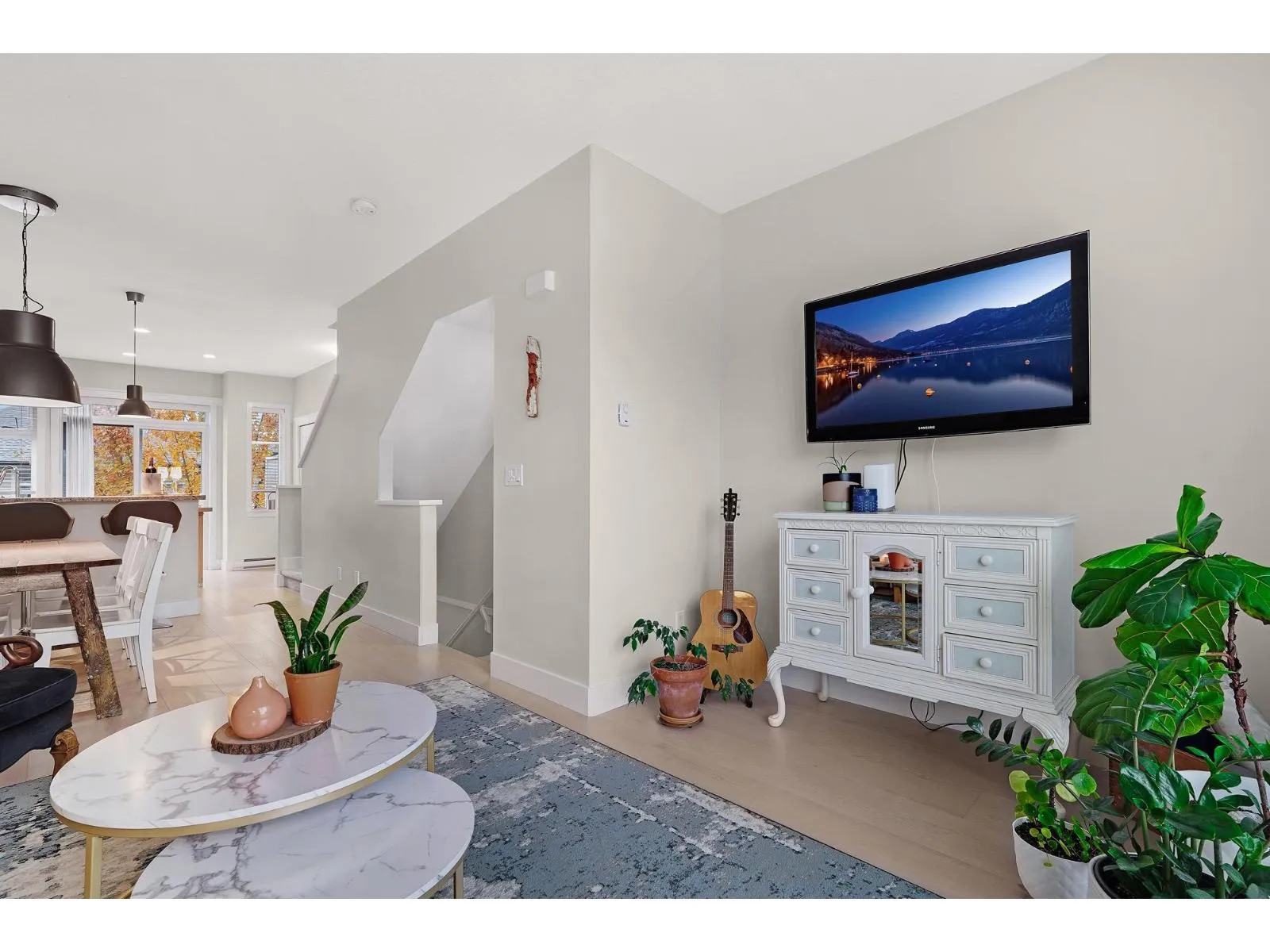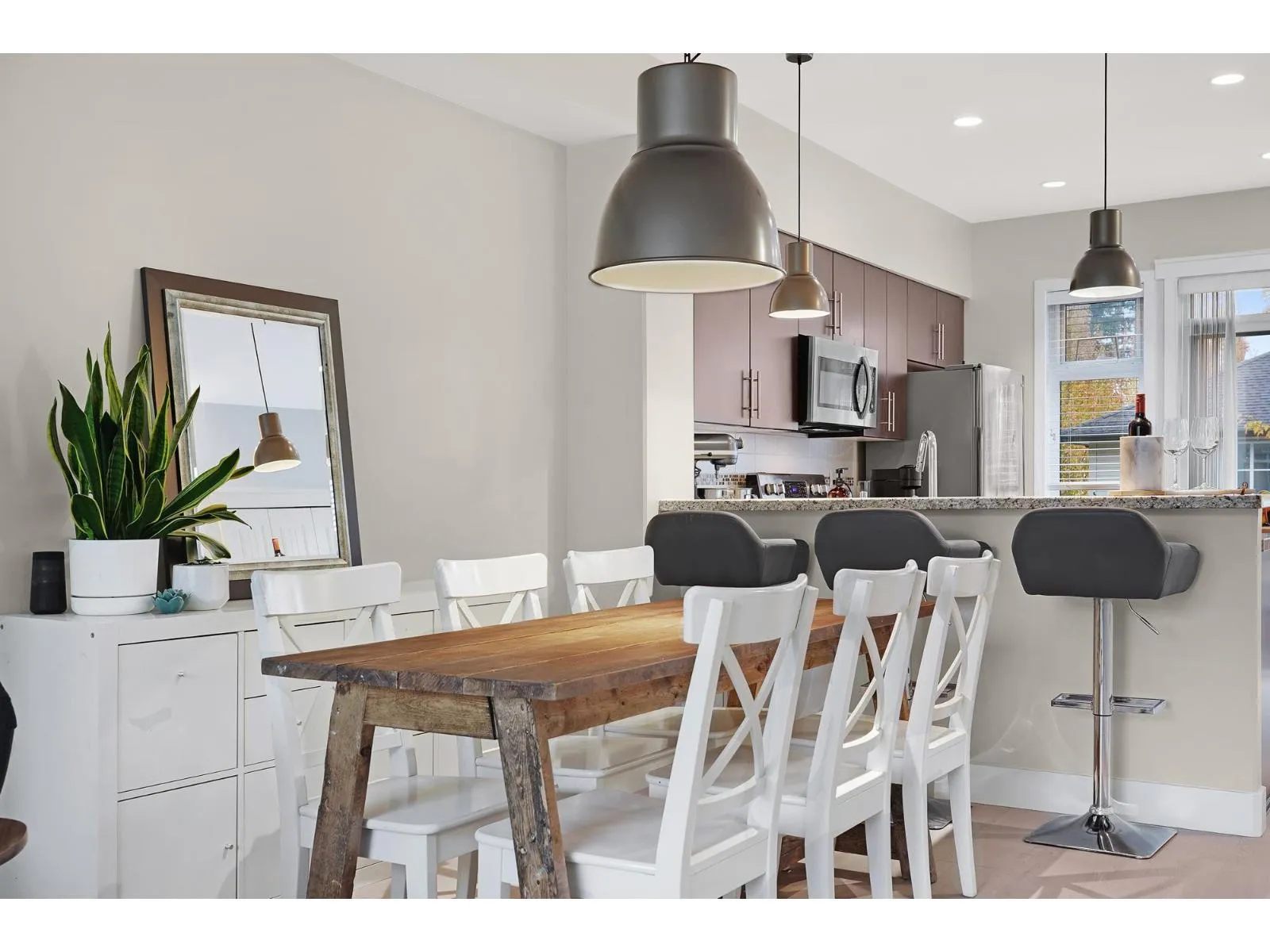 Welcome to a beautiful townhome at Nuvo II! Stylish 2-3 bedroom home with a private treed outlook. The entry level offers a flexible bedroom or office (zoned for work), full bath, and access to a fenced yard. The bright main floor features an open-concept layout with a chef's kitchen - rich wood cabinets, granite counters, stainless steel appliances, and a large pantry. Enjoy an oversized, private balcony perfect for relaxing or entertaining. Upstairs boasts two spacious bedrooms, each with its own ensuite. Single garage with extended covered driveway for extra parking. Excellent outdoor areas on the deck and downstairs patio. Central location close to shopping and quick Highway 99. School catchment is Rosemary Heights. A short walk to Morgan Crossing. (id:27476)