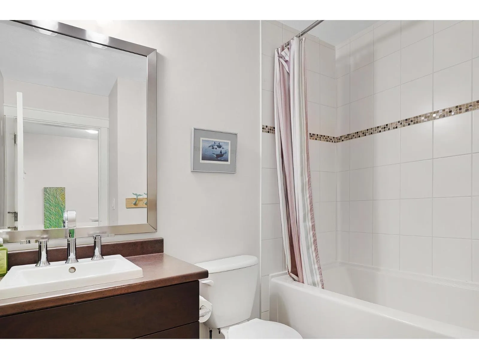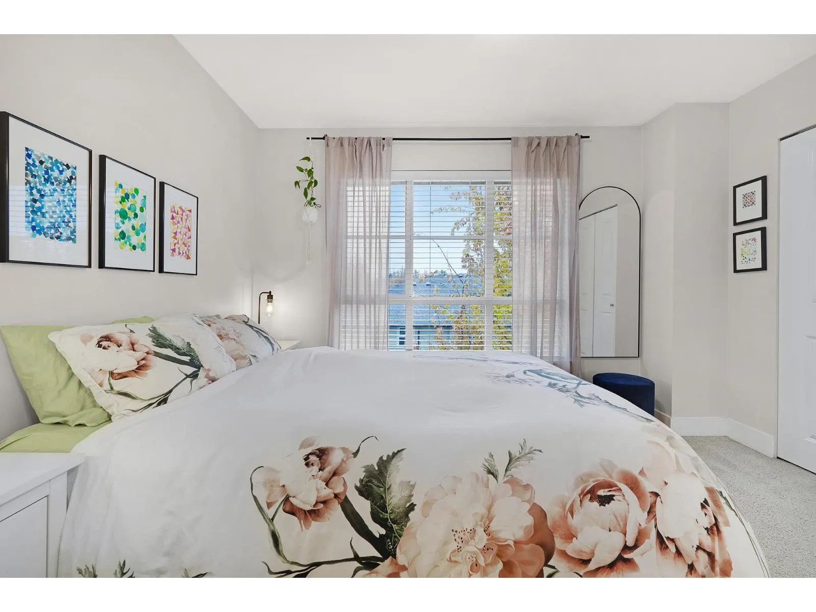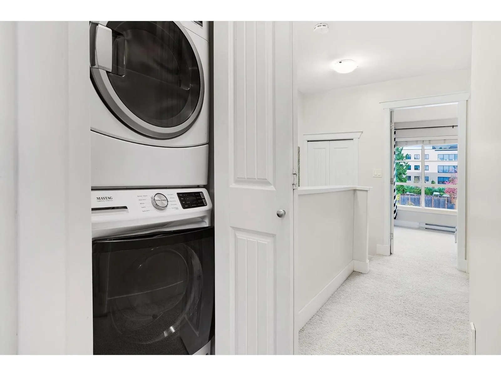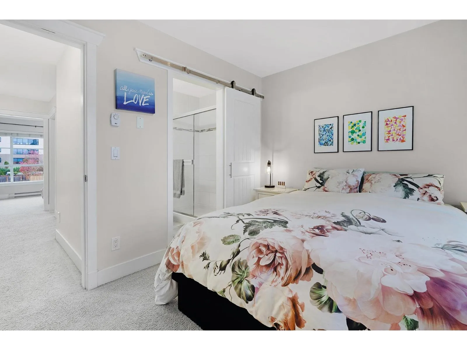 Welcome to a beautiful townhome at Nuvo II! Stylish 2-3 bedroom home with a private treed outlook. The entry level offers a flexible bedroom or office (zoned for work), full bath, and access to a fenced yard. The bright main floor features an open-concept layout with a chef's kitchen - rich wood cabinets, granite counters, stainless steel appliances, and a large pantry. Enjoy an oversized, private balcony perfect for relaxing or entertaining. Upstairs boasts two spacious bedrooms, each with its own ensuite. Single garage with extended covered driveway for extra parking. Excellent outdoor areas on the deck and downstairs patio. Central location close to shopping and quick Highway 99. School catchment is Rosemary Heights. A short walk to Morgan Crossing. (id:27476)