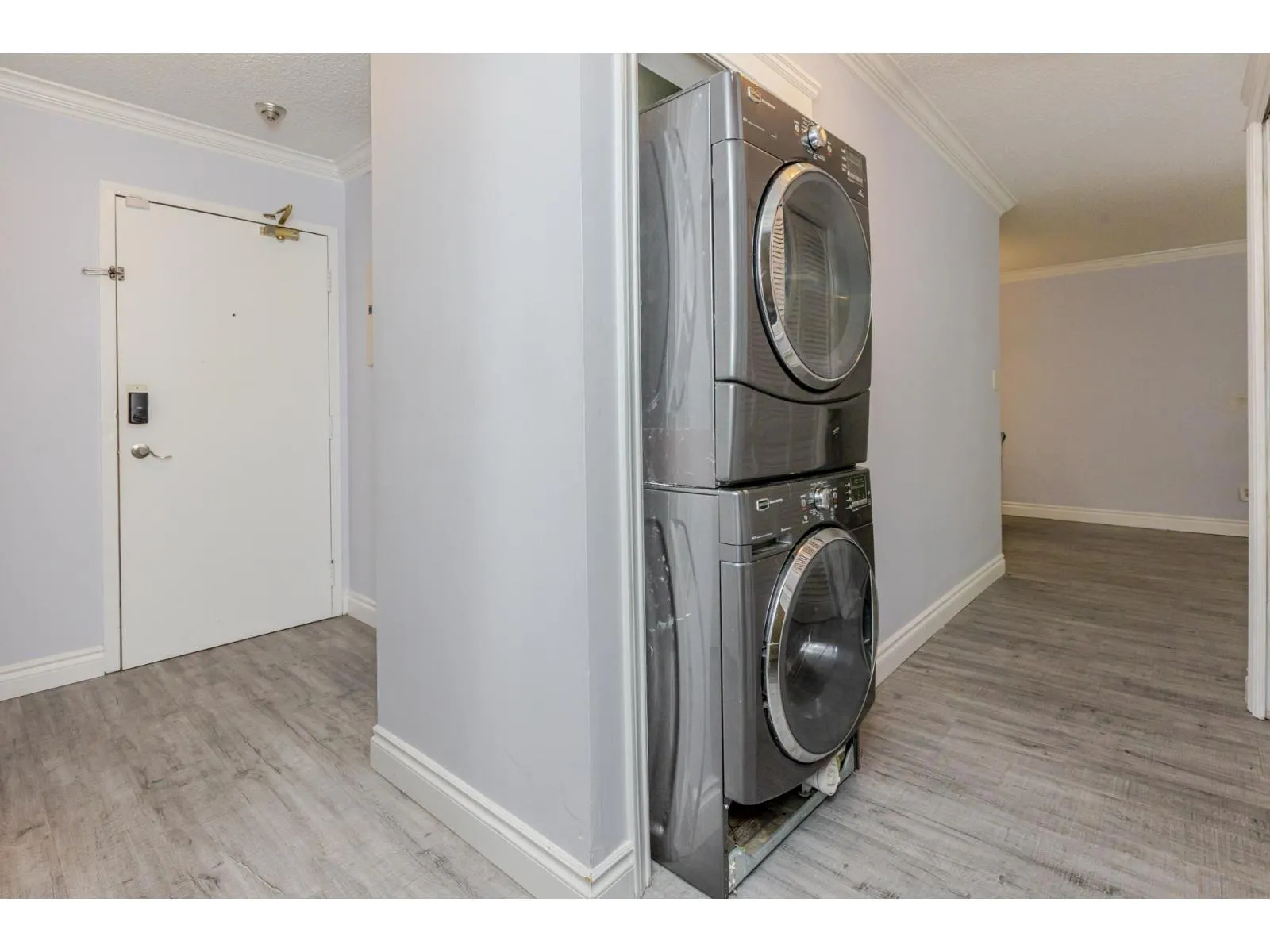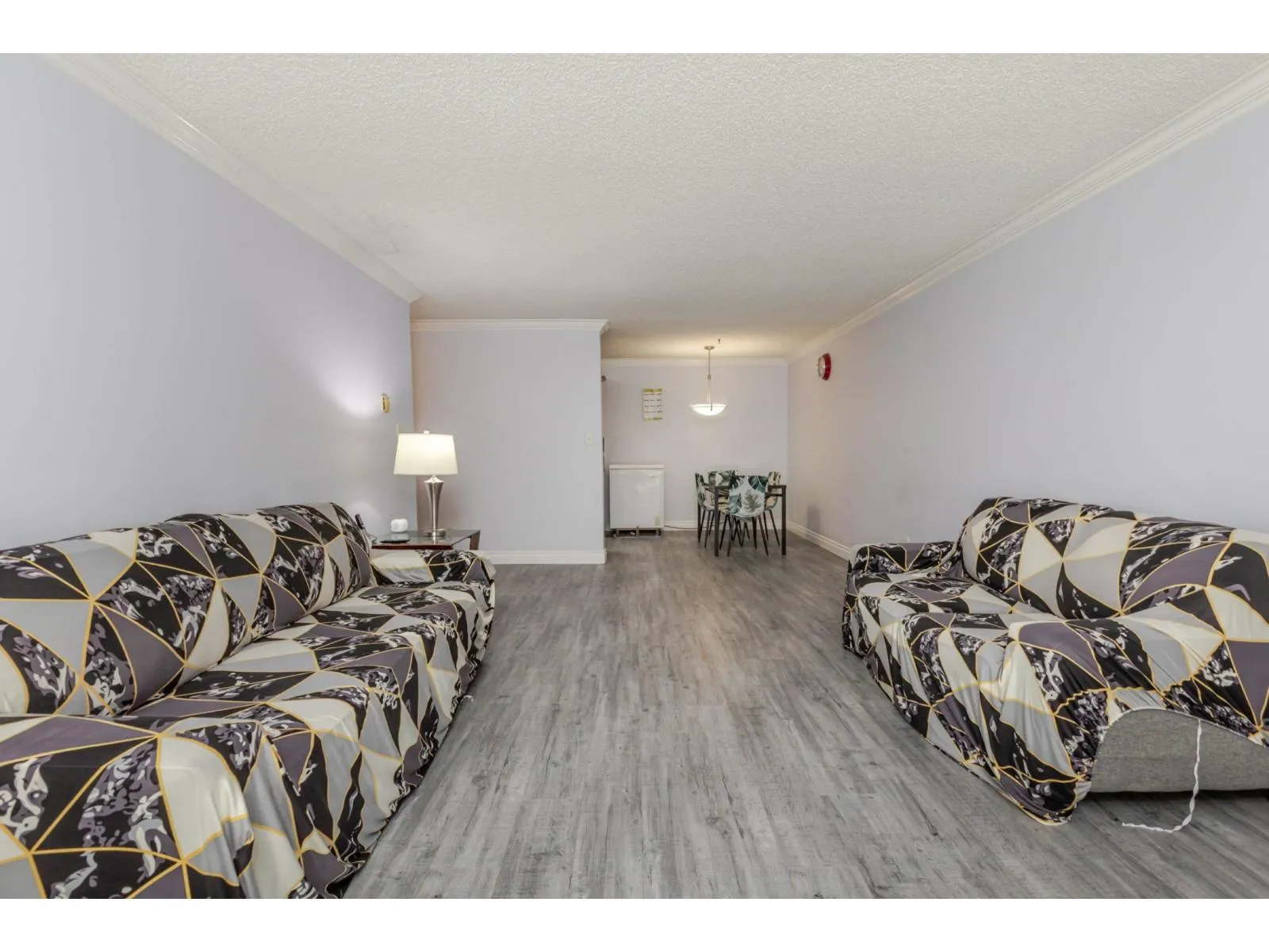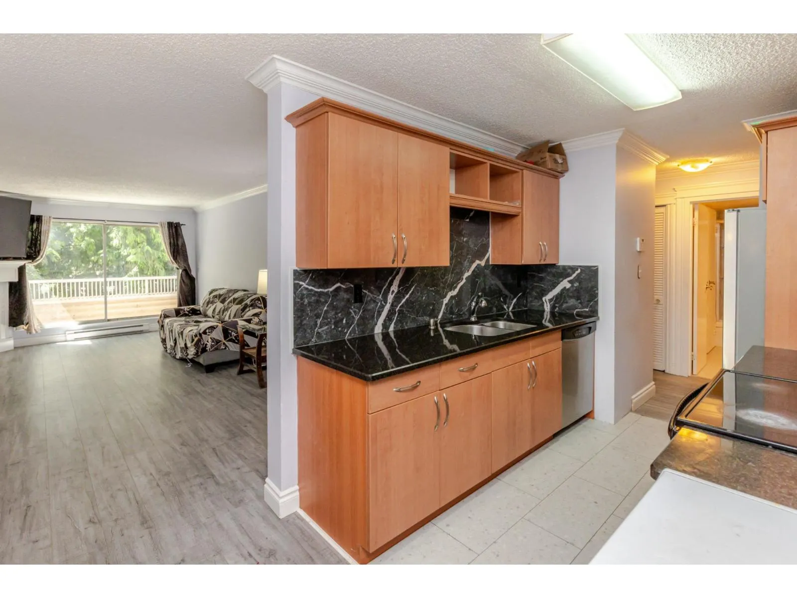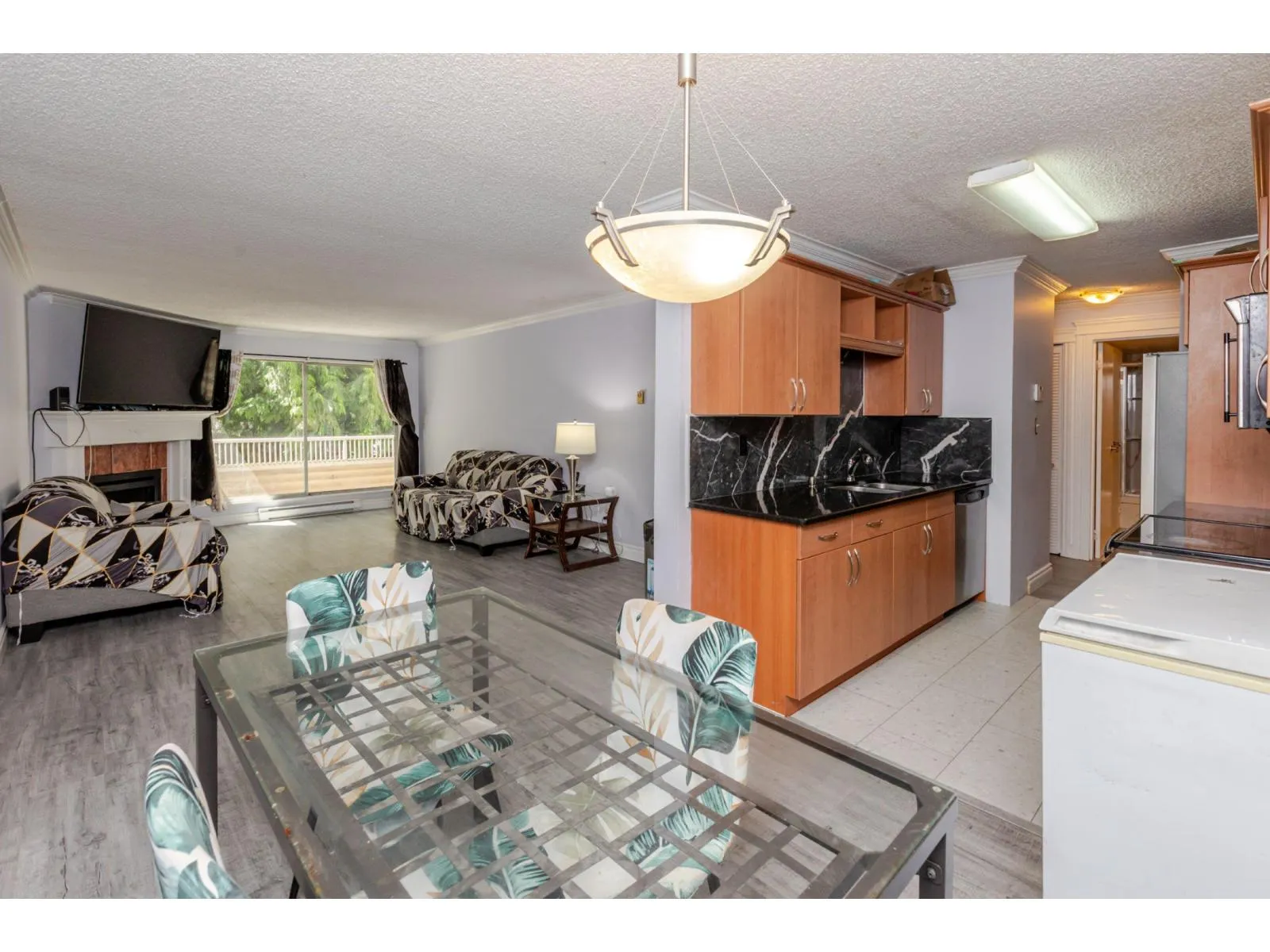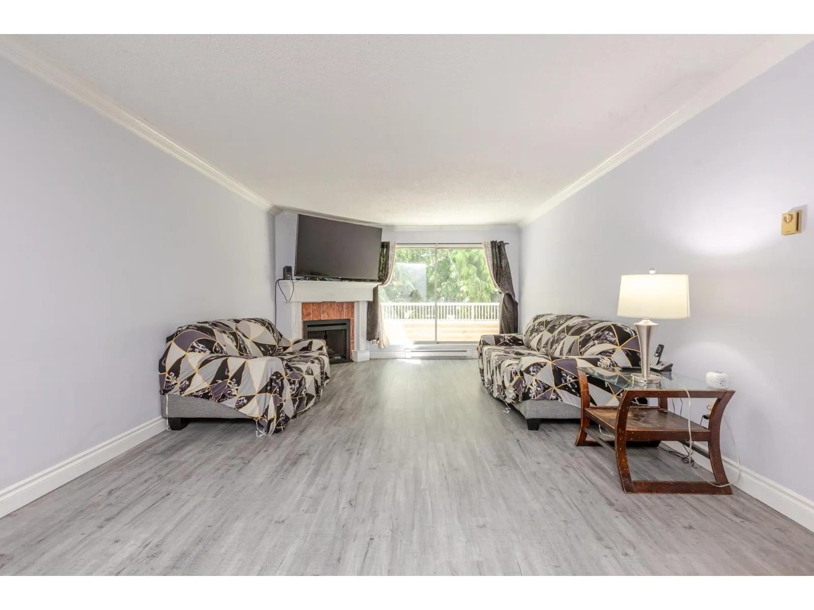 Welcome to the centrally located Parkwoods Fir complex. This nicely renovated 2-bedroom, 1-bathroom condo offers a clean and modern living space. The kitchen features updated cabinets, marble walls, quartz counters, a brand-new stove, and laundry machine. The unit also includes new laminate flooring, fresh paint, updated lighting, and smooth ceilings for a modern touch. Enjoy the cozy gas fireplace in the winter and relax on your private patio in the summer. This family-friendly building is close to shopping, restaurants, schools, parks, Surrey Memorial Hospital, SkyTrain, SFU, and Central City all within a 5-minute walk. Includes in-suite laundry, a storage room, underground parking, and access to shared laundry as well. Call for your Private showing. (id:27476)