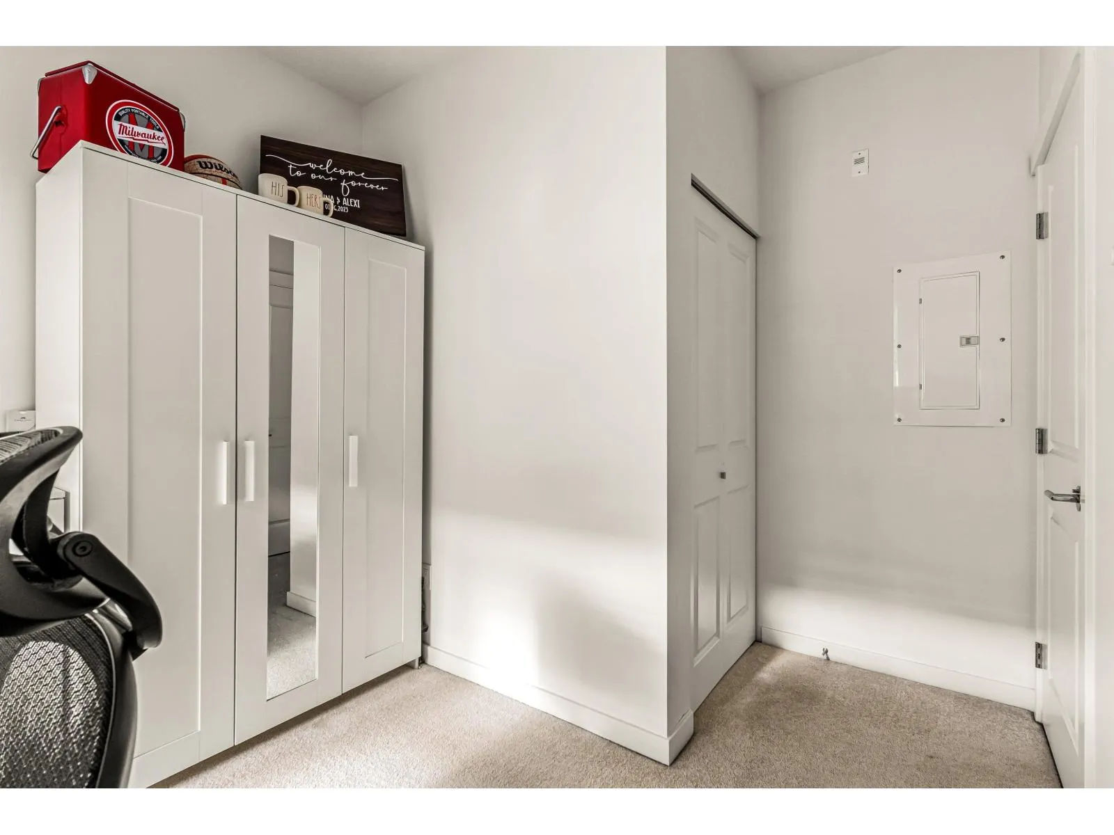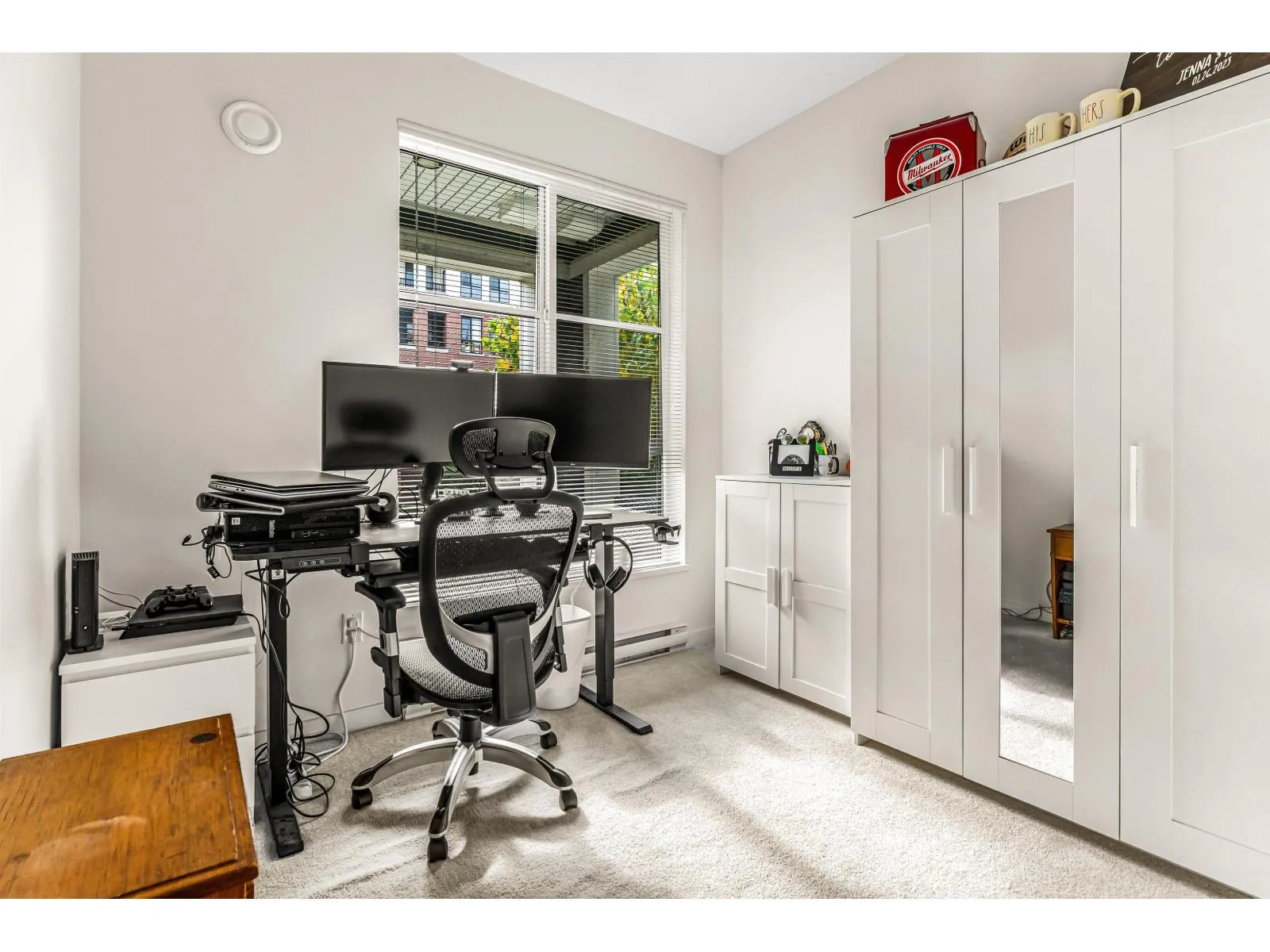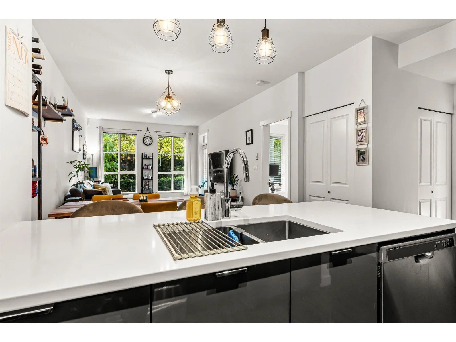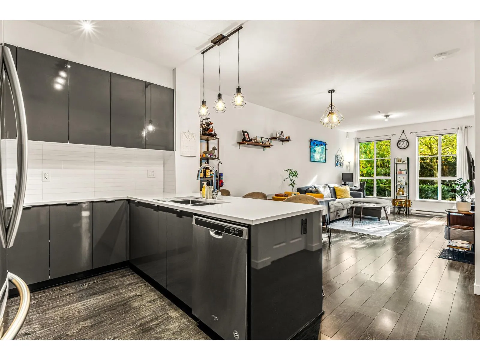 Welcome to Prescott Commons at Harvard Gardens! This bright south-facing 2 bedroom, 1 bathroom home features 9 ft ceilings, stainless steel appliances, stone countertops, gas range, laminate flooring, spa-inspired bathroom, and a walk-in closet. Enjoy a spacious ground-level patio with private street access and SECOND ENTRY from 33rd ave for added convenience. This unit is NOT along the busy 152nd street or 32nd ave so you can enjoy peace and quiet. Includes 2 PARKING STALLS and 1 STORAGE LOCKER. Enjoy resort-style amenities-outdoor pool, hot tub, BBQ area, fire pit, theatre, games room, basketball court, gym, and indoor/outdoor lounges. Surrounded by open green spaces, walking trails, and an outdoor dog wash. Close to Hwy 99, top schools, shopping, dining, golf, and more! (id:27476)