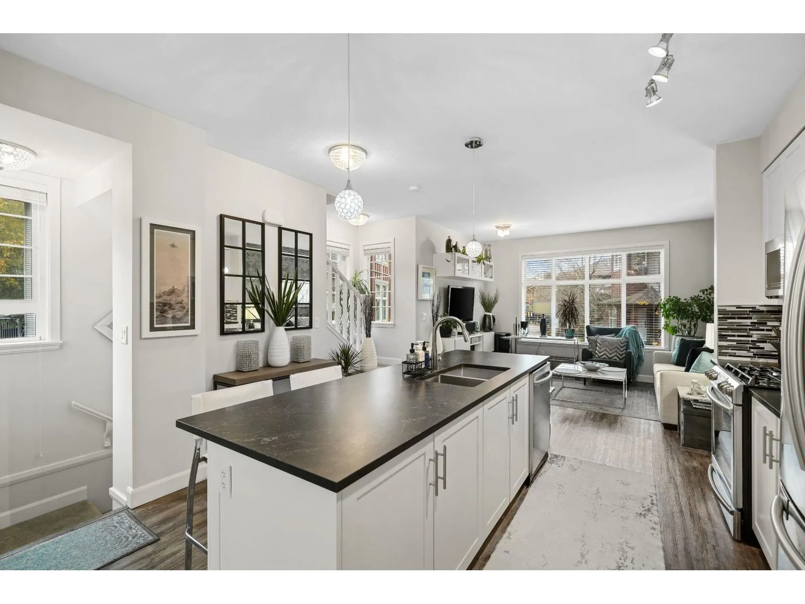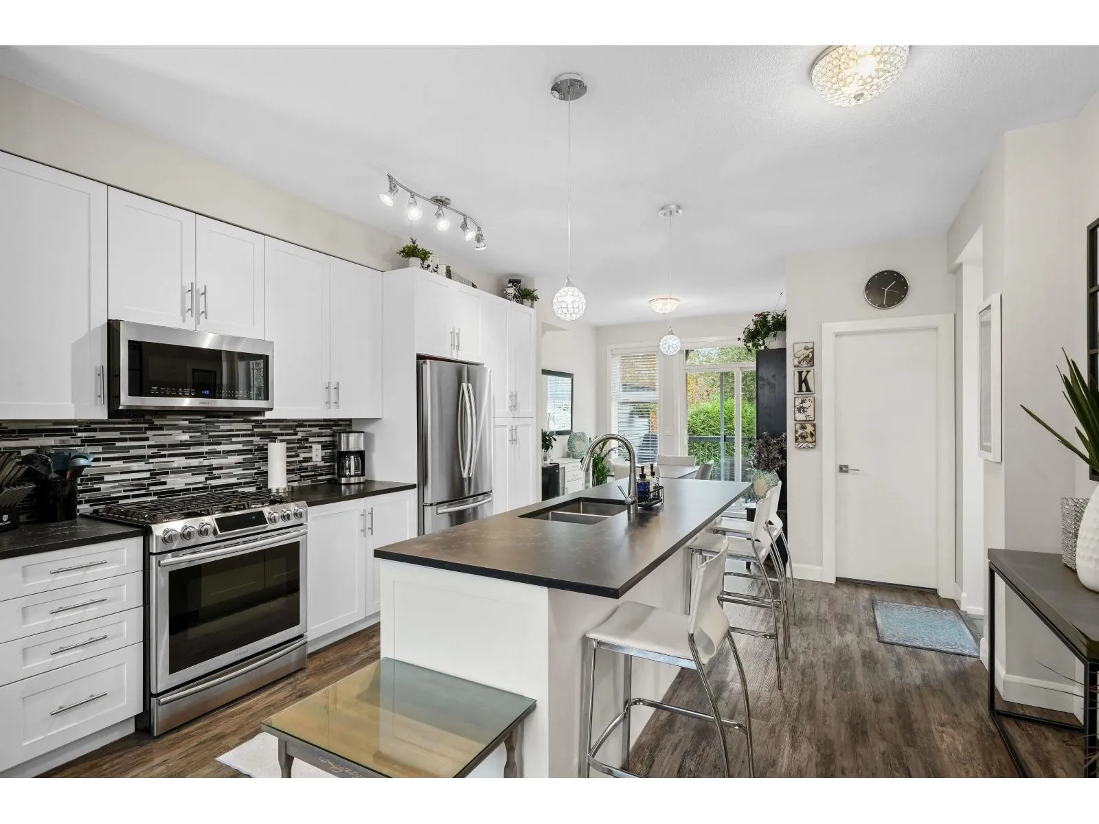 Fully renovated, 2 bed/ 3bath / den, QUIET and bright CORNER unit with BIG SW facing yard in sought after COMPASS. With over 50k renovations, this unit has it all: updated kitchen, bathroom, SS appliances, washer/dryer, modern floors, built in vacuum, new doors and light fixtures. This super spacious 3 level home boasts over 1,378 sq ft of living space, with 2 bedrooms upstairs; main bedroom features large window and walk in closet, nice den/flex room down below and windows throughout unit allowing tons of natural light. Fully fenced yard backs onto greenspace with tons of privacy. Unit is adjacent to walking path which leads to Clayton Park and Clayton Community Center. Complex is centrally located with just few steps away from shopping, recreation, dining, elementary and high school. A MUST SEE !!! (id:27476)