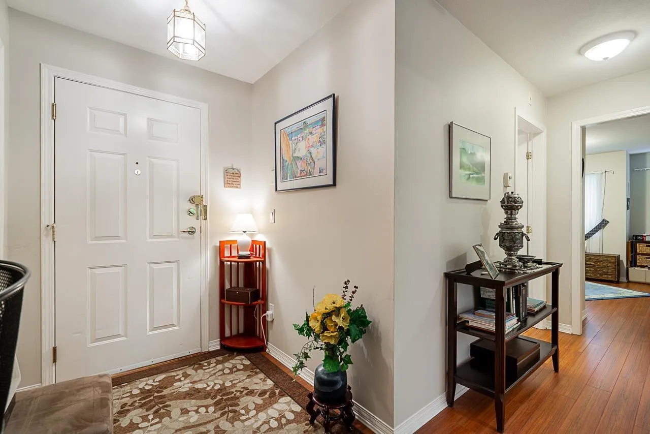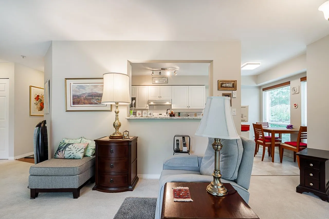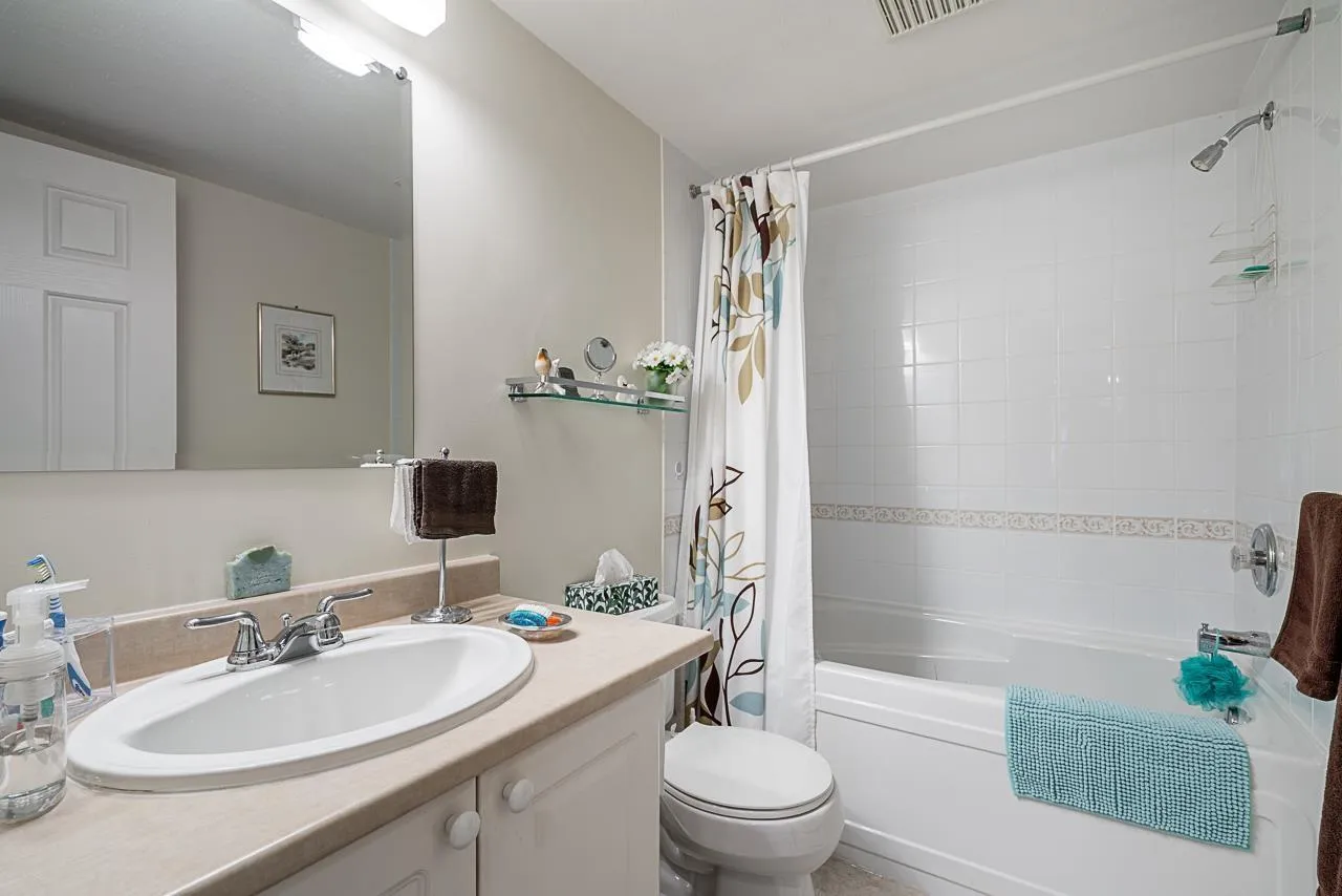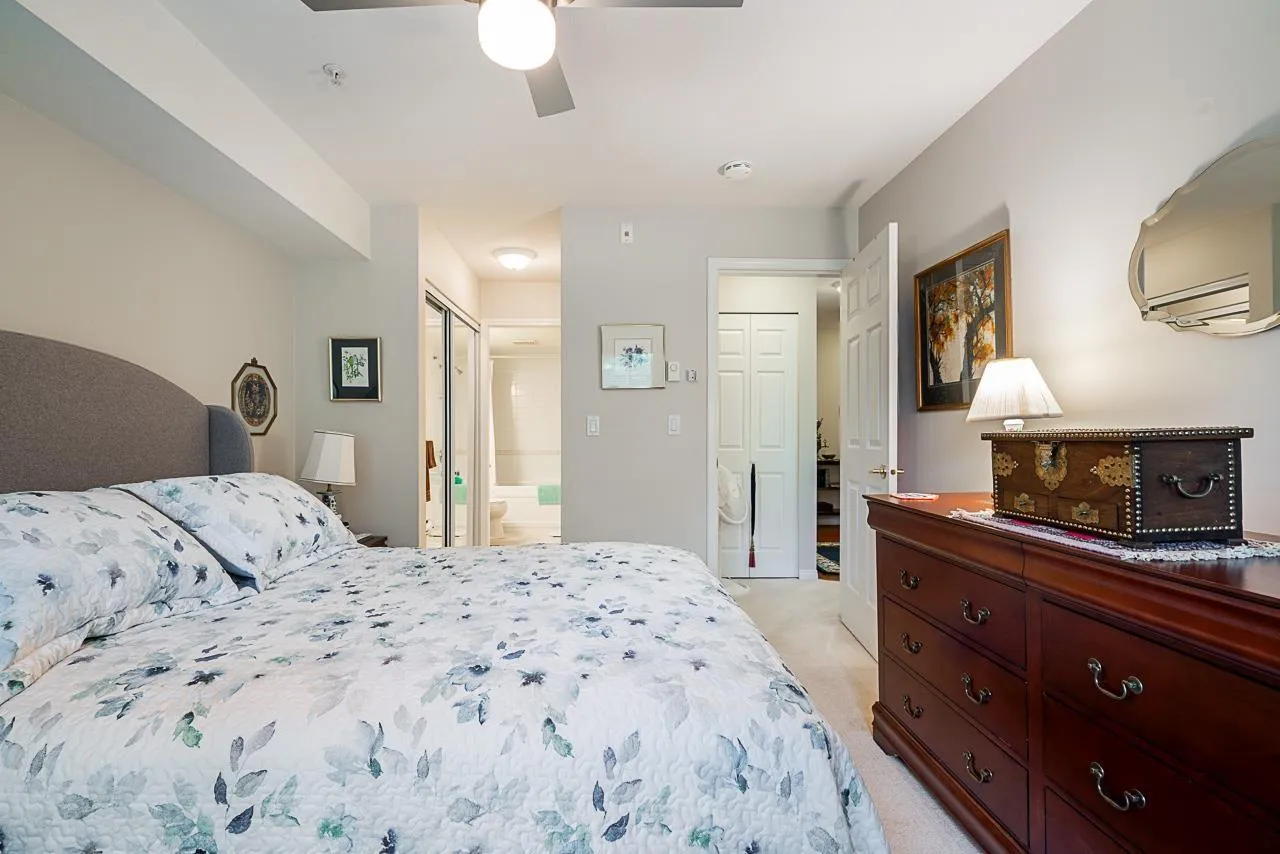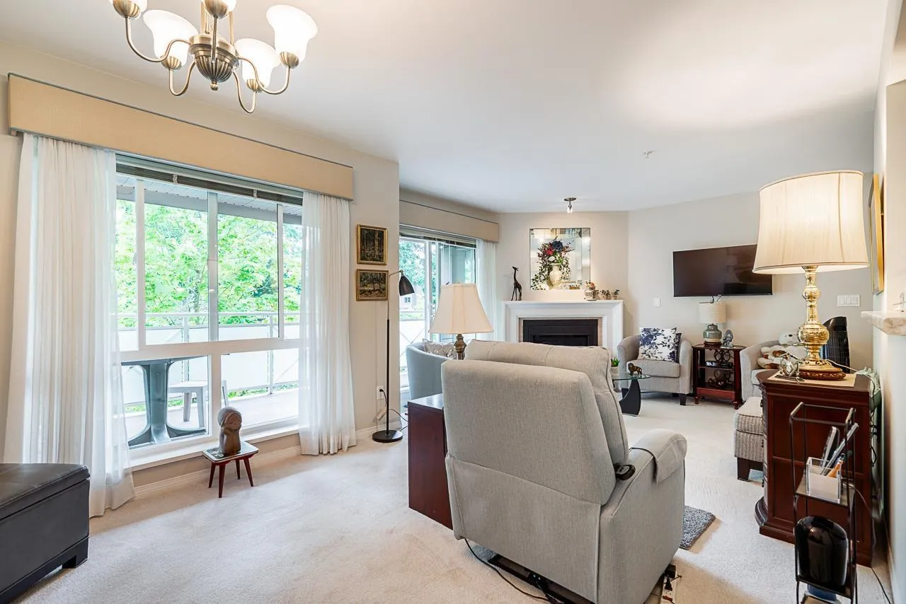 Bright SW facing CORNER with NO UNIT ABOVE! This gorgeous 2bed/2bath feels like a rancher with a sprawling layout featuring XL windows, an abundance of natural light, breakfast nook, tons of closet space and a huge primary bedroom with room for a king bed set. Amazing, central location that is walking distance to all amenities, walking trails and a short drive to WR/Crescent beach with easy access to Hwy99. Enjoy your private, south facing balcony overlooking the quiet courtyard with cherry blossoms in the spring and lush trees in the summer/fall. 2 PARKING spots & 1 storage locker. Strata fee includes gas fireplace & hot water. (id:27476)