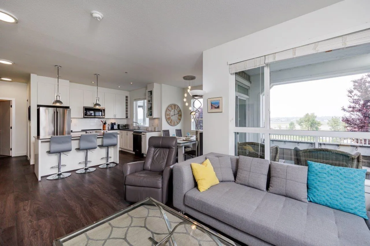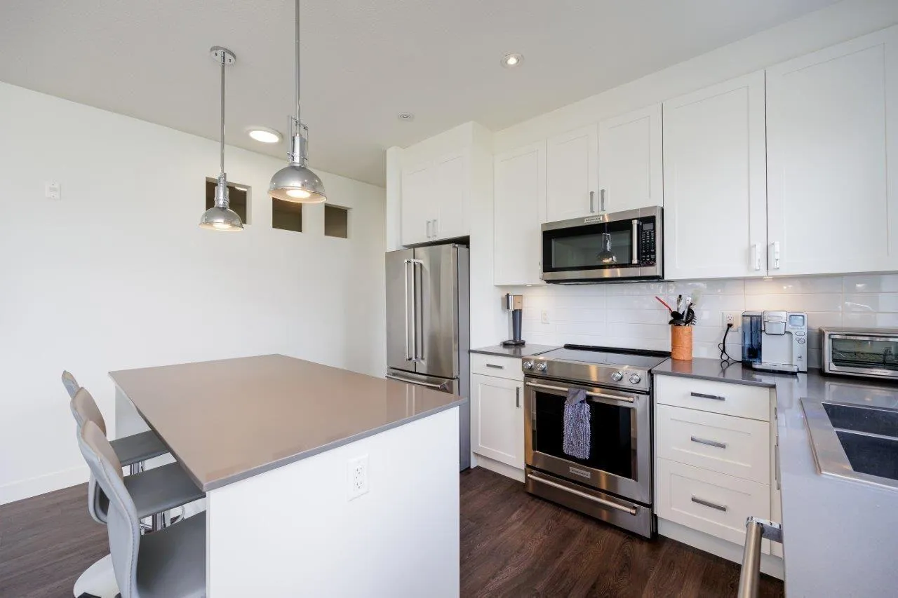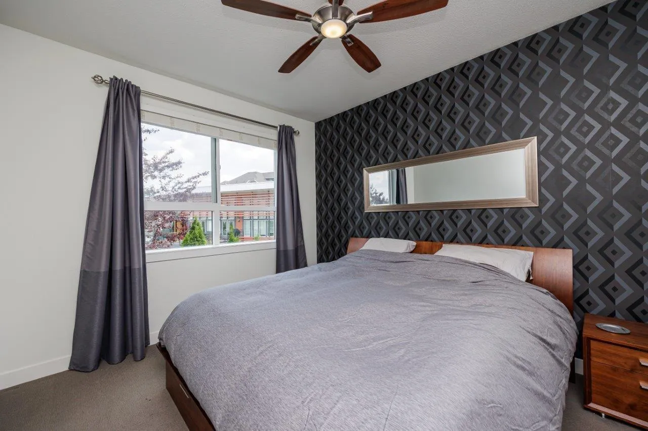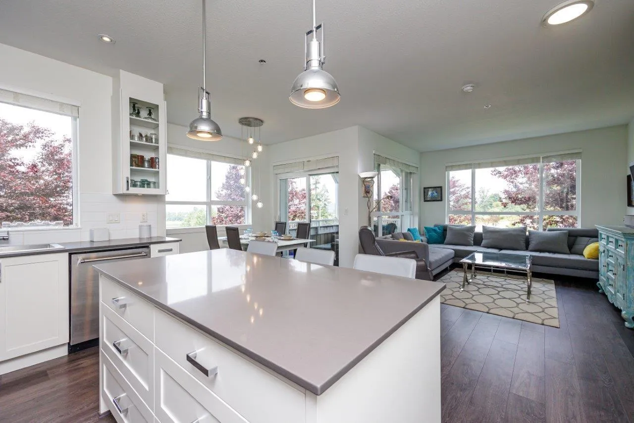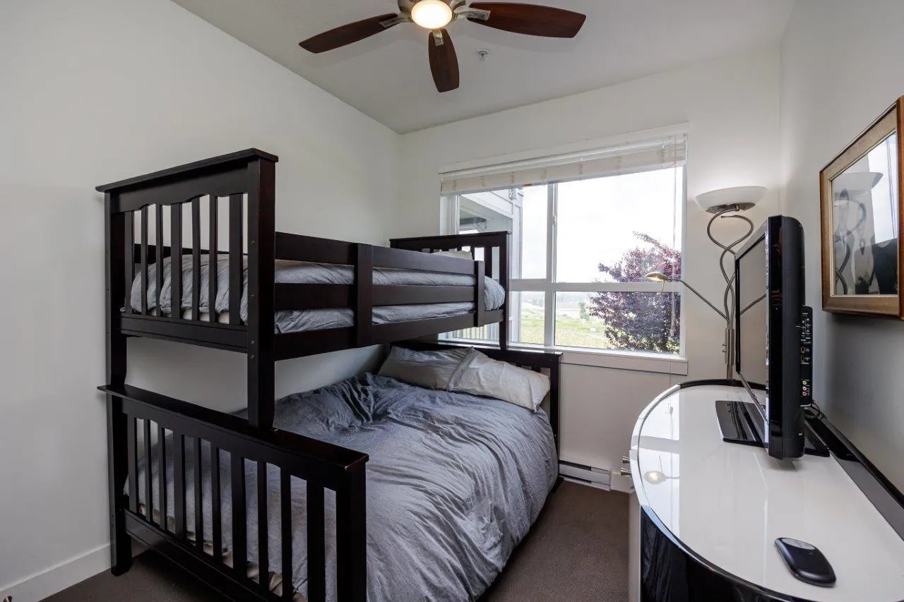 This furnished Surrey condo for rent in Cloverdale offers modern luxuries within a charming countryside lifestyle. With a spacious 1078 Sqft. floor plan, this corner suite boasts 2 bedrooms plus a den and 2 bathrooms, providing ample space for you and your loved ones. Step onto the balcony and immerse yourself in the breathtaking panoramic views of the surrounding farms. The serenity and tranquility of this location will truly captivate you. Inside, you'll find a range of exquisite features that will make you feel right at home. The kitchen showcases elegant granite/stone/quartz countertops and stainless-steel appliances, ensuring a stylish and functional cooking space. The master bedroom is fit for royalty, featuring a king-size bed, a walk-in closet, and a private bathroom. (id:27476)
