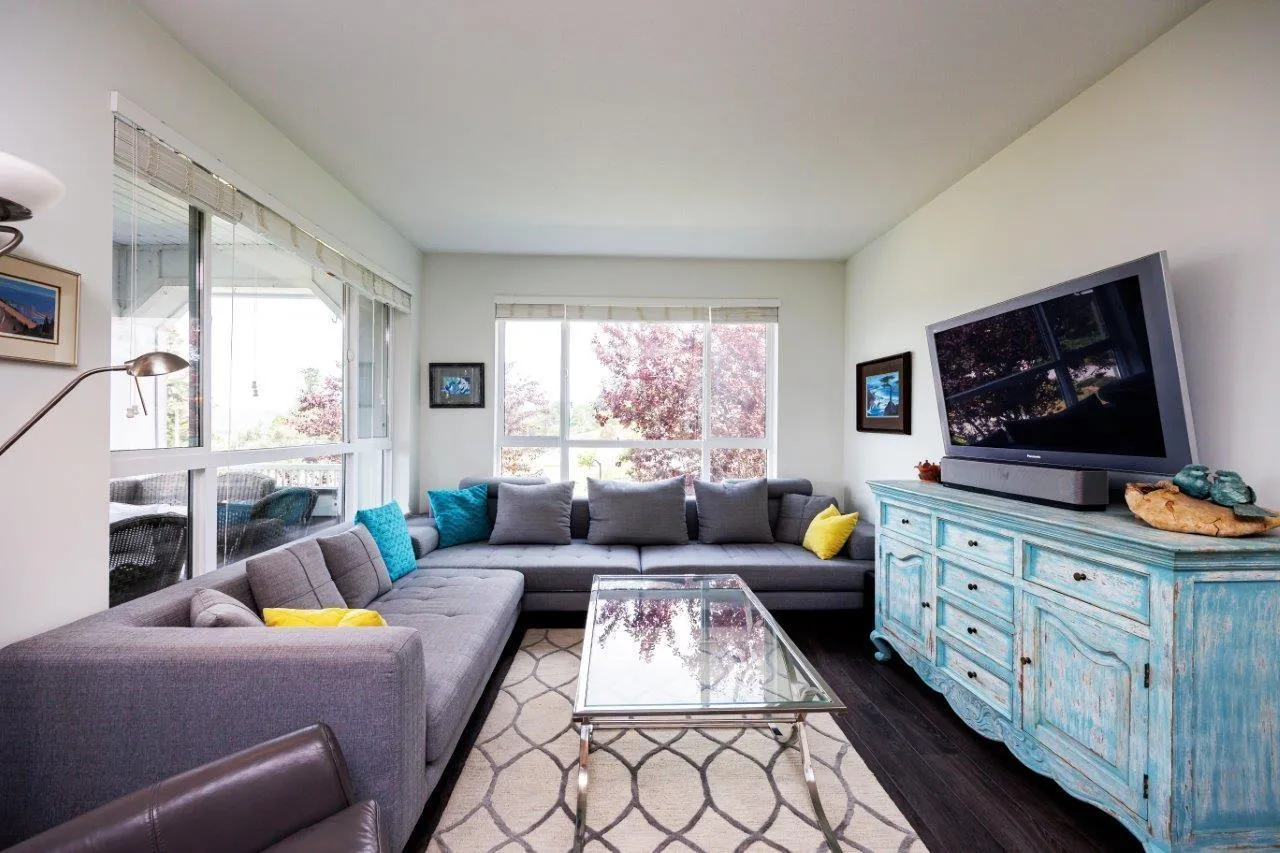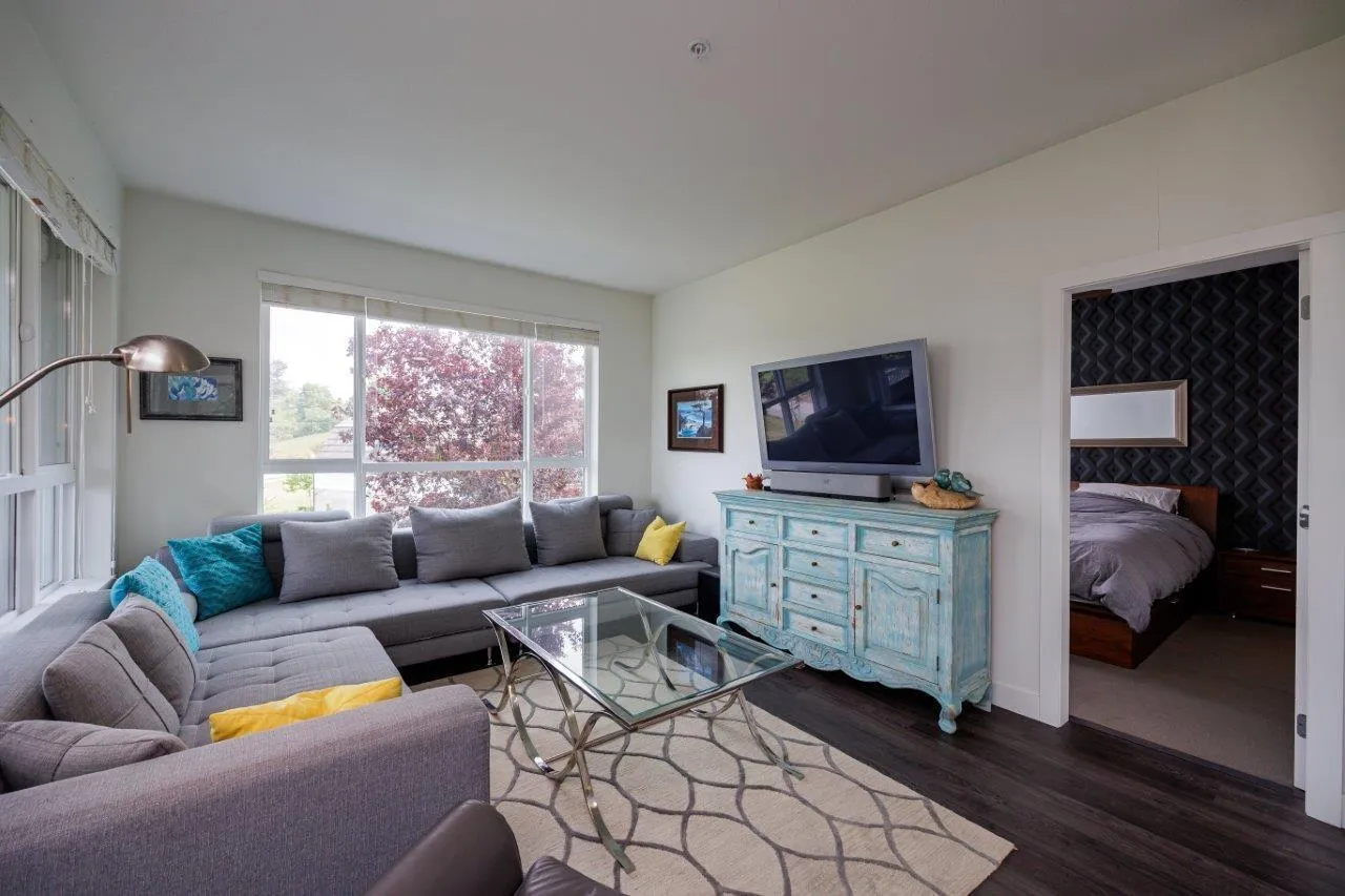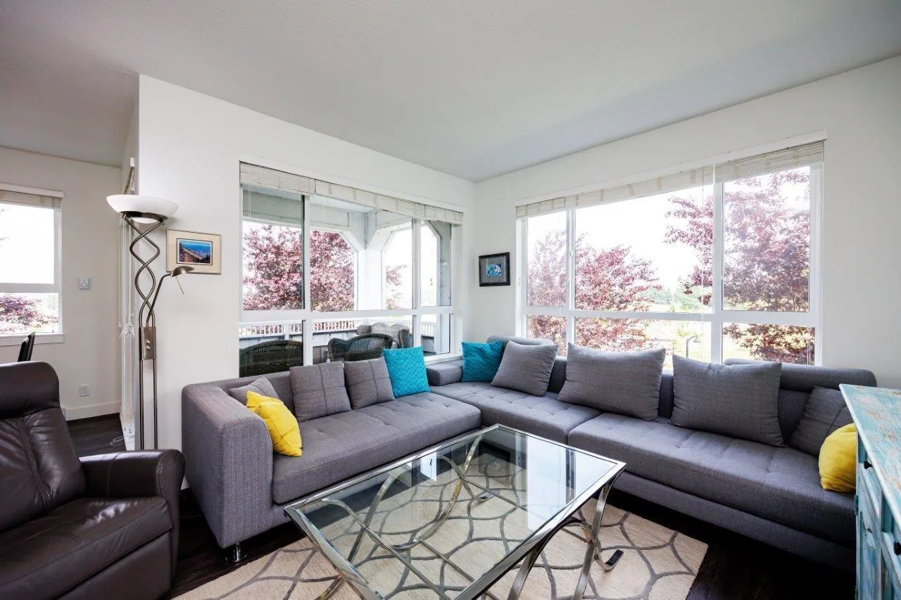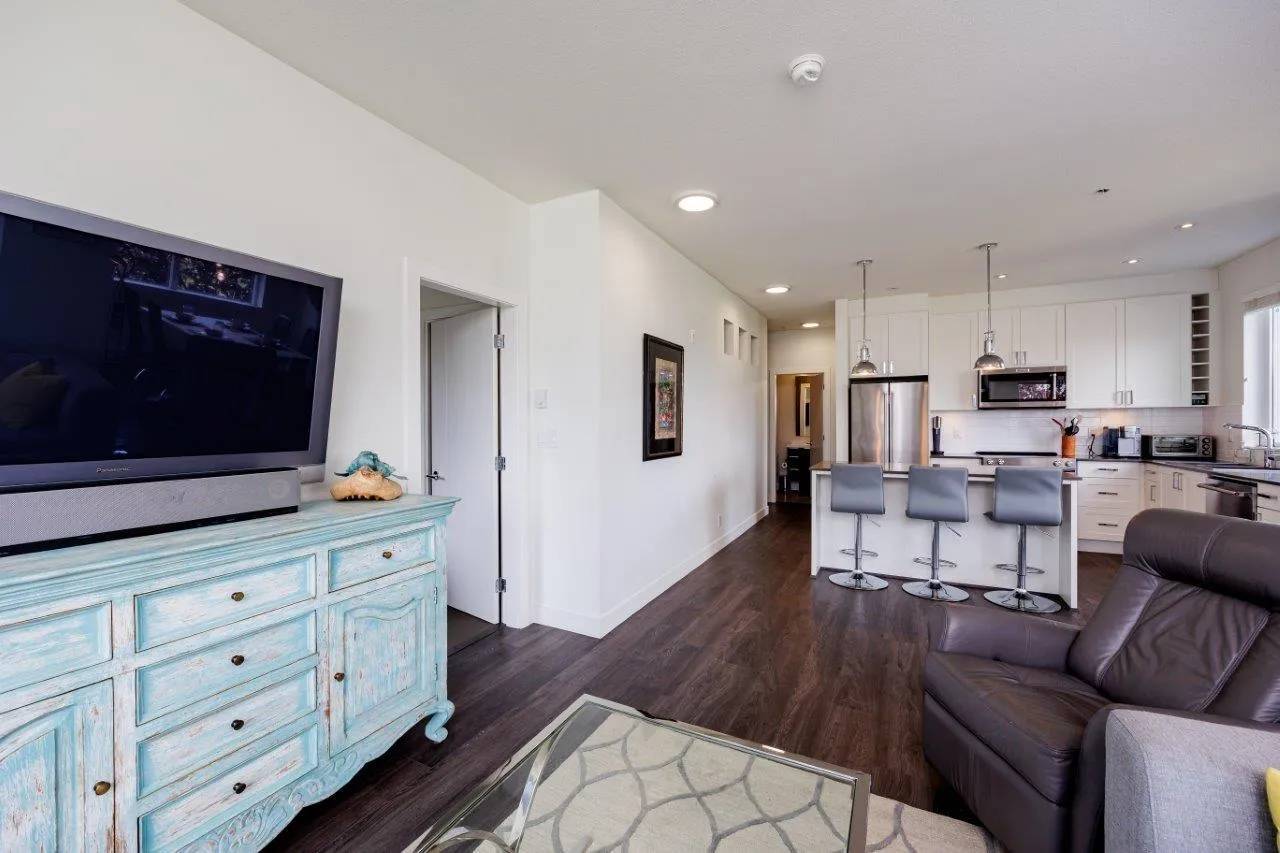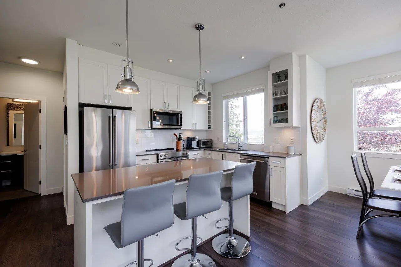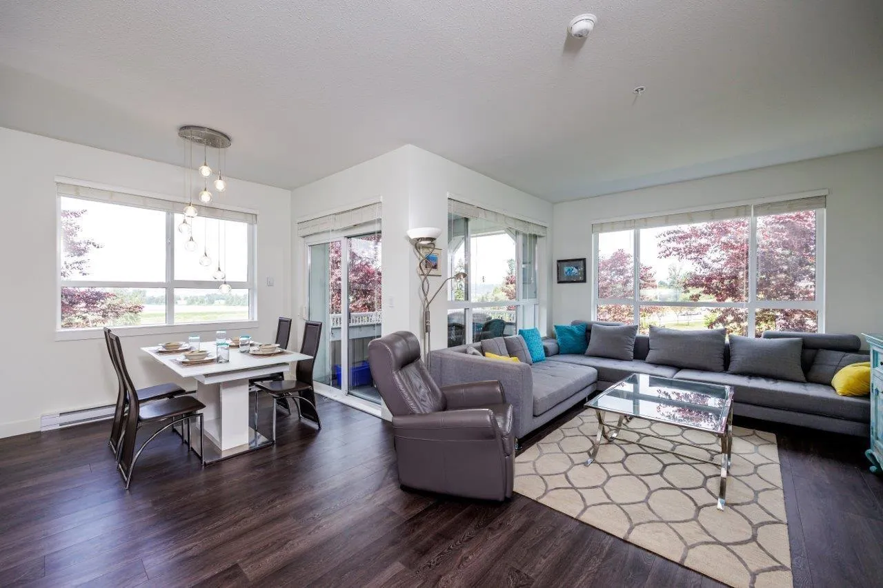 This furnished Surrey condo for rent in Cloverdale offers modern luxuries within a charming countryside lifestyle. With a spacious 1078 Sqft. floor plan, this corner suite boasts 2 bedrooms plus a den and 2 bathrooms, providing ample space for you and your loved ones. Step onto the balcony and immerse yourself in the breathtaking panoramic views of the surrounding farms. The serenity and tranquility of this location will truly captivate you. Inside, you'll find a range of exquisite features that will make you feel right at home. The kitchen showcases elegant granite/stone/quartz countertops and stainless-steel appliances, ensuring a stylish and functional cooking space. The master bedroom is fit for royalty, featuring a king-size bed, a walk-in closet, and a private bathroom. (id:27476)