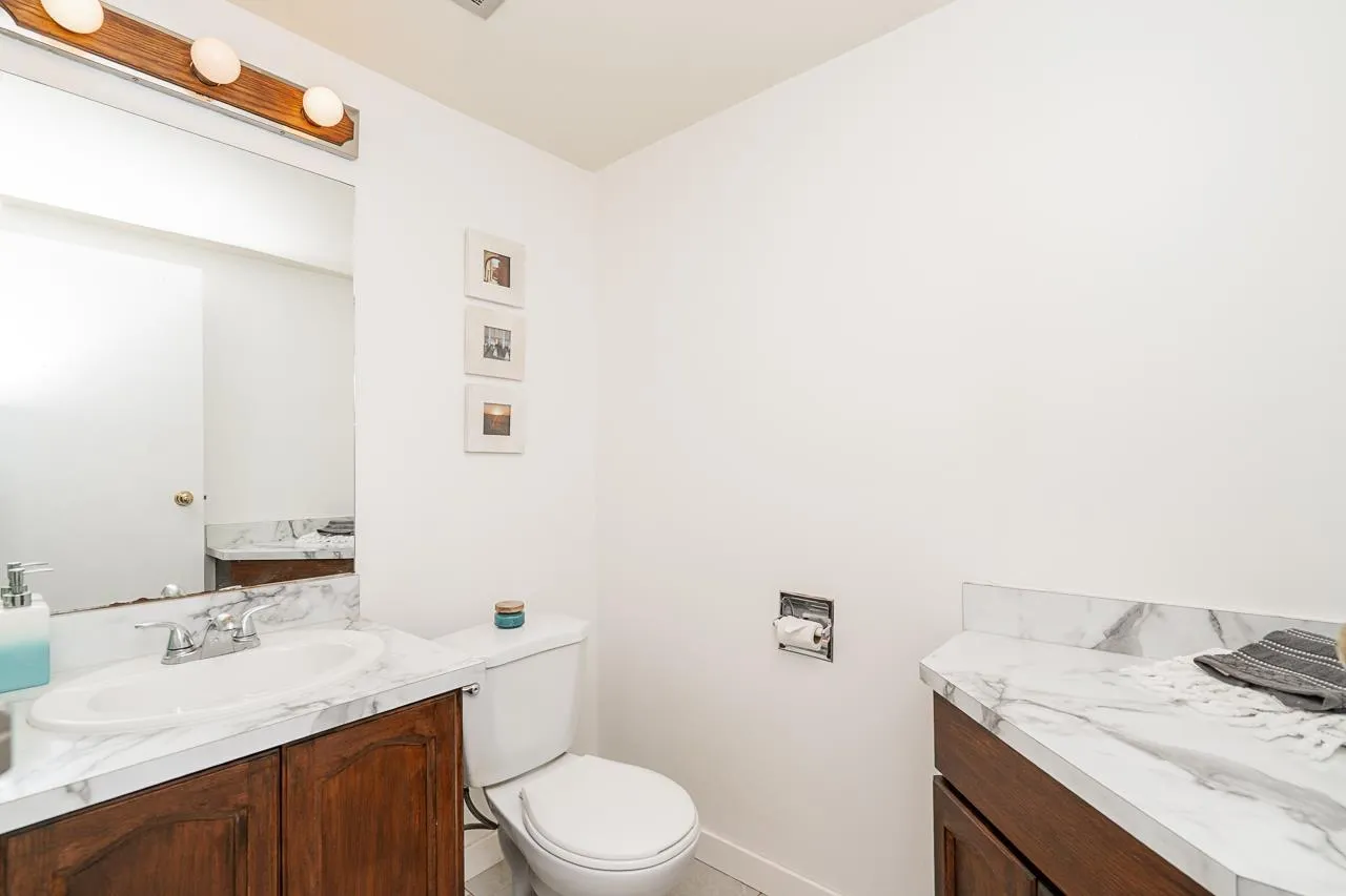 Welcome to Bonnydoon Village! This spacious 2 bed, 2 bath townhome offers 1190 sq,ft of living space in a well-run, family-friendly complex. The main level features a bright, open-concept living/dining area, updated kitchen, powder room, and access to your private fenced yard-ideal for kids, pets, and entertaining. Upstairs includes two generous bedrooms and a full bath. Enjoy amenities like a swimming pool, sauna, and greenspace. Walking distance to Kirkbride Elementary, L.A. Matheson Secondary, transit, and parks. Rentals and pets allowed. Hurry on this one! (id:27476)