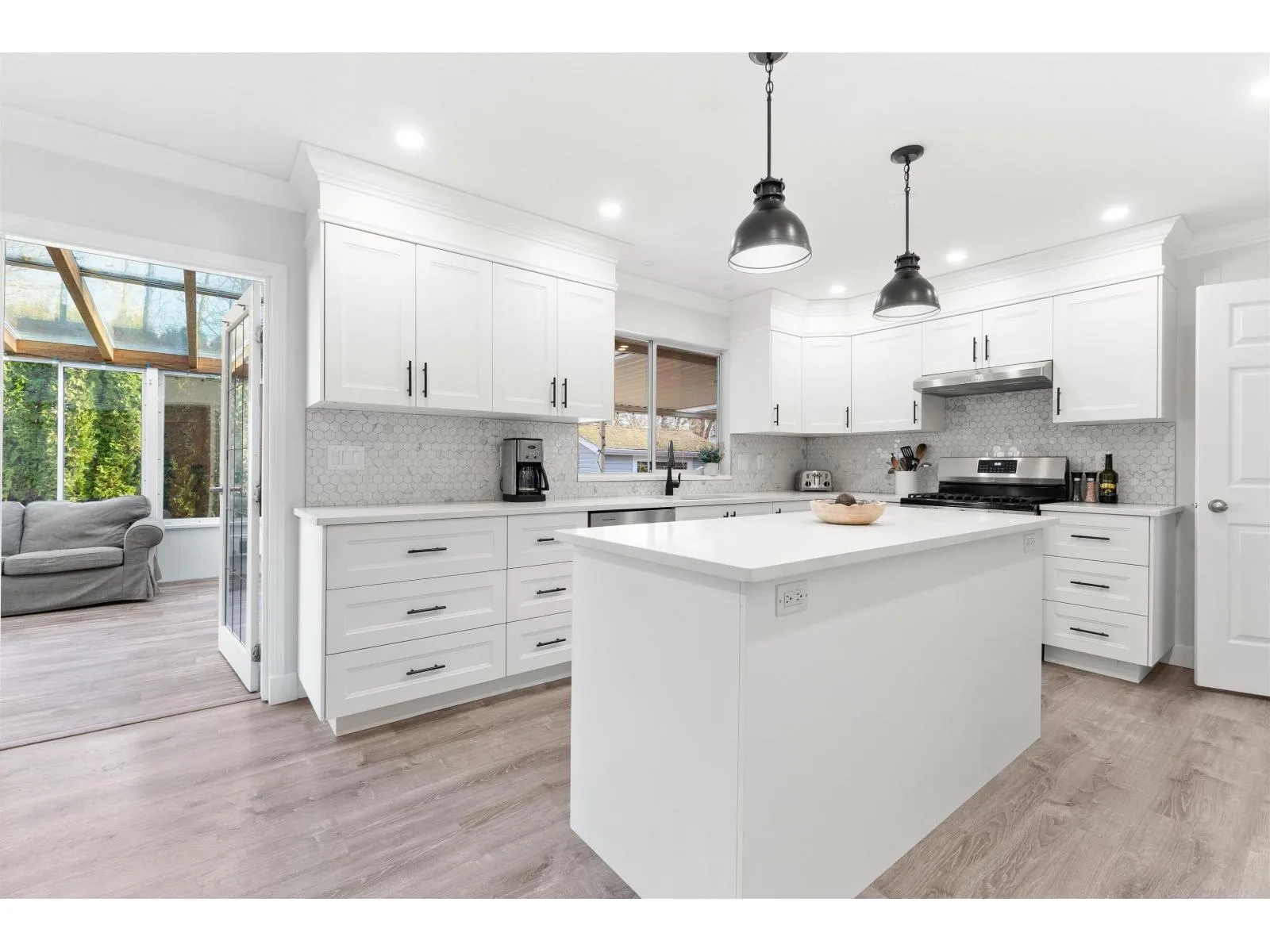Measurements APPROXIMATE - BUYER to verify if important. Nestled in a quiet cul-de-sac in the sought-after Fleetwood area of Surrey, this charming 3-bedroom, 1 den, 2.5-bath home is perfect for families. The updated kitchen features sleek quartz countertops, a gas stove, and modern finishes, making it a chef's dream. A bright solarium offers the perfect space to relax and enjoy year-round natural light. The freshly painted exterior adds to the home's curb appeal, while the spacious backyard provides endless possibilities for outdoor fun and relaxation. Conveniently located close to top-rated schools, beautiful parks, and local shops, this home combines comfort with convenience. AC, large crawl space, sprinkler system, central vacuum, gas BBQ hookup, covered patio & more! (id:27476)