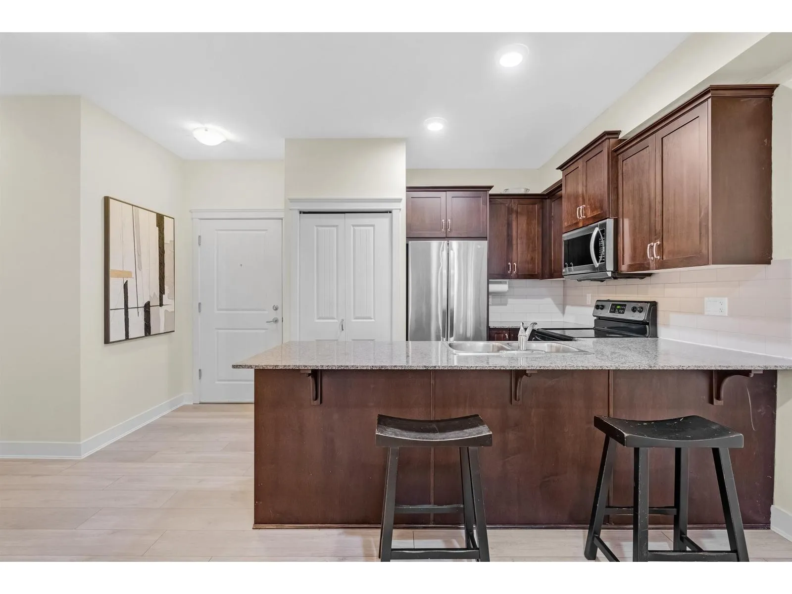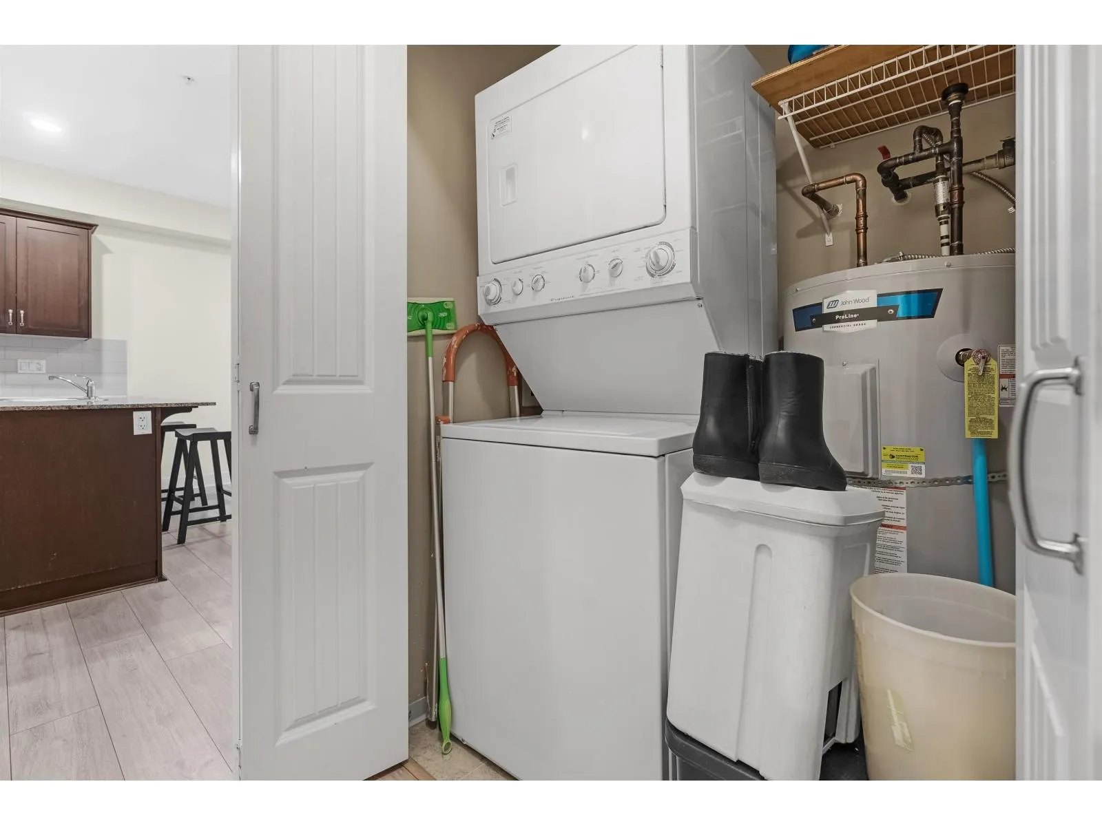 Revisit the West on the Village Walk by Wallmark! This beautiful and well-maintained 2 bed, 2 bath ground-floor home includes 2 parking stalls and 2 storage lockers. Enjoy a functional layout with 9-ft ceilings, updated flooring, and a spacious patio with direct street access. The kitchen features granite countertops, shaker cabinets, stainless steel appliances, and a breakfast counter. Freshly painted with upgraded bathrooms, this move-in ready home is perfect for pet lovers and those who value a walkable, active lifestyle close to shops, cafes, and all conveniences. A must-see! OPEN HOUSE on Saturday 2-5pm! (id:27476)