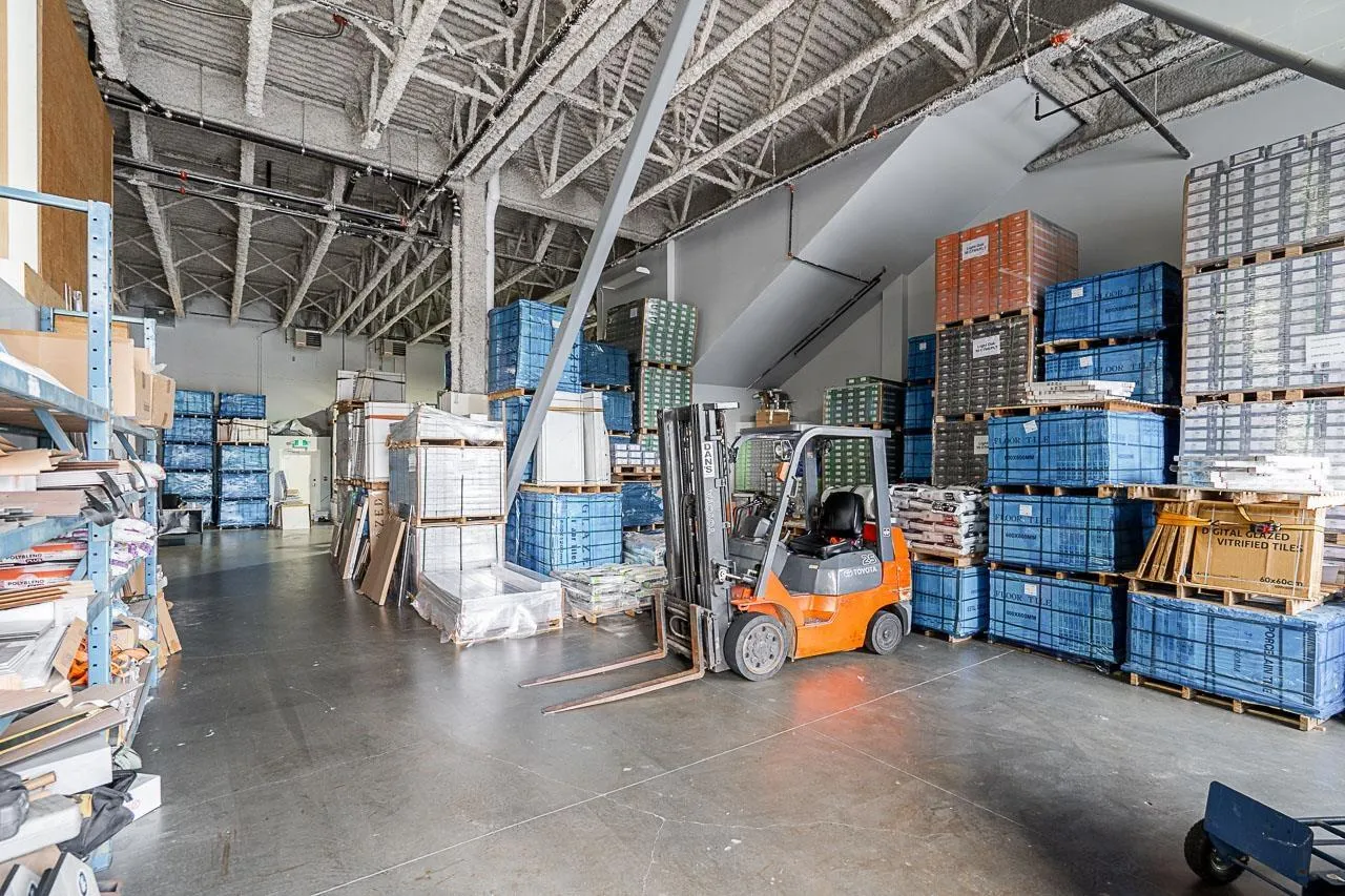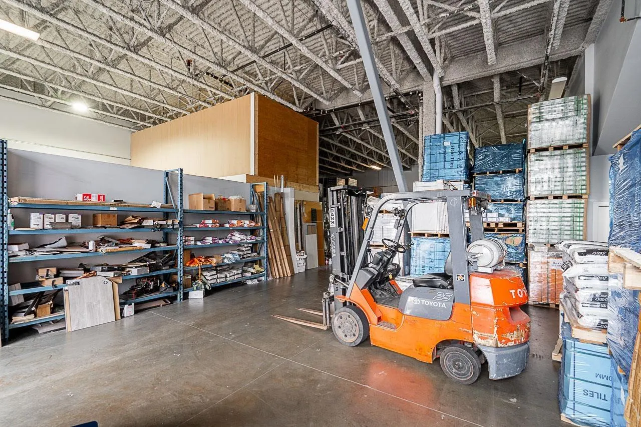A 3,071 sq. ft. light-industrial corner unit in a well-established trade plaza at 84 Avenue & 132 Street-one of Surrey's most active industrial hubs. The property offers strong visibility, convenient access, and steady customer traffic from prominent anchor tenants within a business-friendly environment. The unit includes a grade-level bay door, open-span layout, and generous ceiling height for efficient workflow and flexible warehouse use. Existing racking may be retained to enhance storage, and a built-in office provides functional space for administration. Ideal for wholesale, logistics, construction supply, or other trade-related operations, this space delivers excellent connectivity to major transportation routes and the scalability to support business growth. Can be combined with adjacent Unit 101 for expanded operations. (id:27476)