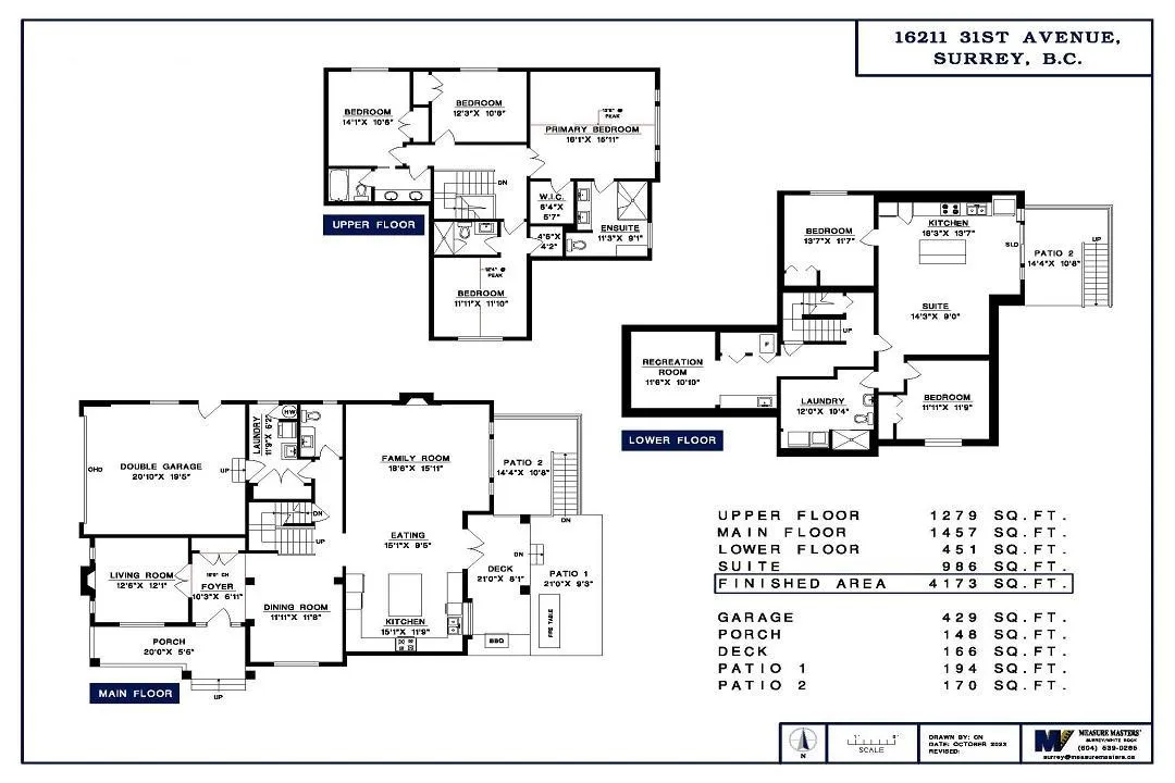 Morgan Acres Corner Property, quiet cul-de-sac executive home. Three levels, vacant 2 bdrm suite below. Total SF 4,173, craftsman design. Great room floor plan on main floor.+ 2 bedroom suite in Basement w/laundry- Numerous updates 2022-23, new A/C. Traditional 4 bedrooms & three full bath at 1,279 SF upstairs. Spacious main floor at 1,457 SF inc: all new flooring, 2 new gas f/places, formal dining rm/living room, large new white kitchen w/ island 2022 & quality appl pkg. Eating area & family rm w/ outdoor access, both open & covered . Grassed fenced backyard w/ outdoor built in BBQ wall & custom fire table. Dbl garage + parking for 4 cars in driveway/ has EV. Floor plan + brochure w/ updates. Close to Morgan Creek Golf Course. Easy access transit & commuting. Digital brochure available. (id:27476)