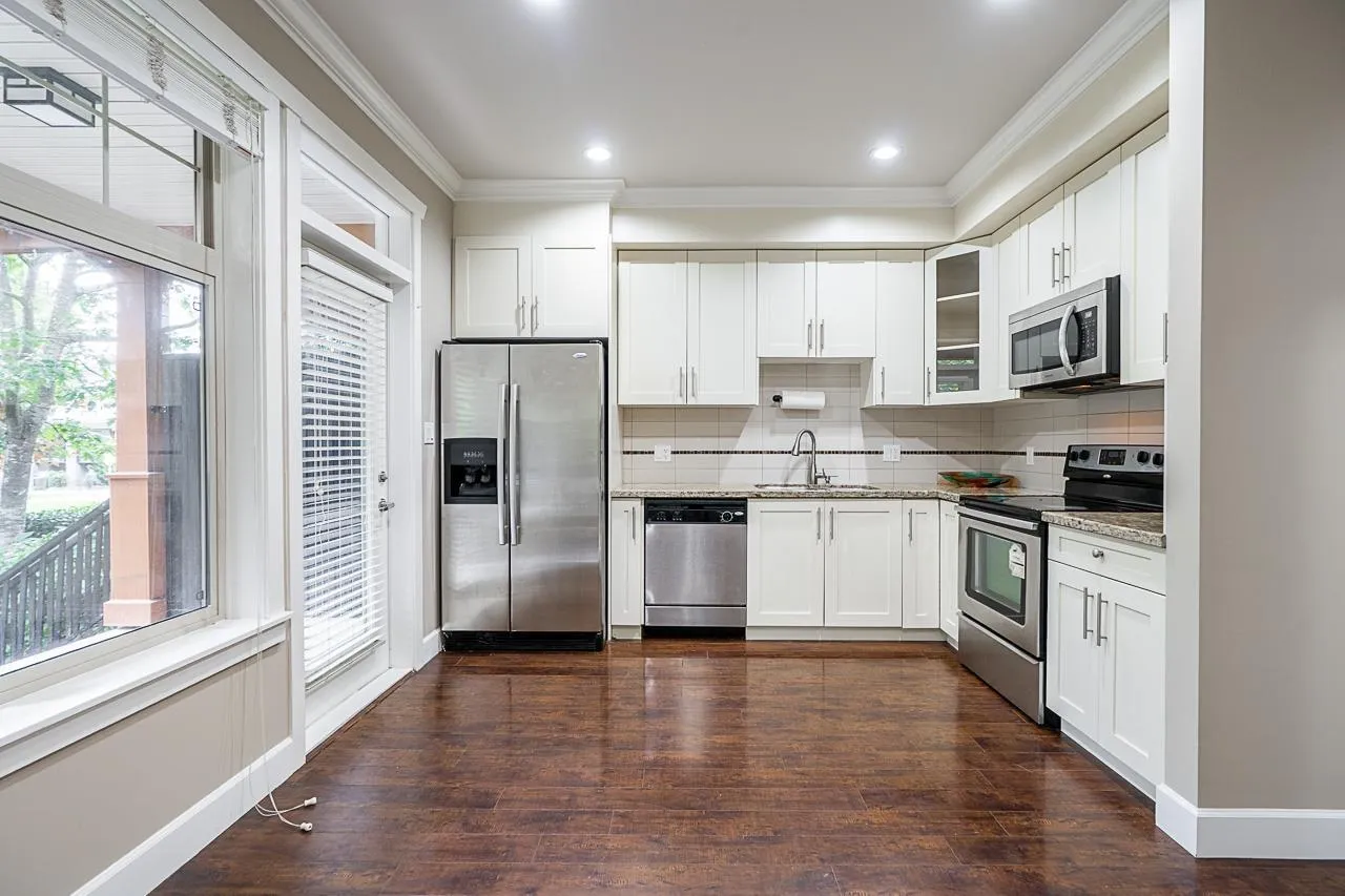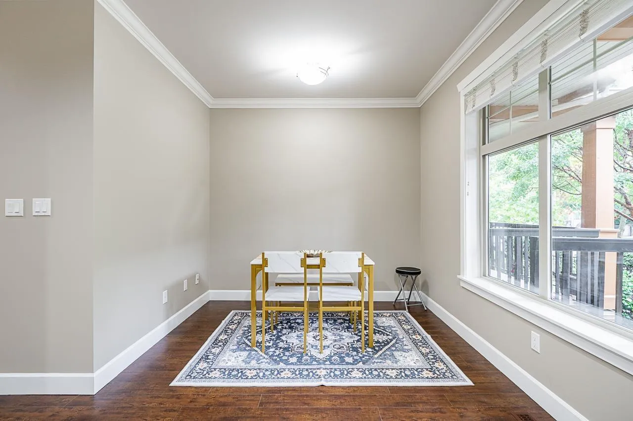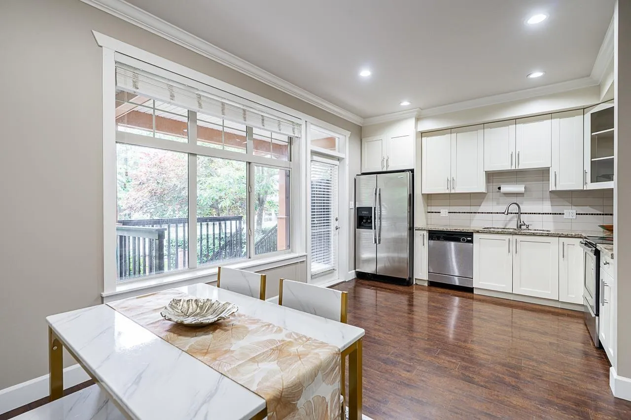 OpenHouse November 8th & 9th 2-4pm Fully renovated 3-bed + flex townhome in Dub Villa! Updates include new laminate floors, stairs, kitchen, and fresh paint throughout incl. bedrooms, bathrooms, kitchen, baseboards & trims. Bright open layout with 9' ceilings, large windows & spacious living room. Granite counters, stainless steel appliances, balcony off kitchen & main floor powder room. Upstairs offers 3 bedrooms & 2 full baths. Quiet location on the private side with fenced yard, surrounded by trees. Private entrance from 66 Ave gives a single-house vibe. Steps to Scott Rd shops, transit, temples, Hwy 10/91/99, parks & schools. Vacant Property. easy to view. (id:27476)