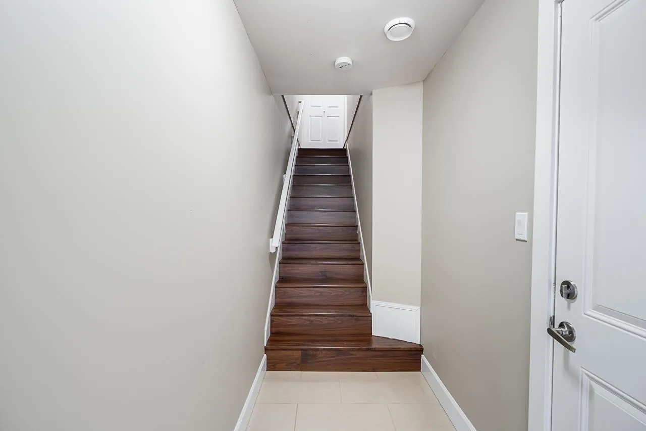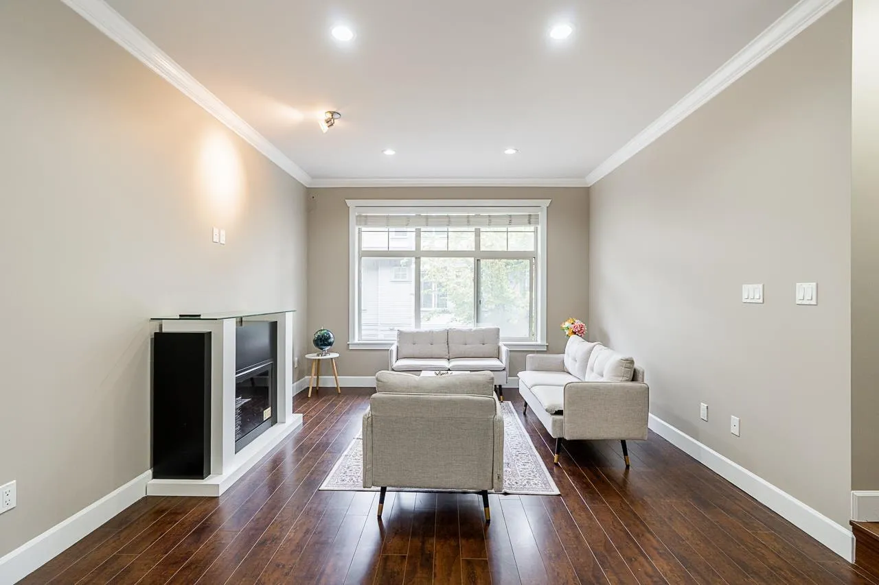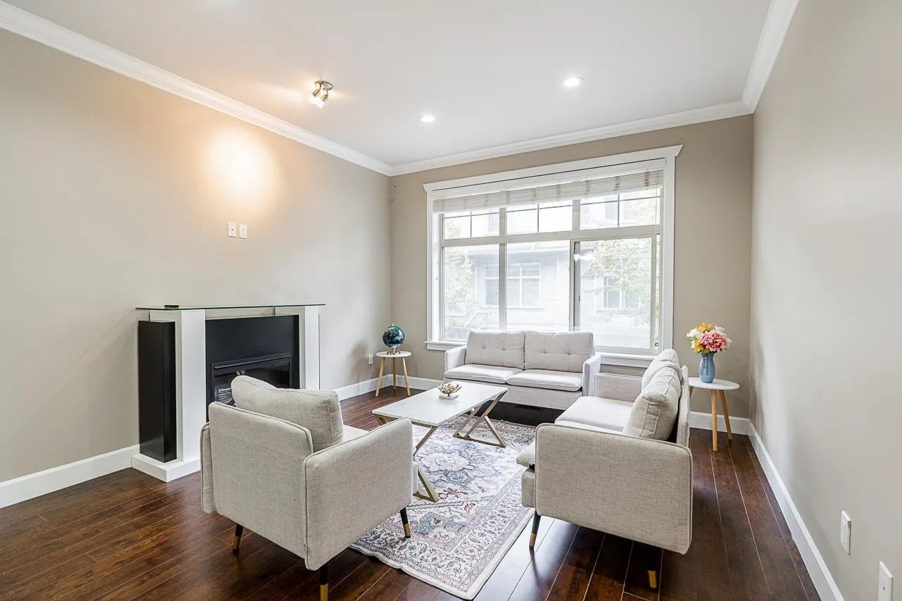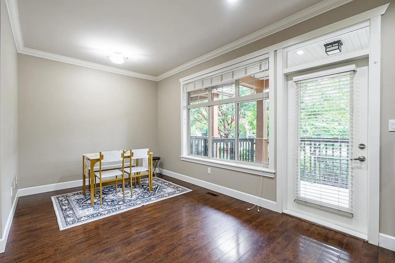 OpenHouse November 8th & 9th 2-4pm Fully renovated 3-bed + flex townhome in Dub Villa! Updates include new laminate floors, stairs, kitchen, and fresh paint throughout incl. bedrooms, bathrooms, kitchen, baseboards & trims. Bright open layout with 9' ceilings, large windows & spacious living room. Granite counters, stainless steel appliances, balcony off kitchen & main floor powder room. Upstairs offers 3 bedrooms & 2 full baths. Quiet location on the private side with fenced yard, surrounded by trees. Private entrance from 66 Ave gives a single-house vibe. Steps to Scott Rd shops, transit, temples, Hwy 10/91/99, parks & schools. Vacant Property. easy to view. (id:27476)