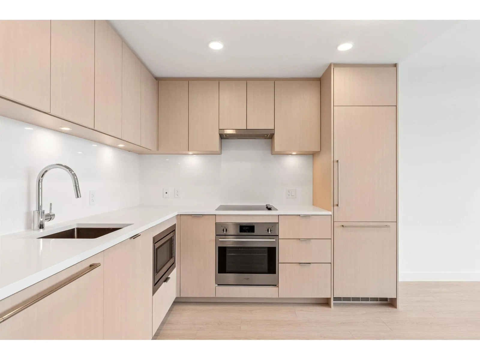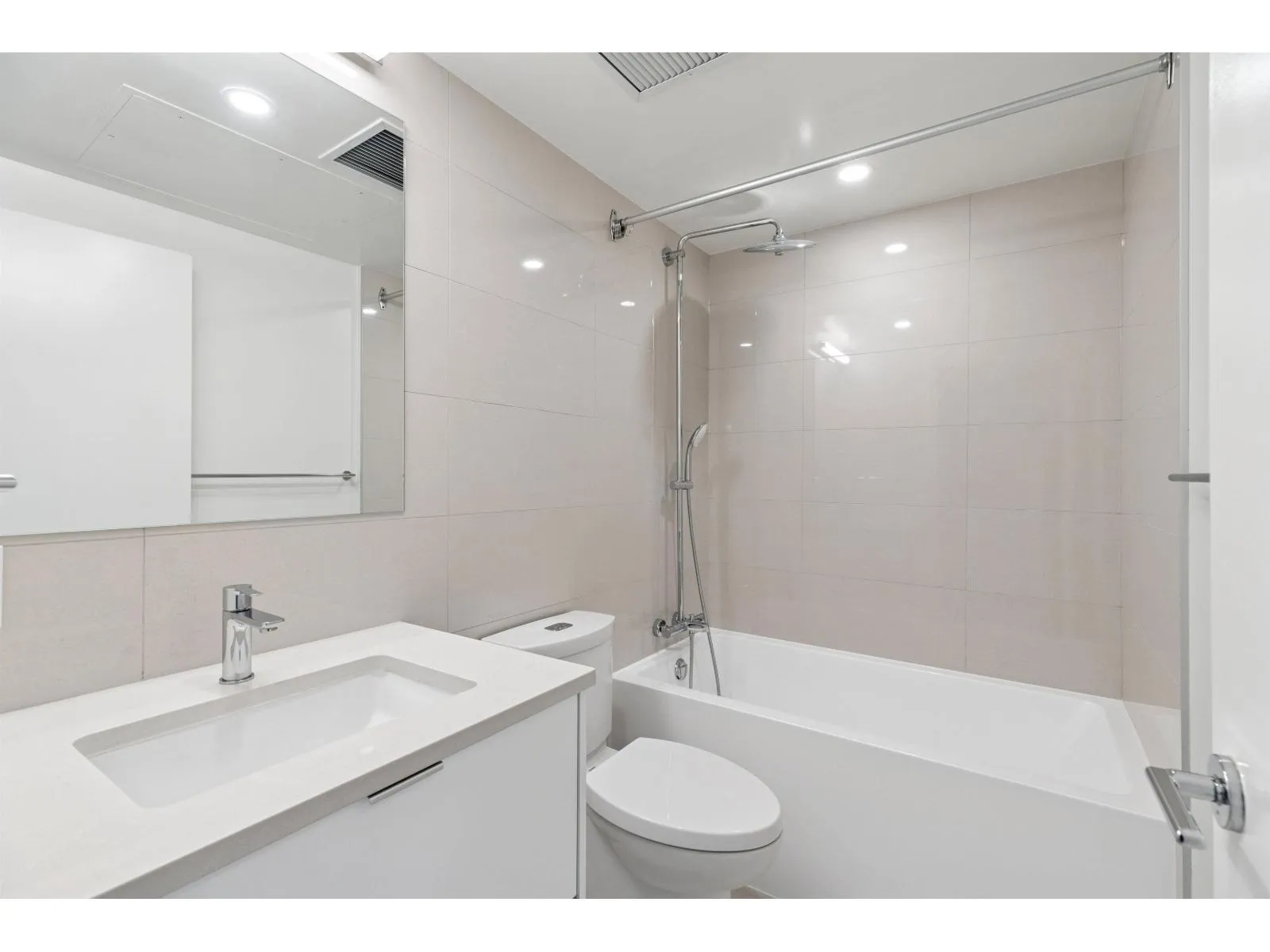 Welcome to Flamingo One, the newest icon in Surrey Central by renowned builder ITC. This bright and beautifully designed one-bedroom residence offers contemporary living with premium integrated appliances, elegant quartz countertops, sleek flat-panel cabinetry, and wide-plank flooring throughout. Enjoy year-round comfort with air conditioning and a heat pump, plus an expansive covered balcony that extends your living space. AMAZING AMENITIES -- curated amenities include a fireside lounge, BBQ terrace, social room with full kitchen, hobby studio, state-of-the-art fitness centre, theatre, children's play area, and dog park. Ideally located just five minutes from Gateway SkyTrain, shops, 1 EV parking and 1 Storage locker included! (id:27476)