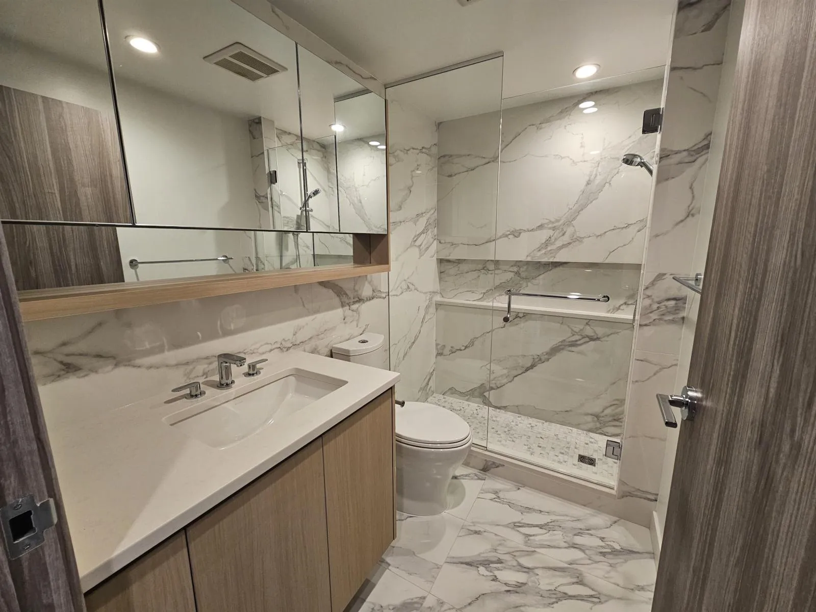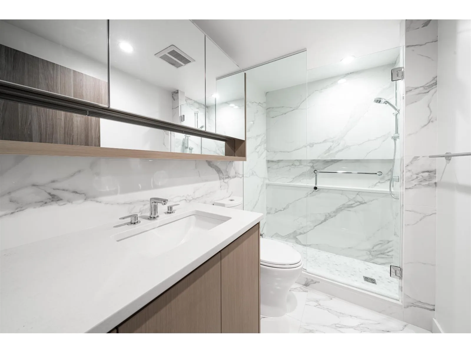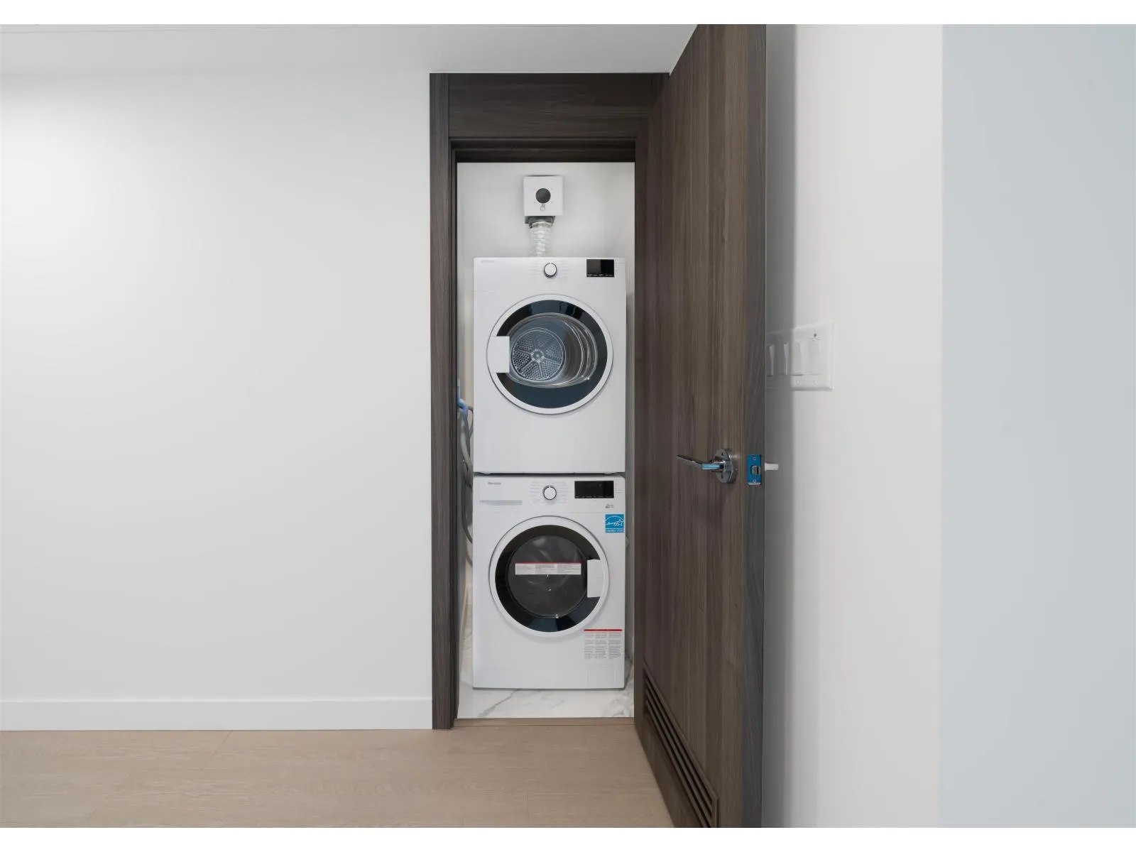 Experience Concord Living at Park George - Move in Ready. Immerse yourself in luxurious 2 bed, 2 bath home with 2 balconies. Perfect combination of modern interior finishes including quartz countertops, Bosch appliances stacked Blomberg washer & dryer. First class amenities such as an indoor pool, hot tub, cinema deck, sauna, steam room, fitness centre, pet spa, spin & yoga studio, sports & game lounge, and entertainment lounge. Innovative technology building features EV parking, smart thermostat and NFC common area access. Walking distance from King George SkyTrain station, Surrey Centre Mall, T&T, Fruiticana, SFU, grocery stores, and many trendy dining options, allowing or a balanced urban lifestyle. Includes 1 parking & 1 storage. (id:27476)