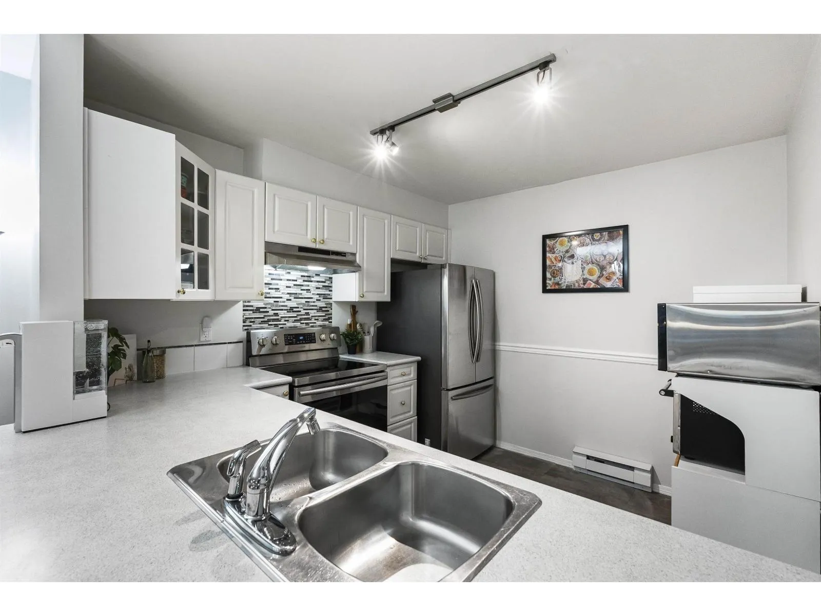 Bright and spacious ground-floor corner condo offering over 1,000 sq. ft. of comfortable living in the heart of Bolivar Heights. This 2-bedroom, 2-bath home features an open-concept layout, updated kitchen with stainless steel appliances, and new flooring in the kitchen and bathrooms. Enjoy your huge private outdoor area, perfect for relaxing or entertaining. Cozy gas fireplace (included in strata fee) plus access to a hot tub, sauna, and fitness room. Steps to Guildford Mall, Recreation Centre, Library, and easy access to Hwy 1. First time homebuyers, this is perfect for you! (id:27476)