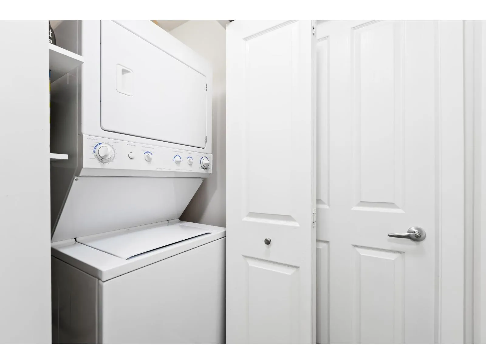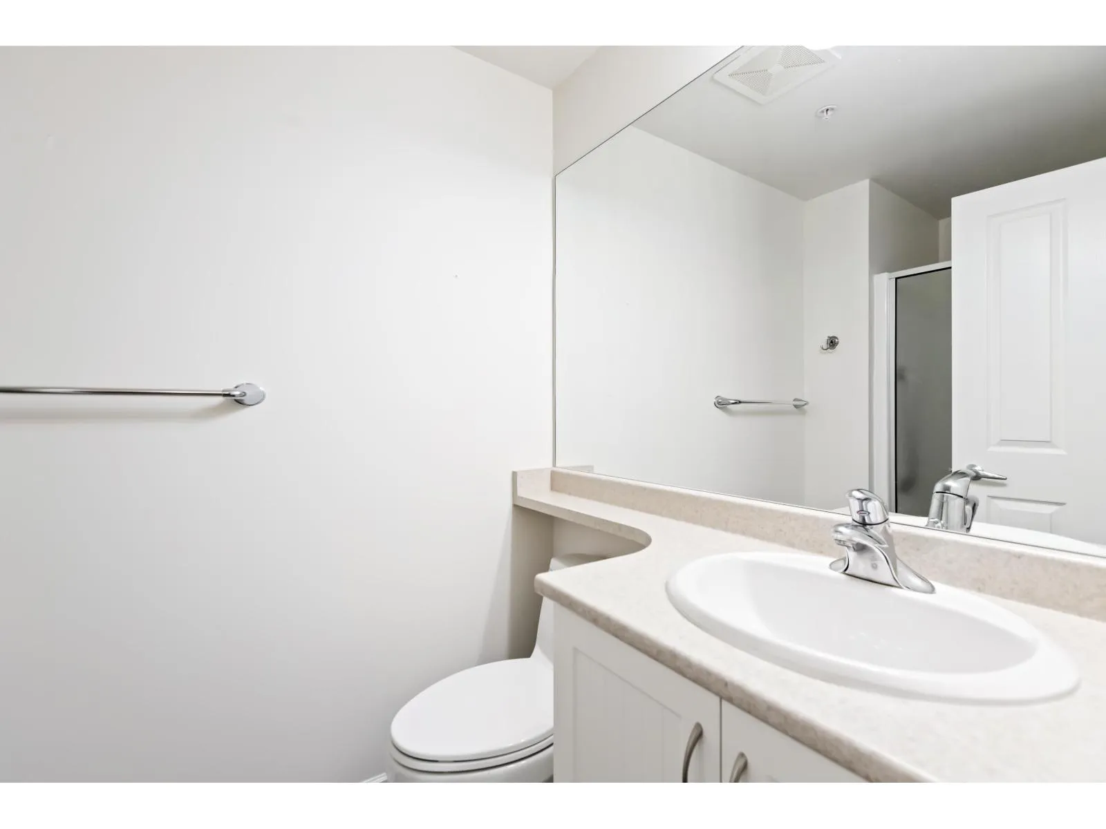 Stunning renovated Top Floor home in Fleetwood Gardens a 55+ centrally located building.2 bedroom + den, with 2 full bathrooms, in-suite laundry, secure parking for 1 vehicle, boasting over 1000 sqft of functional living space. Natural light fills this North facing home with 9 foot ceilings and large windows overlooking trees for a picturesque setting. Home in immaculate condition with recent upgrades including vinyl plank floor, lighting, kitchen/bathroom cupboards, quartz counter tops, newer appliances including induction stove! Large primary bedroom with his & hers closet and ensuite with tub. Relax & enjoy mountain views from your large covered patio. Just minutes walk from Fleetwood Community Centre, parks, grocery stores, restaurants, and transit. Quick Possession possible! (id:27476)