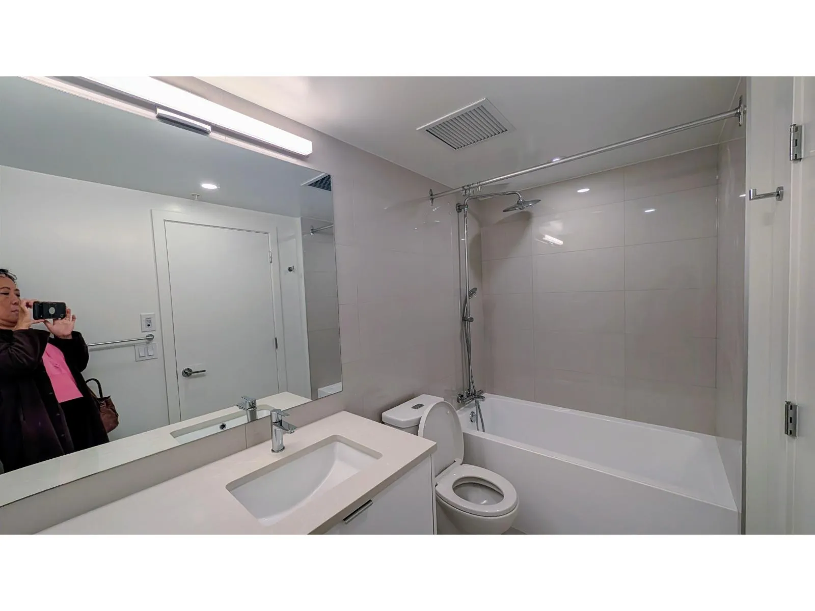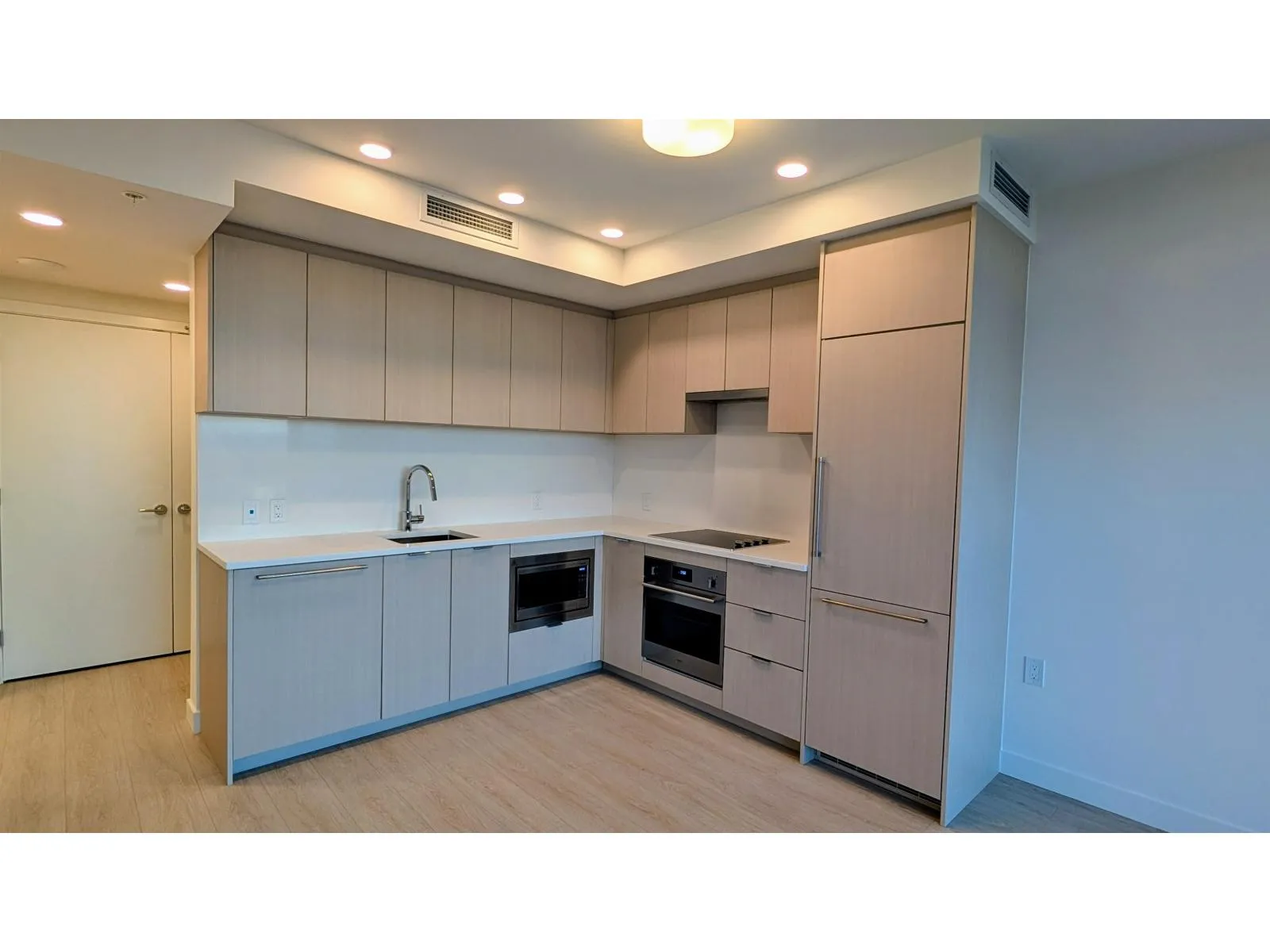 Brand new 1 Bed in Flamingo One, located on the quiet side of the tower in vibrant Surrey City Centre. This spacious layout offers large windows, and a private balcony with stunning mountain and city views. The sleek kitchen features integrated appliances, stone counters, and flat-panel cabinetry-perfect for everyday living or entertaining. Enjoy air conditioning, wide plank floors, and generous storage. Steps from Gateway SkyTrain, T&T Supermarket, and minutes to SFU, KPU, and future UBC Surrey Campus. Includes 1 EV-ready parking stall, 1 storage locker, plus access to a fireside lounge, BBQ courtyard, and more. (id:27476)