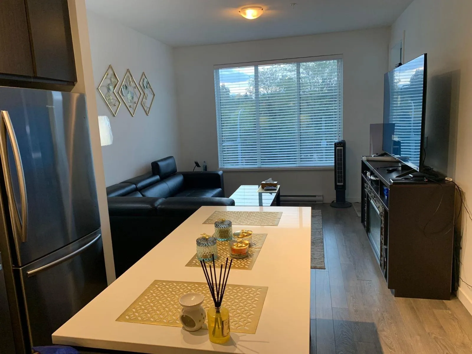 Welcome to Kings Landing II by one of the most reputable Dawson + Sawyer. 1 Bed + DEN unit in the Bear Creek Area, close to shopping, transit & other amenities. Open Kitchen with full size STAINLESS STEEL appliances. Spacious bedroom with a walk-through closet that leads you to FULL BATHROOM and a flex room which is great for home office. IN-SUITE LAUNDRY and linen space right off of the entry. Den is good size can be used like room & double size bed can fit in it. Building amenities include: Bike room, Gym, Study room, Lounge, Social space with full Kitchen, Play area for kids. Transit is at your doorstep, nearby Bear Creek Park, shopping area and restaurants 10-12 minutes drive to Central city Mall and Skytrain. Great opportunity for investors or 1st time home buyer to secure this unit. (id:27476)