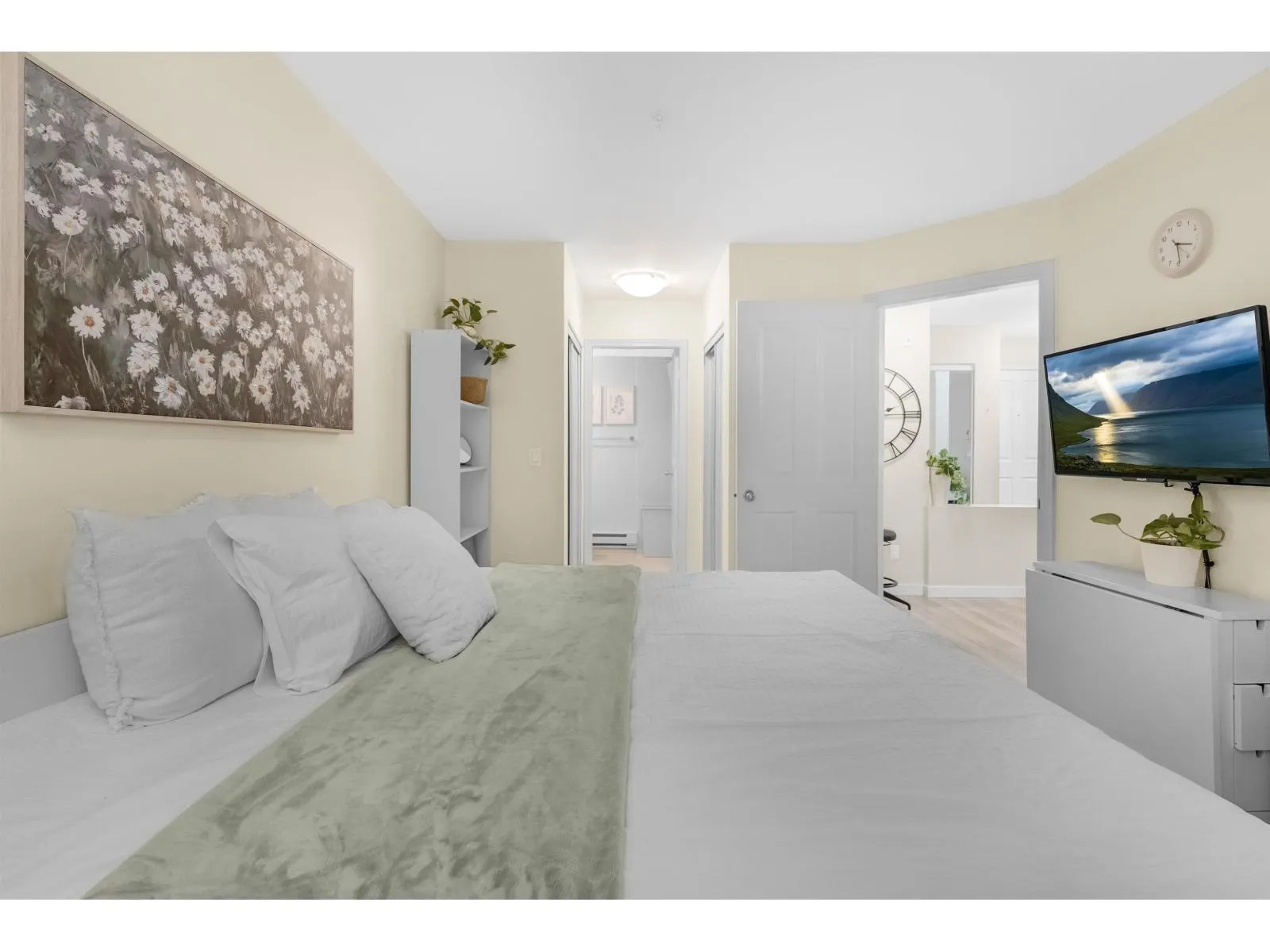 Welcome back to The Sommerset in Guildford - a beautifully maintained community perfectly located near everything you need. This move-in ready 2-bedroom home features stylish vinyl flooring, a high-end quartz countertop, a sleek undermount sink, a new dishwasher, fridge and stove. The spacious primary bedroom with ensuite is thoughtfully separated from the second bedroom for privacy. Enjoy peaceful views of trees from your covered balcony on the quiet side of the building. Low strata fees include gas, hot water, and clubhouse access. Comes with 2 parking stalls and a storage locker. Steps to Guildford Town Centre, supermarkets, parks, schools, and medical facilities. OPEN HOUSE - Sun 2-4pm (id:27476)