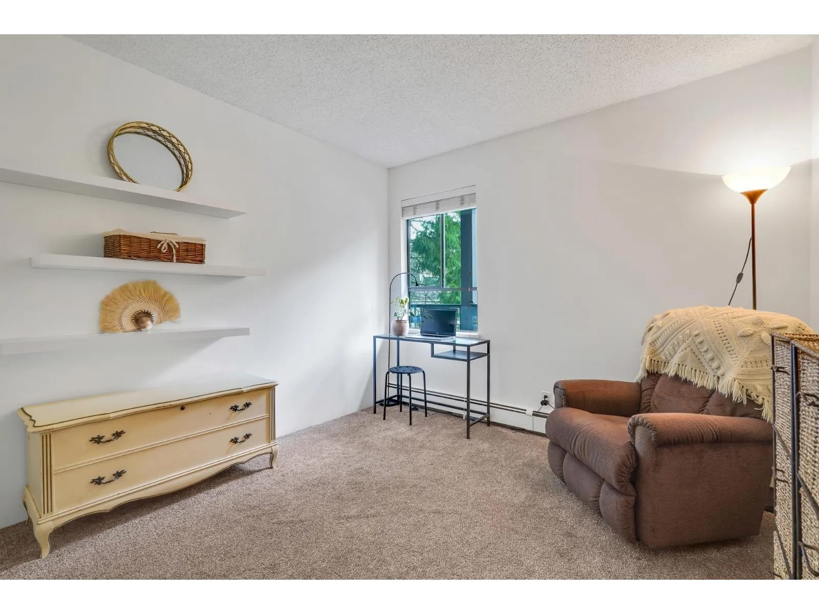 Welcome to a bright, spacious 2-bed, 1-bath condo in the heart of South Surrey. This northwest-facing unit offers a thoughtful layout situated in a well-maintained building with numerous recent upgrades, including an elevator (2015), roof (2019), hallway paint and carpet (2020), and a new boiler (2023), ensuring long-term peace of mind. Located in a prime park-like location, you're just steps from Semiahmoo Shopping Centre, grocery, transit, parks, with easy access to elementary & secondary schools, White Rock Community Centre, and South Surrey recreation and community centre (includes seniors programs, fitness, arts and crafts), indoor pool & ice arena. The building offers shared laundry and is rental-friendly. One occupant must be 55+. Excellent option for both homeowners & investors! (id:27476)