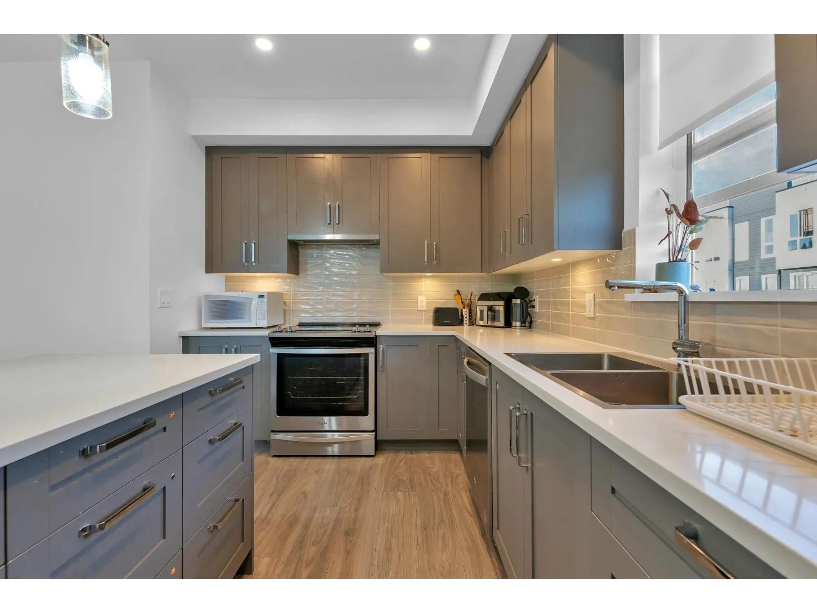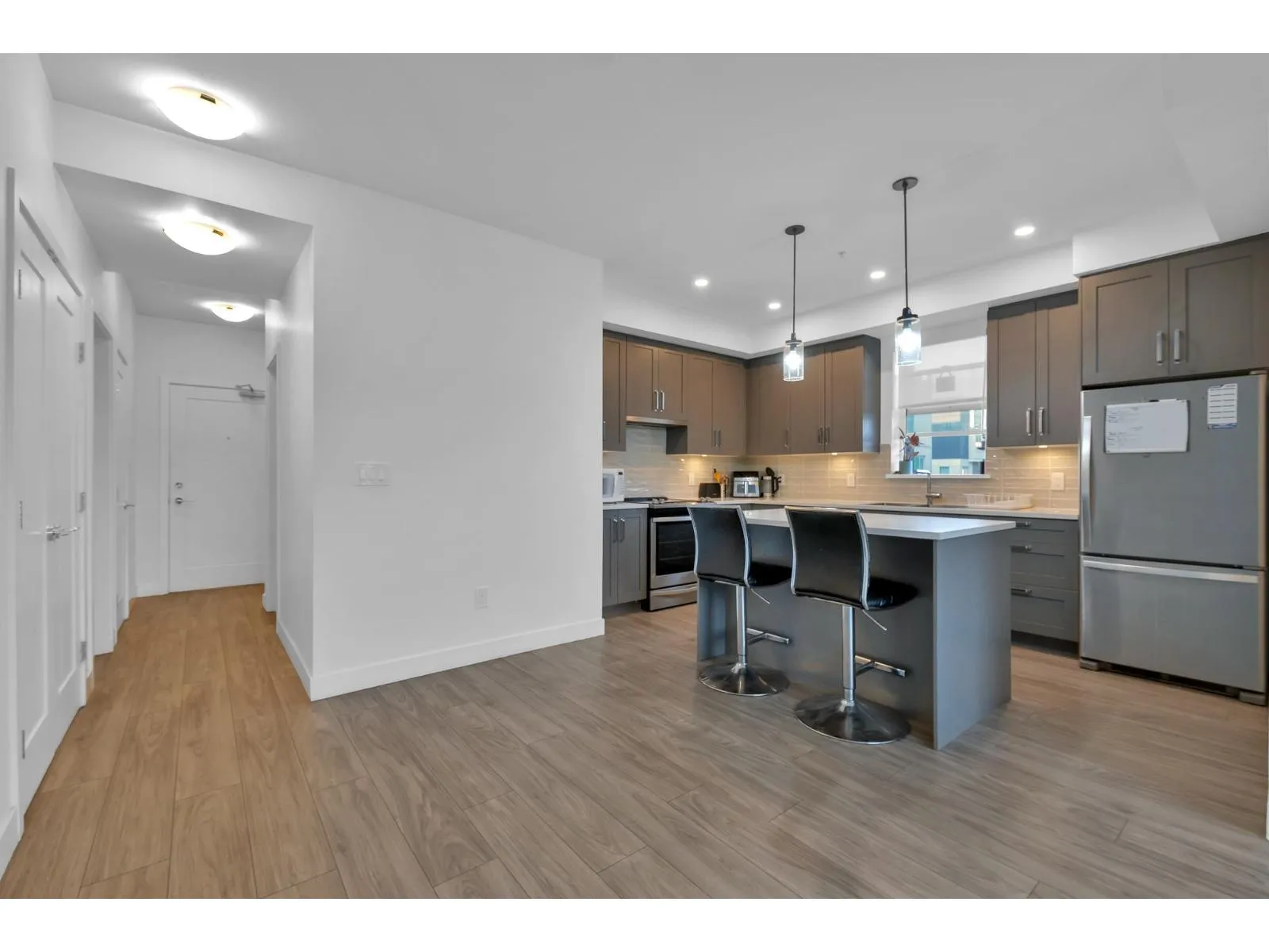Spacious 3 bed, 2 bath with 2 parking! Stylish open kitchen with island, Whirlpool appliances, 9' ceilings & quiet courtyard-facing balcony. Top-notch amenities: Social Club, Guest Suite, Fitness Lounge, Billiards + 12,000 SF of indoor/outdoor space & 8,000 SF of shops/services at your doorstep. Close to future SkyTrain, schools, parks & new community center. The perfect mix of style, comfort & convenience! (id:27476)