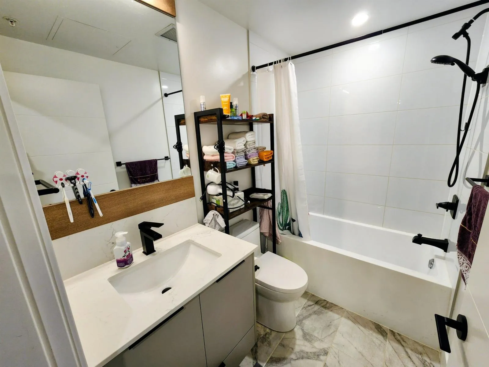Welcome to your chic 1-bed haven in Surrey's Gateway pulse! This 2-year-young Hendrix gem glows with 9-ft ceilings, huge windows + roller shades, and sunshine all day. Dream kitchen: glossy quartz, porcelain backsplash, soft-close cabinets, full stainless suite. Step onto your covered balcony for sunrise coffee or sunset chats. Stay fit in the cozy gym, flow in the yoga studio, host in the fireside lounge or courtyard party room with full kitchen + BBQ. Pet-friendly, parking + locker included. 8-min walk to Gateway SkyTrain, 15-min to SFU, seconds to malls, parks, eateries, hospital. First-timers & investors: this is IT. Book your private tour now! (id:27476)